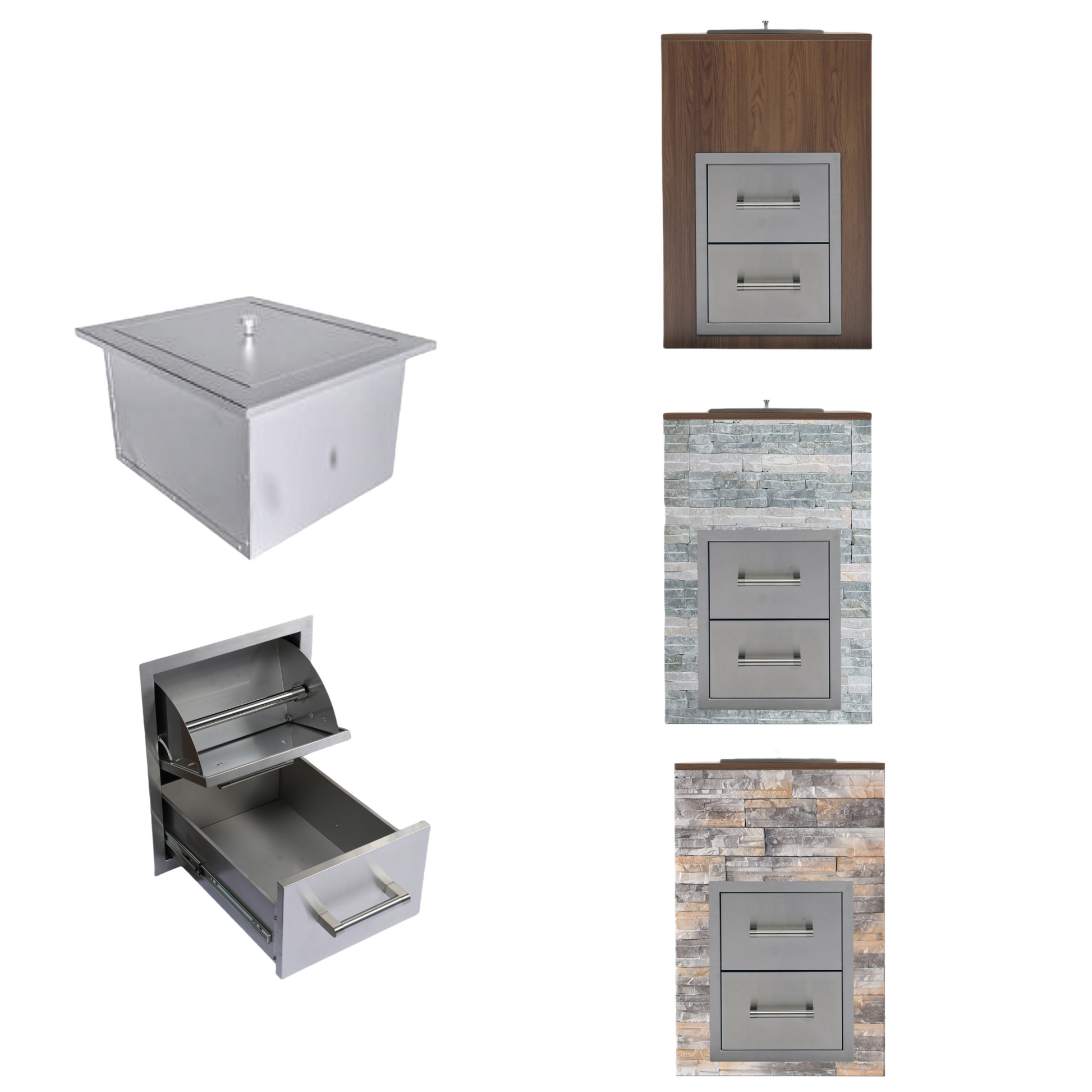 - Double Drawer with door -30 inch ; Triple Access Drawer 16 inch,16'' Paper Towel Holder Drawer Combo