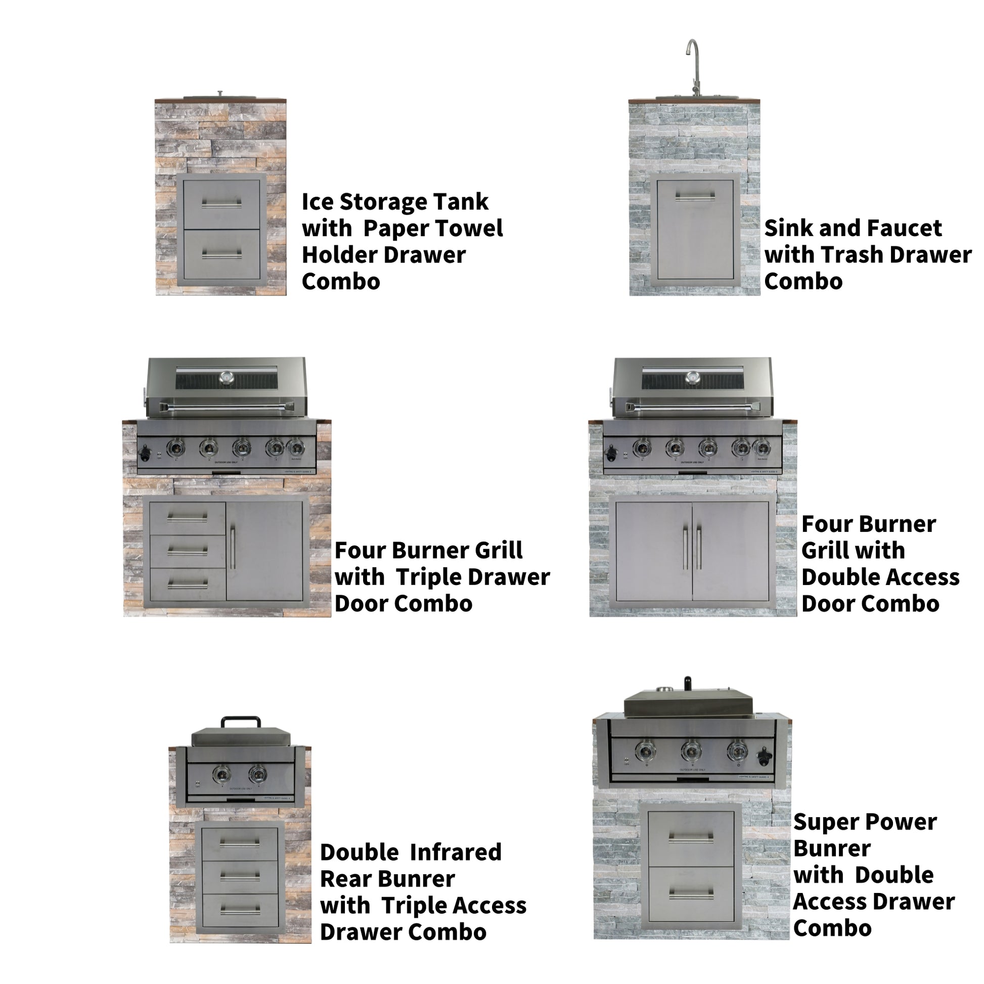 Built-in Outdoor Kitchen 32 inch LPG Gas Grill 60000 BTU Stainless Steel Four burners Grill with Infrared Rear Bunrer and Door and Drawer Combo and Drop in Stainless Steel ICE BOX with BBQ Tool Set