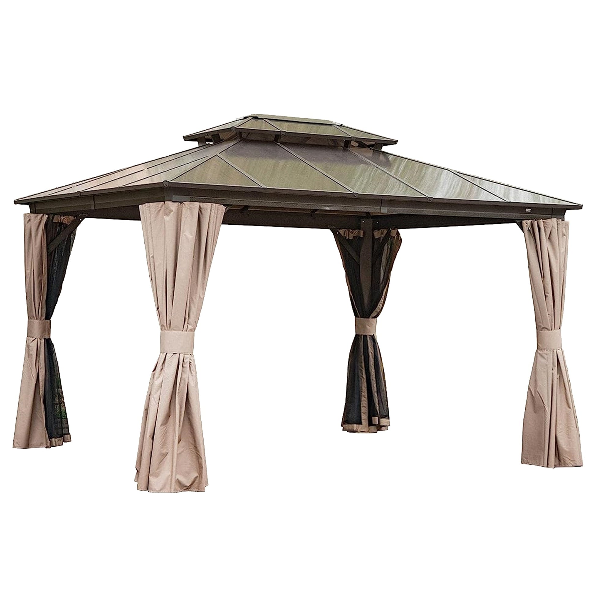 Clihome 11.9-ft x 9.77-ft Hardtop Gazebo Brown with Hardtop Roof