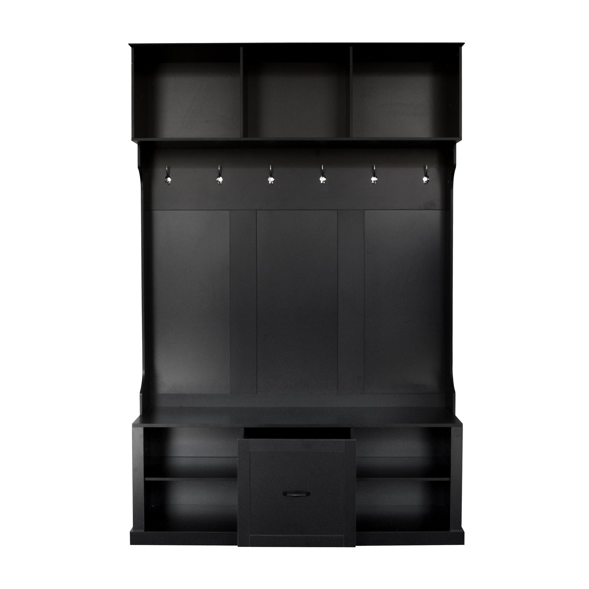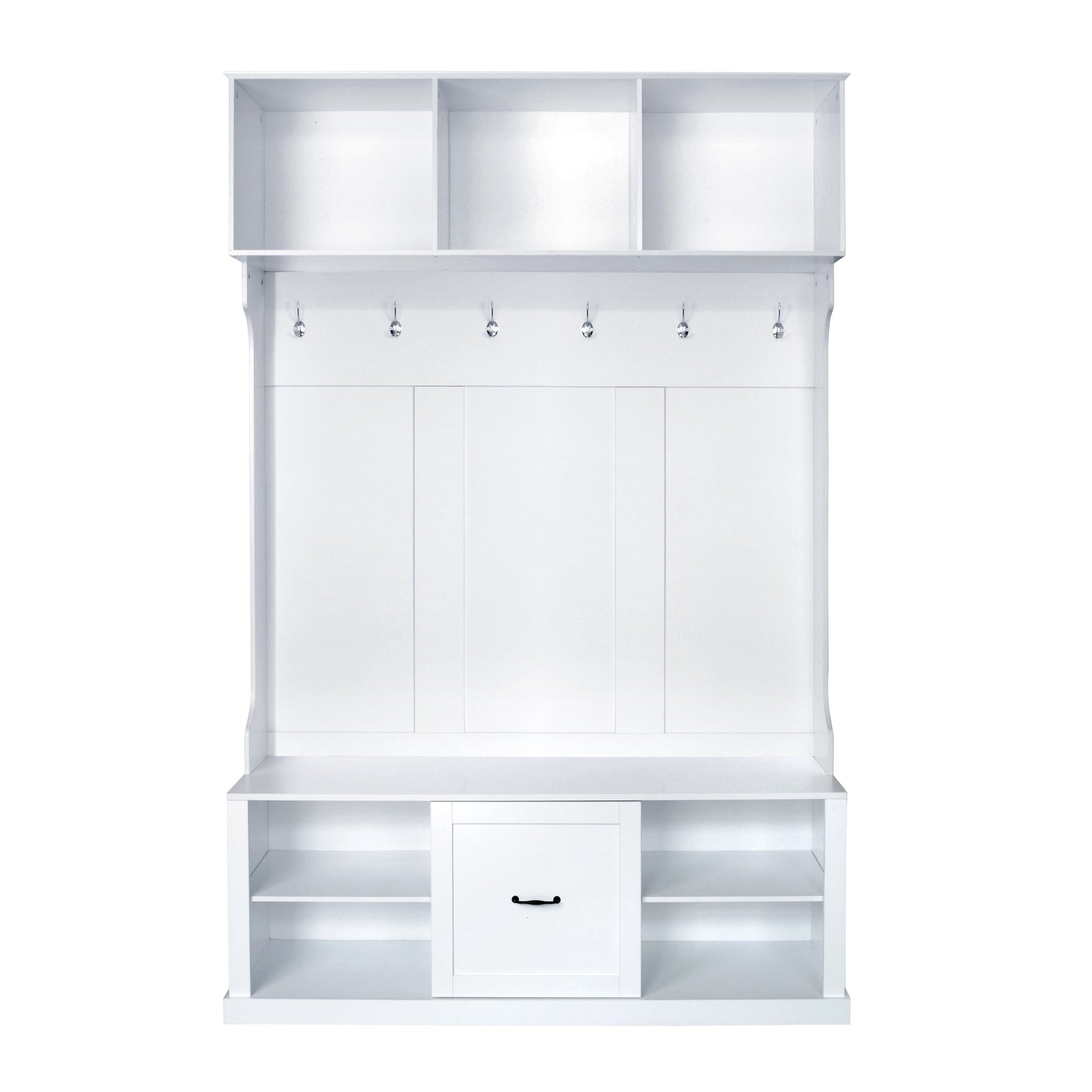 Clihome-57¡±-Hall-Tree-with-6-Hooks,-Coat-Hanger,-Entryway-Bench,-3-in-1-Design,-A-Spacious-Drawer-for-Entrance,Living-Room