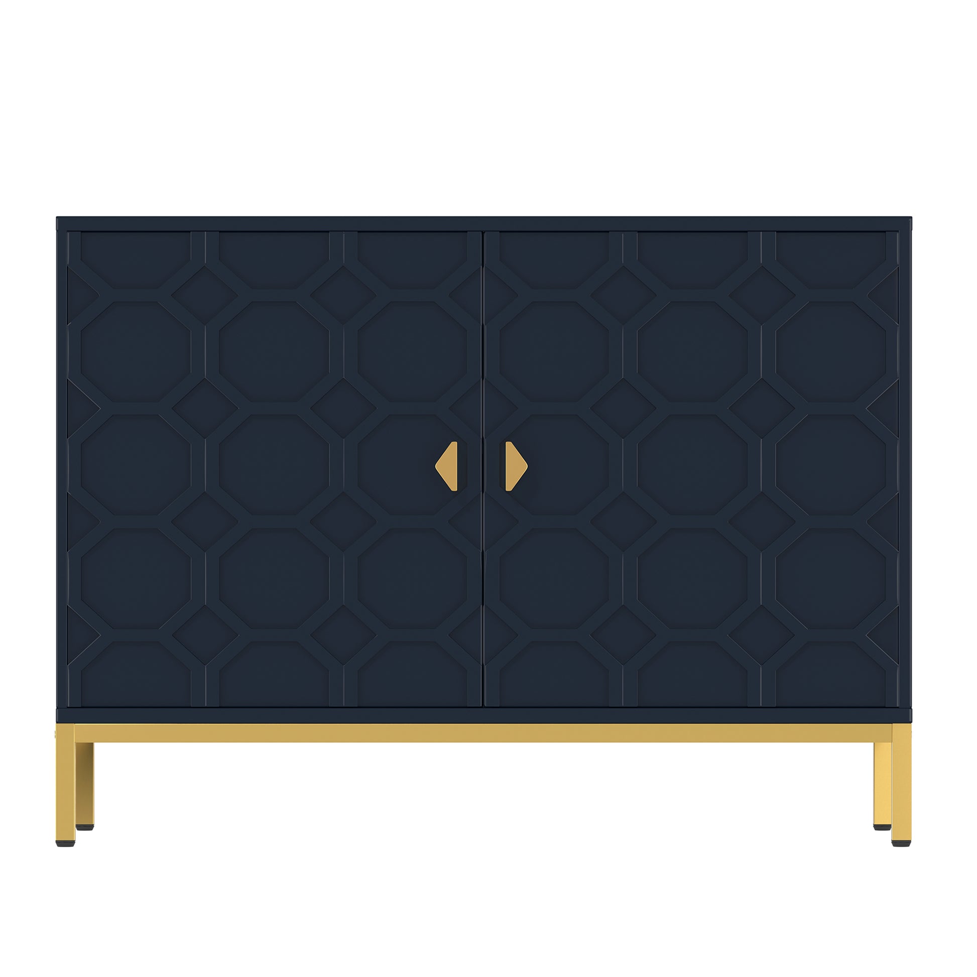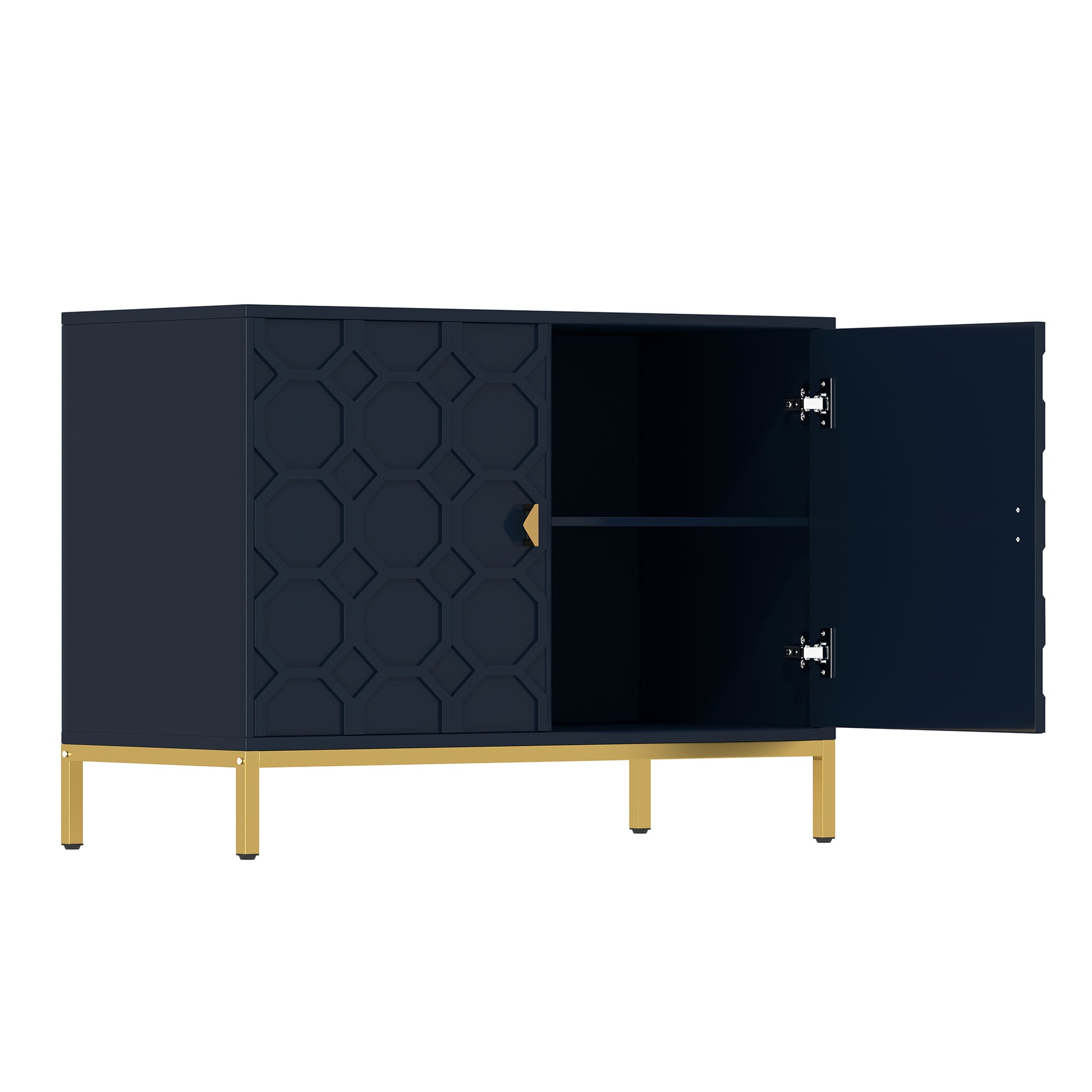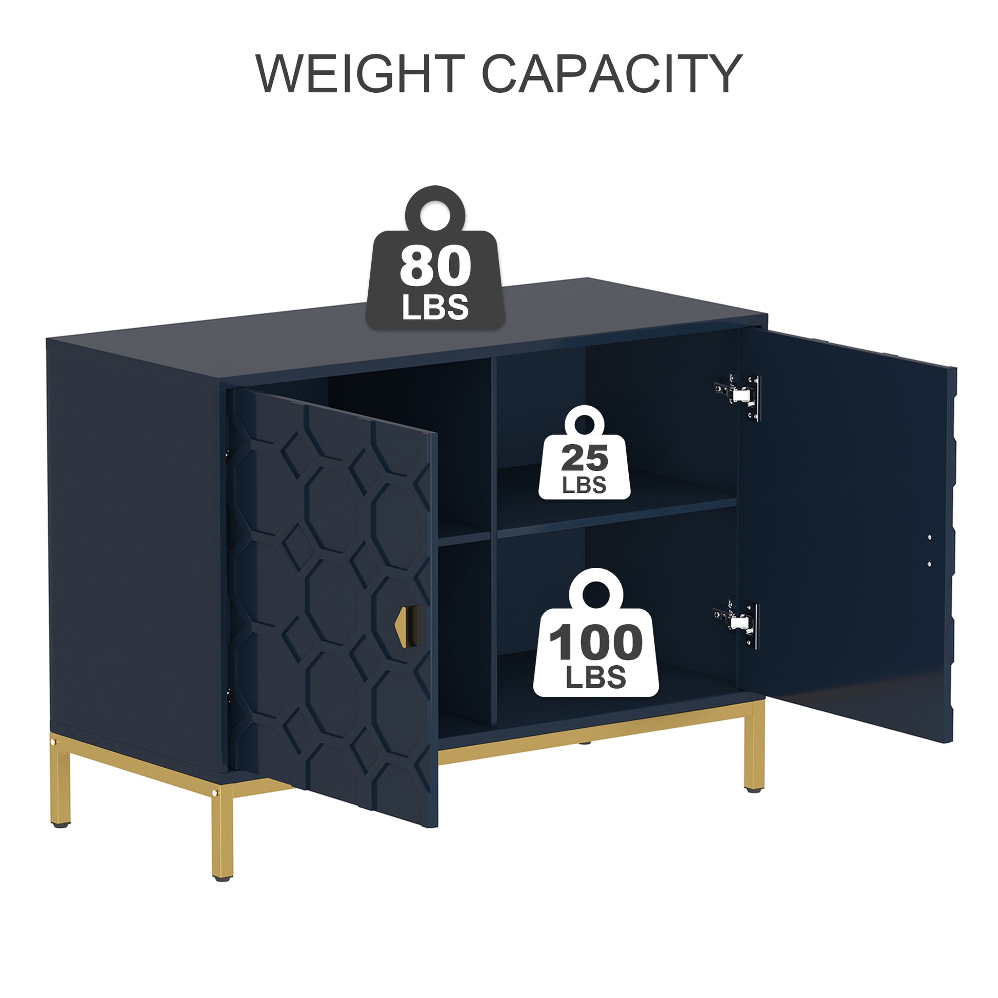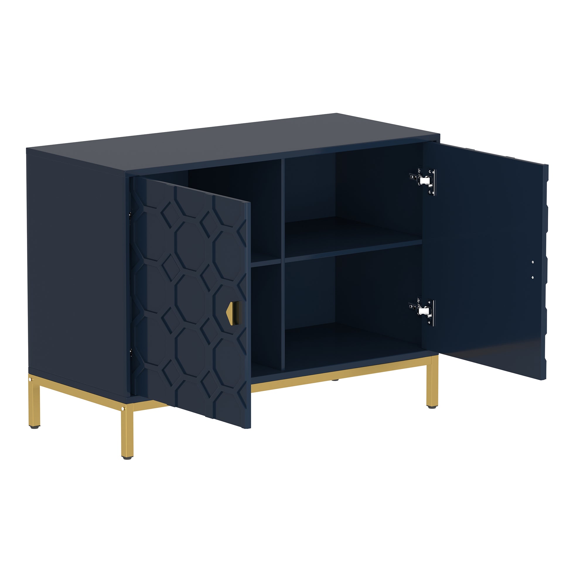 Drawer face plate adopt concave and convex craft, Blue + unique woodcut honeycomb finish adds a retro glamour to your living room or entertainment space, combines modern simplicity and retro style, sideboard buffet cabinet suits all spaces, and maximizes the beauty of the space. -