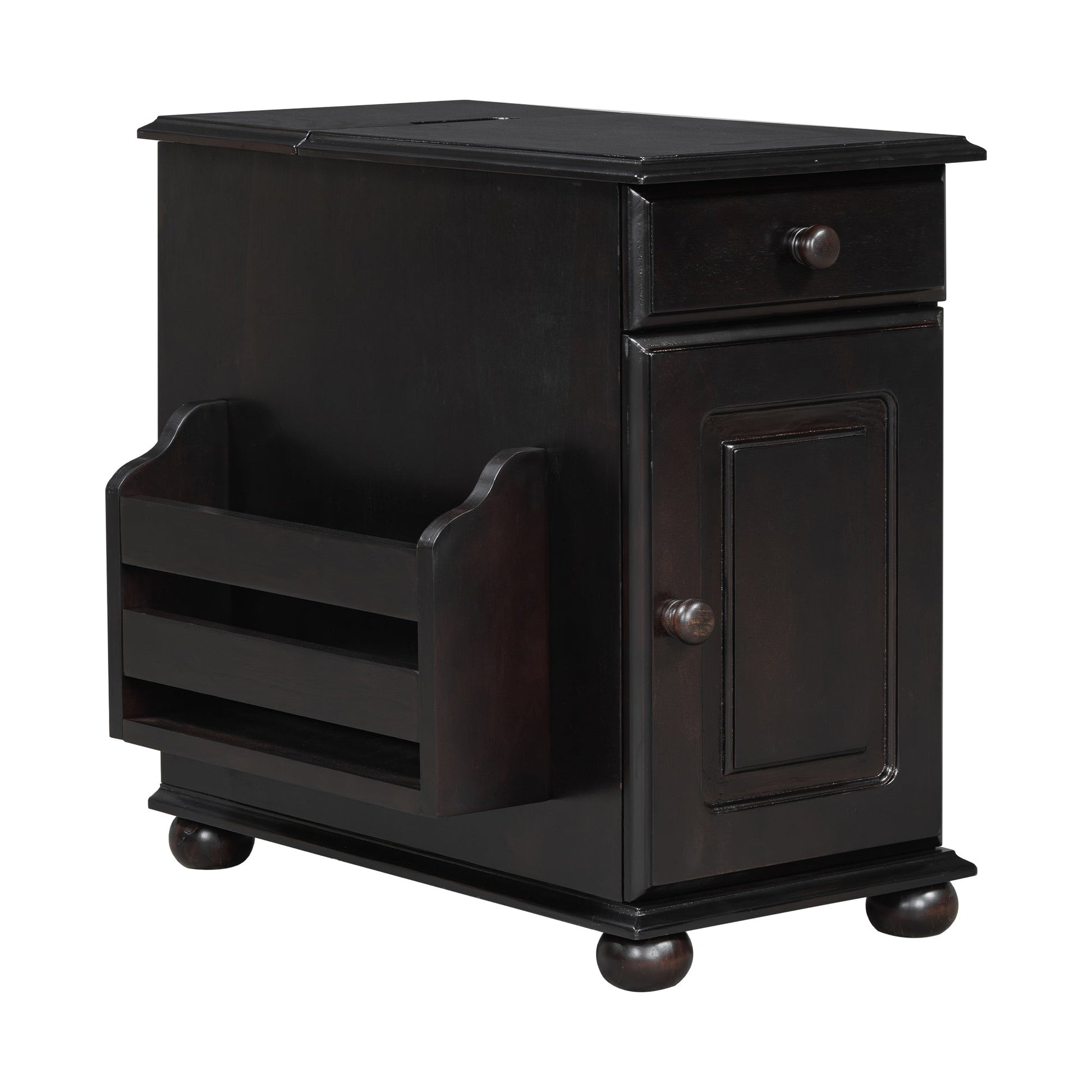 Clihome-Vintage-End-Table-Flip-Top-Side-Table-with-USB-Ports,-One-Multifunctional-Drawer-with-cup-holders,-Sofa-Couch-Table-with-Bookshelf-for-Living-room-and-Small-Space