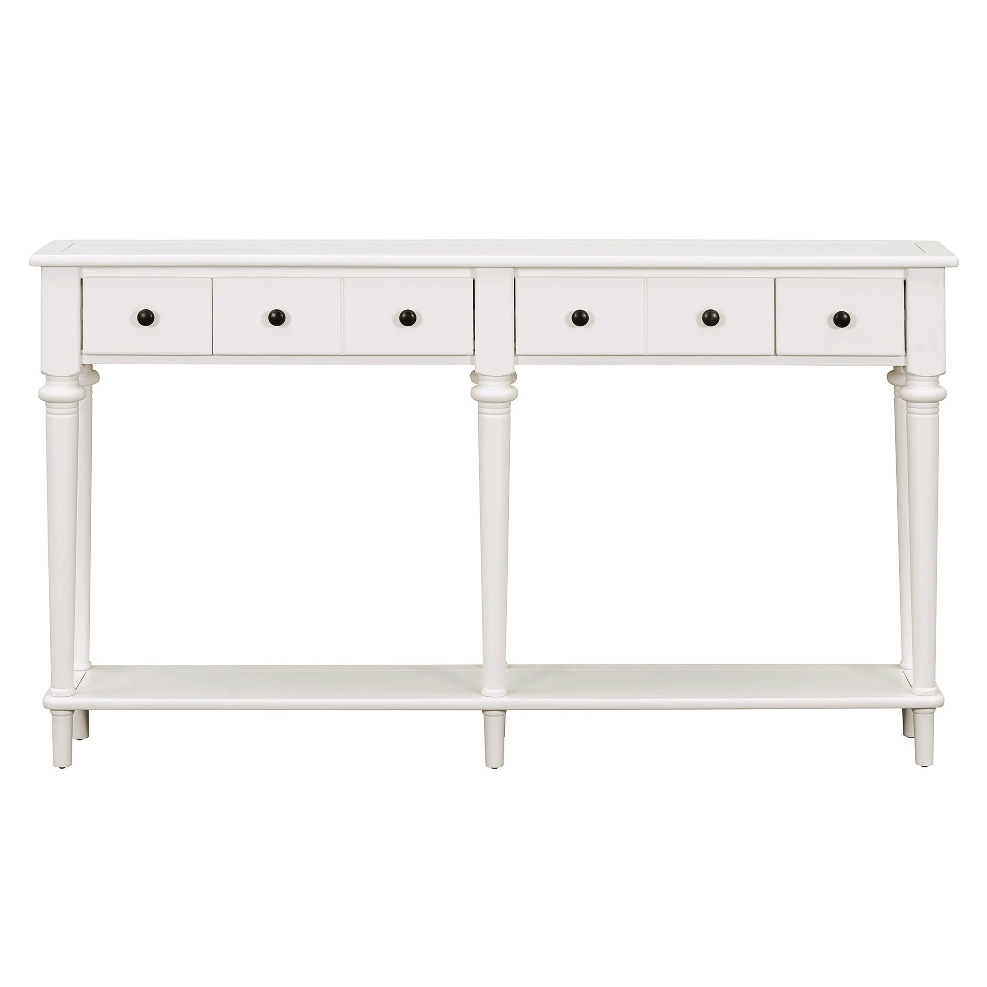 Clihome Entryway Table with 4 Drawers, Retro Console Table with Open Shelf for Entryways, Living Rooms, and Hallways (White)