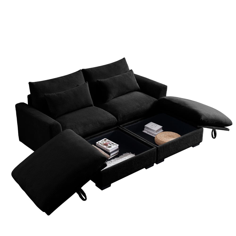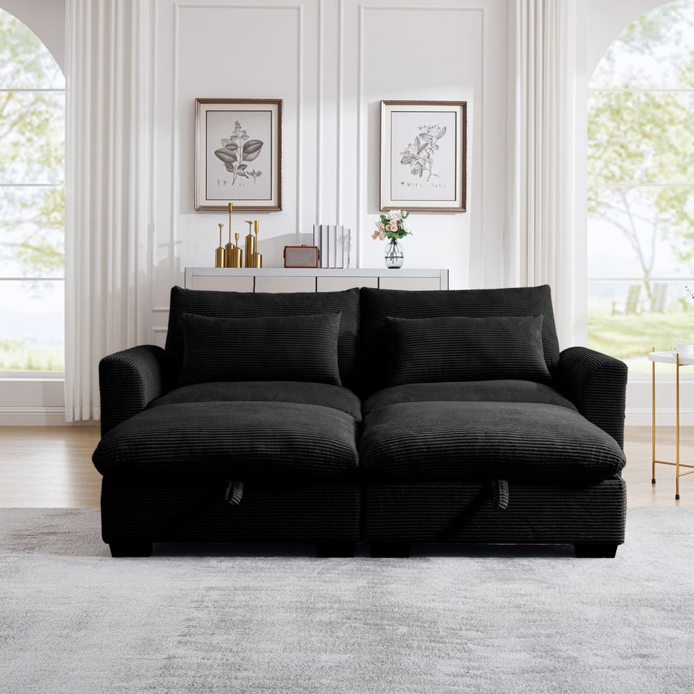 Corduroy Two-Seater Sofa with 2 Storage Footrest,2 Seater Sectional deep seat sofa,Comfy Couches for Living Room