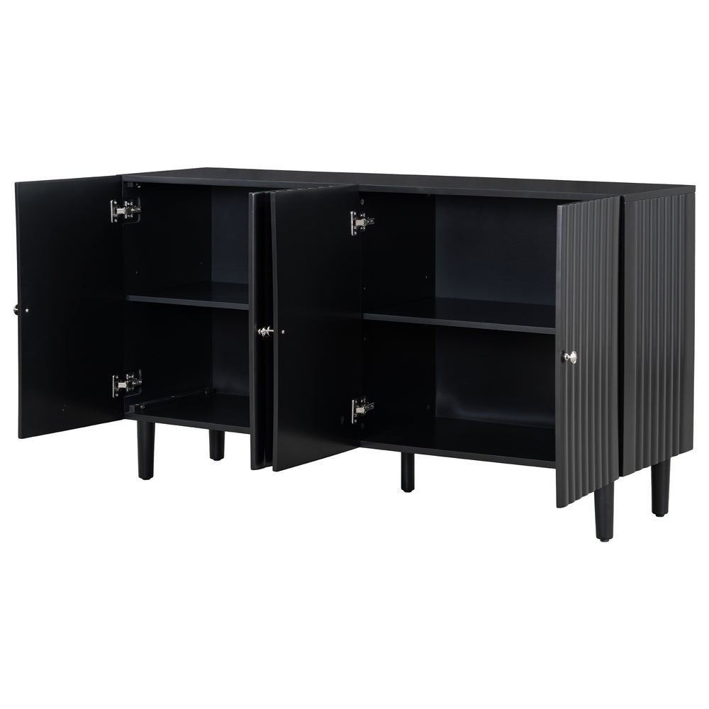 - [Sophisticated Wavy Pattern Doors]:The four doors of this sideboard feature a beautifully crafted wavy design that adds movement and texture to the piece. The flowing lines bring a sense of elegance, making it a striking focal point in any room.