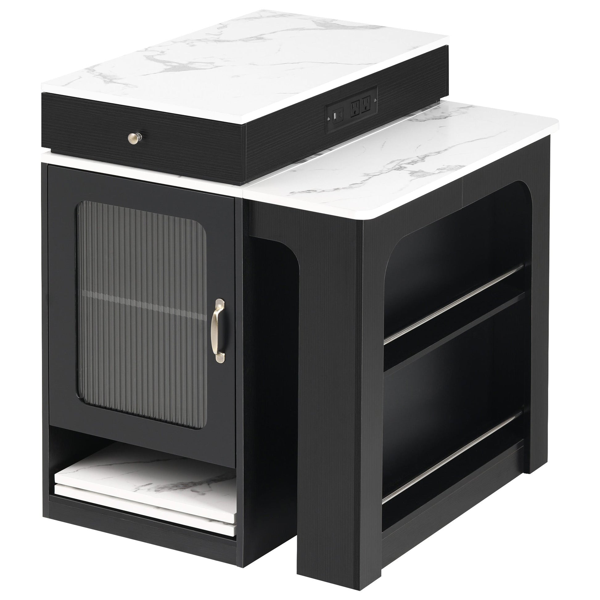 K&K 59.5" Kitchen Island with Extendable Dining Table, Kitchen Storage Table with Double-sided Storage, Kitchen Island with 2 Drawers, Power Outlet, Side Open Shelves, for Kitchen, Dining Room, Black