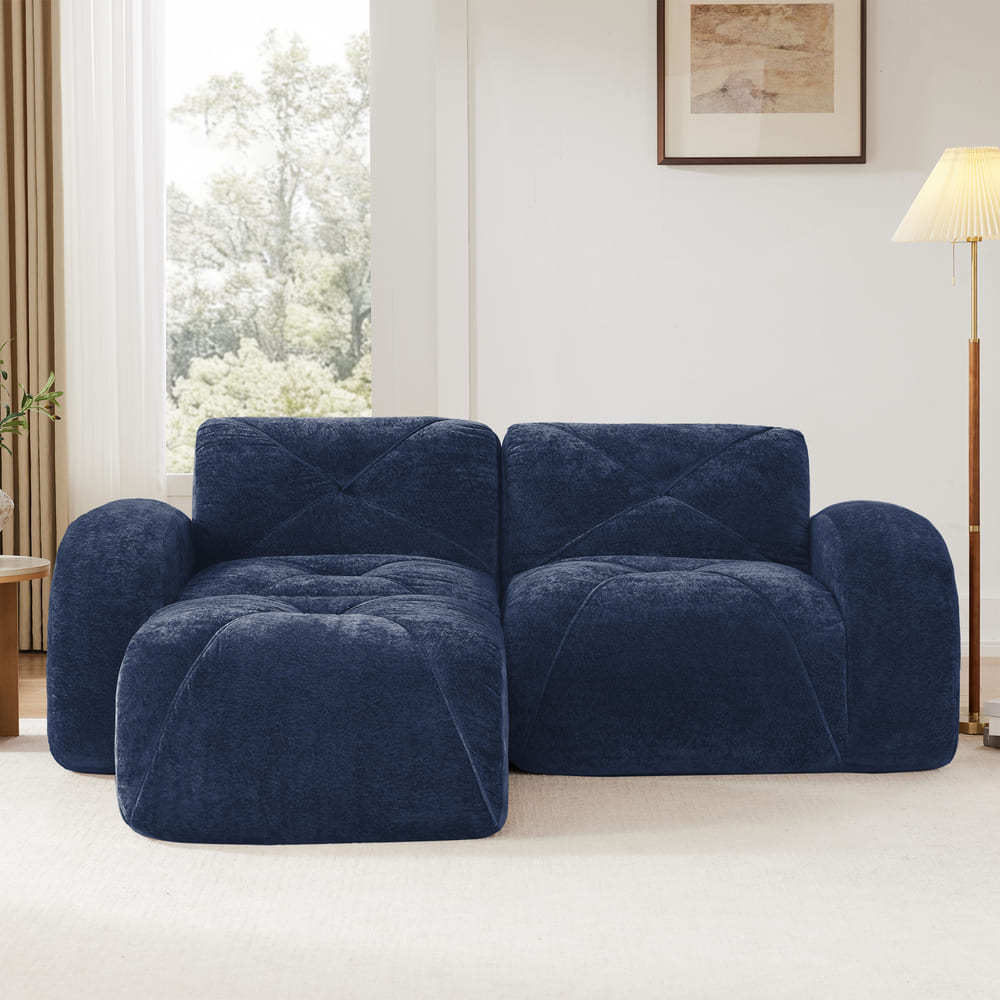 L-Shaped Boneless Sofa,Soft Velvet Fabric,Tufted Design,32D High Density Sponge,Ergonomic Design Bottom, Anti-Slip Design