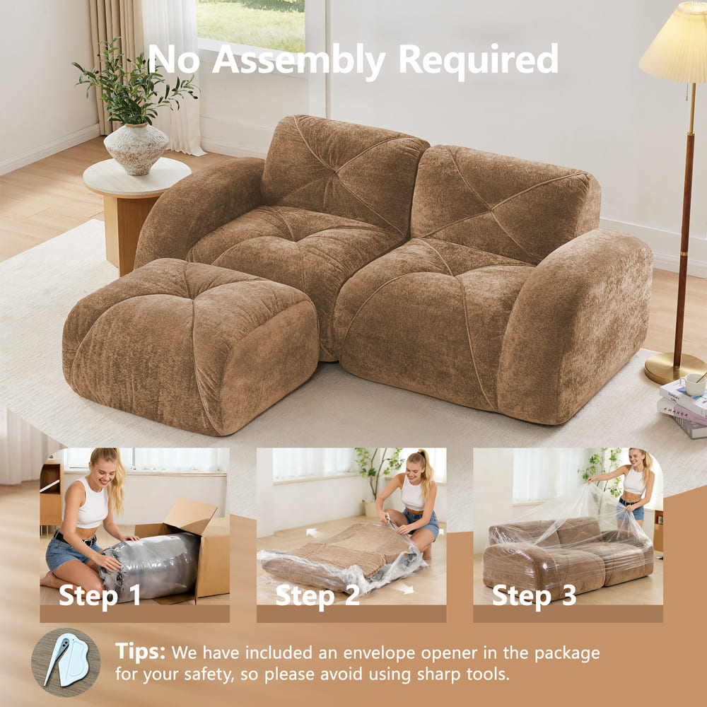 - No Assembly Required:Say goodbye to furniture assembly nightmares with our modular cloud couch! Simply unpack,lightly pat the sponge,and allow the couch to regain its full shape within 72 hours.Enjoy a hassle-free setup and the immediate comfort of your new sofa!