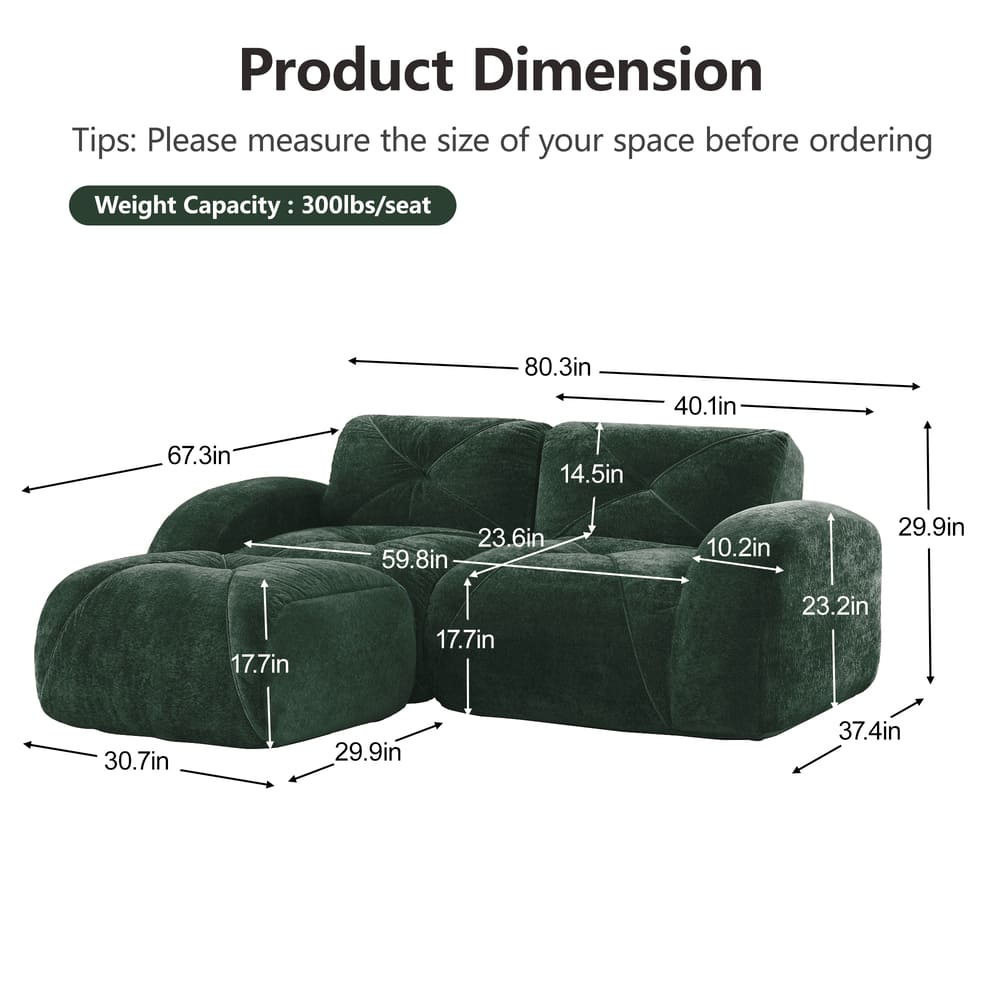- Multi-Functional Ottoman:The included ottoman offers endless versatility—use it as a footrest,extra seat,or chaise setup.Easily move and combine it with the main sofa to create an L-shaped lounge,sofa bed and sectional sofas.Customize your space however you like.