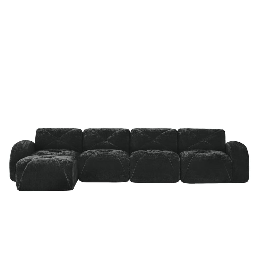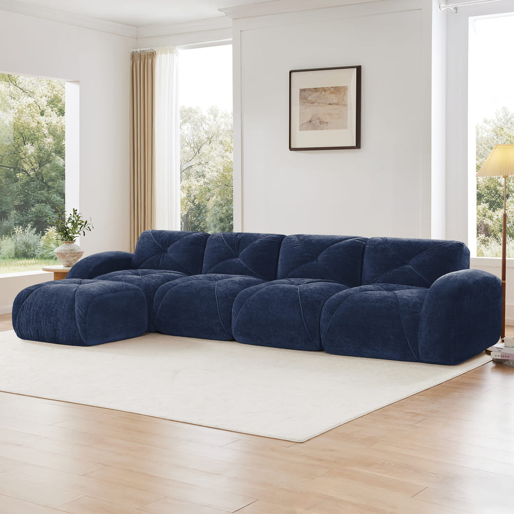 L-shaped Soft Velvet Fabric,Tufted Design,32D High Density Sponge Bottom,Ergonomic Design Bottom