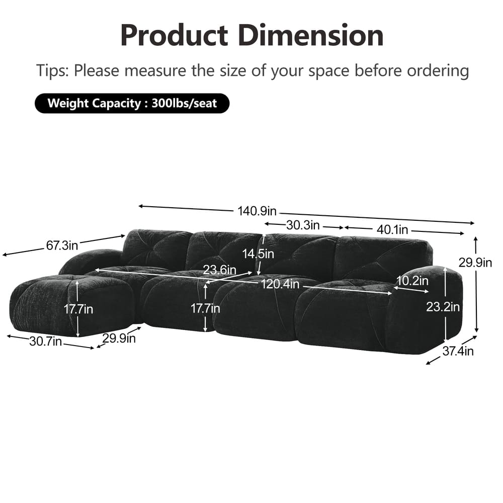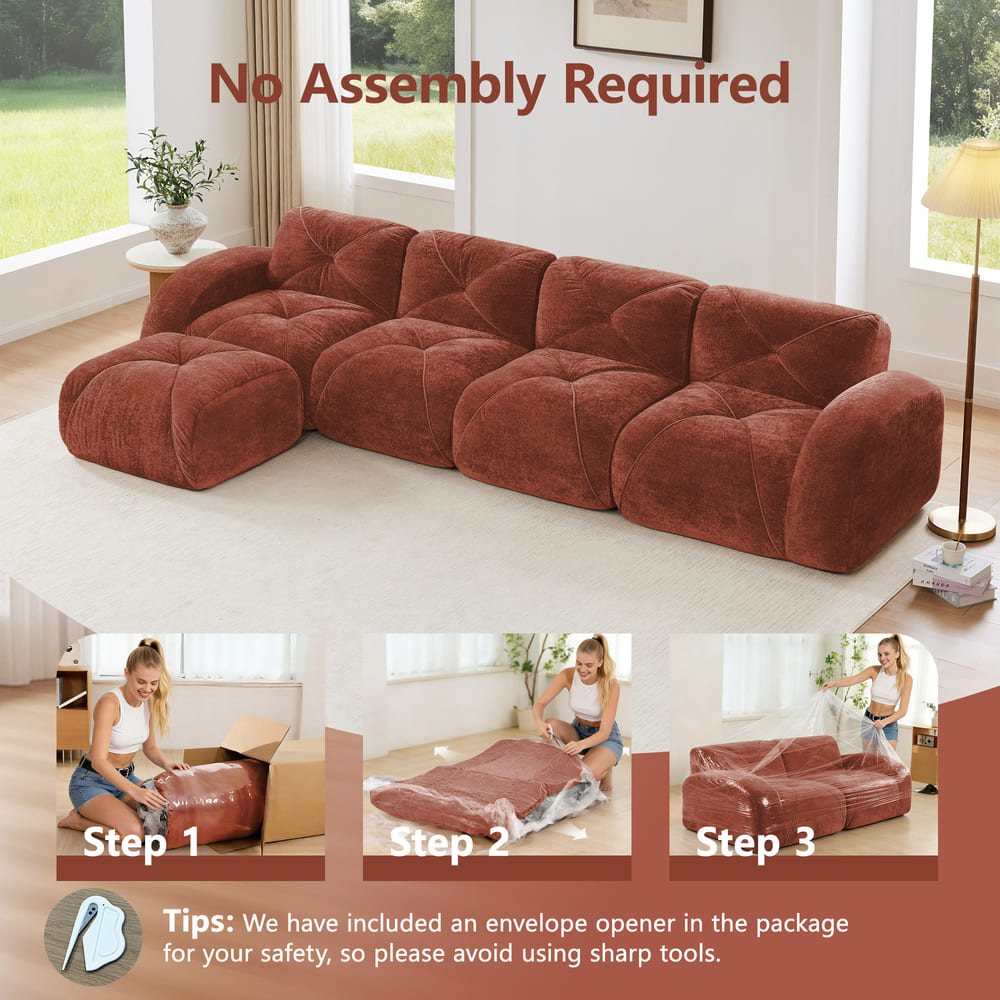 - No Assembly Required:Say goodbye to furniture assembly nightmares with our modular cloud couch! Simply unpack,lightly pat the sponge,and allow the couch to regain its full shape within 72 hours.Enjoy a hassle-free setup and the immediate comfort of your new sofa!