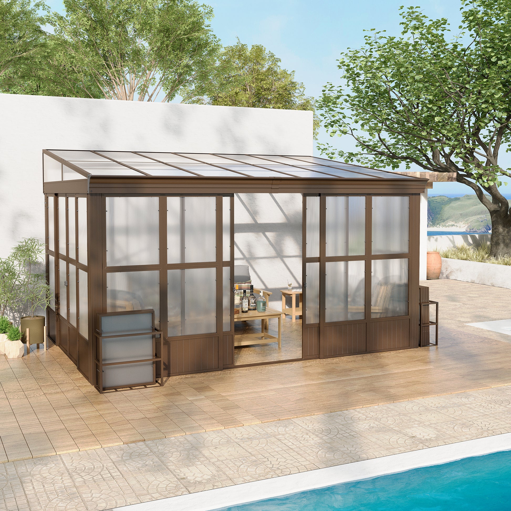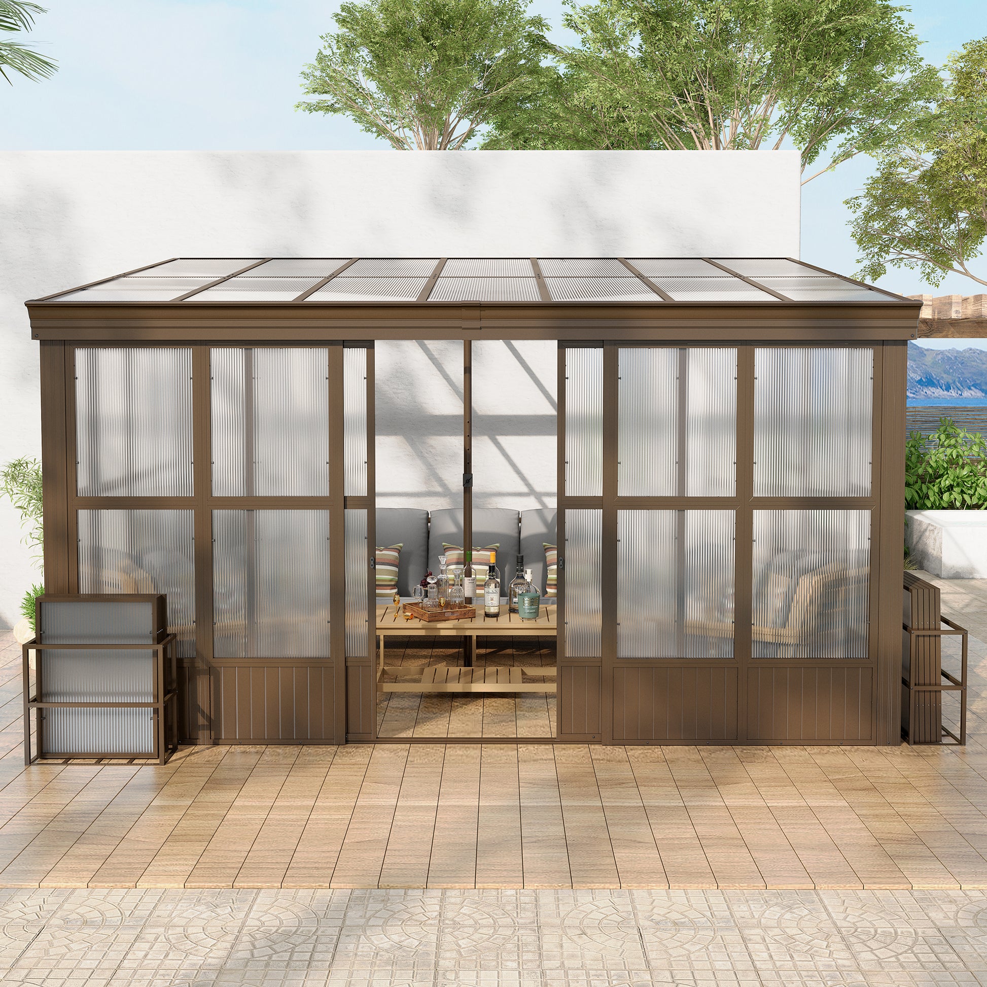 - 🚪🏡Convenient Sliding Door- Equipped with double sliding doors at the front and side, providing better convenient access and allowing for seamless integration between indoor and outdoor spaces. Moreover, the side door allows to install it on either the left or right side, suiting your preferences and space requirements.