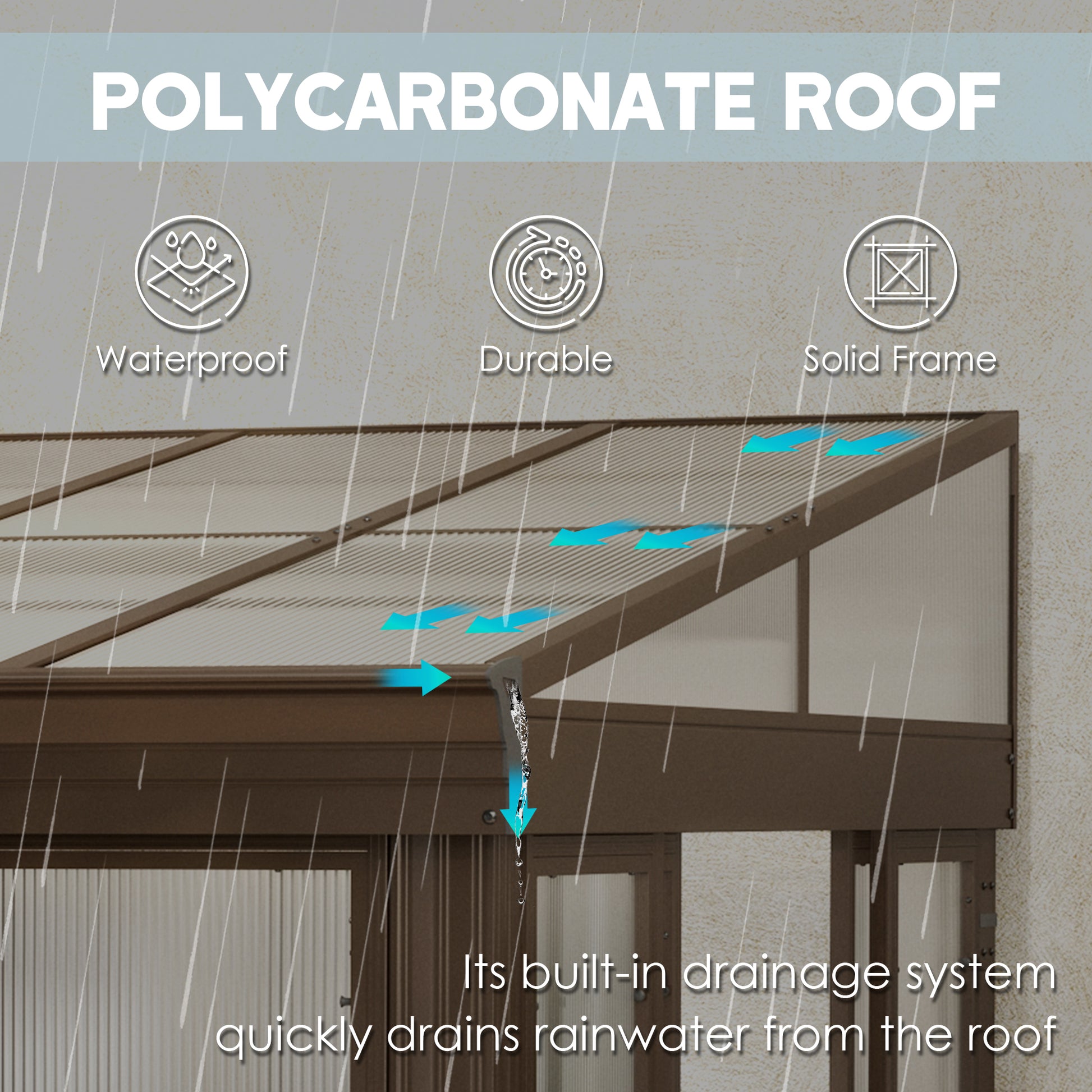 - 🌧️🏡Sloping Drainage System- against wall sunroom gazebo incorporates a thoughtful sloping drainage system, allows rainwater and snow to flow out fast into the gutters, prevent rainwater and snow from massing. To further safeguard your roof and maintain its longevity, regular snow clearing is recommended.