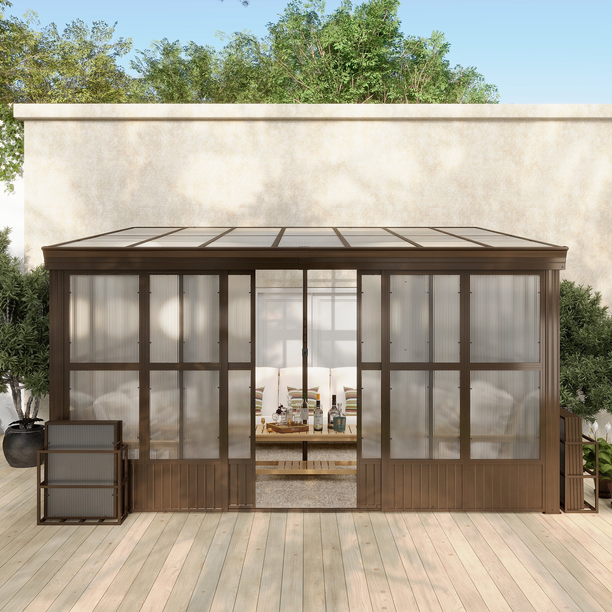 - 🚪🏡Convenient Sliding Door- Equipped with double sliding doors at the front and side, providing better convenient access and allowing for seamless integration between indoor and outdoor spaces. Moreover, the side door allows to install it on either the left or right side, suiting your preferences and space requirements.