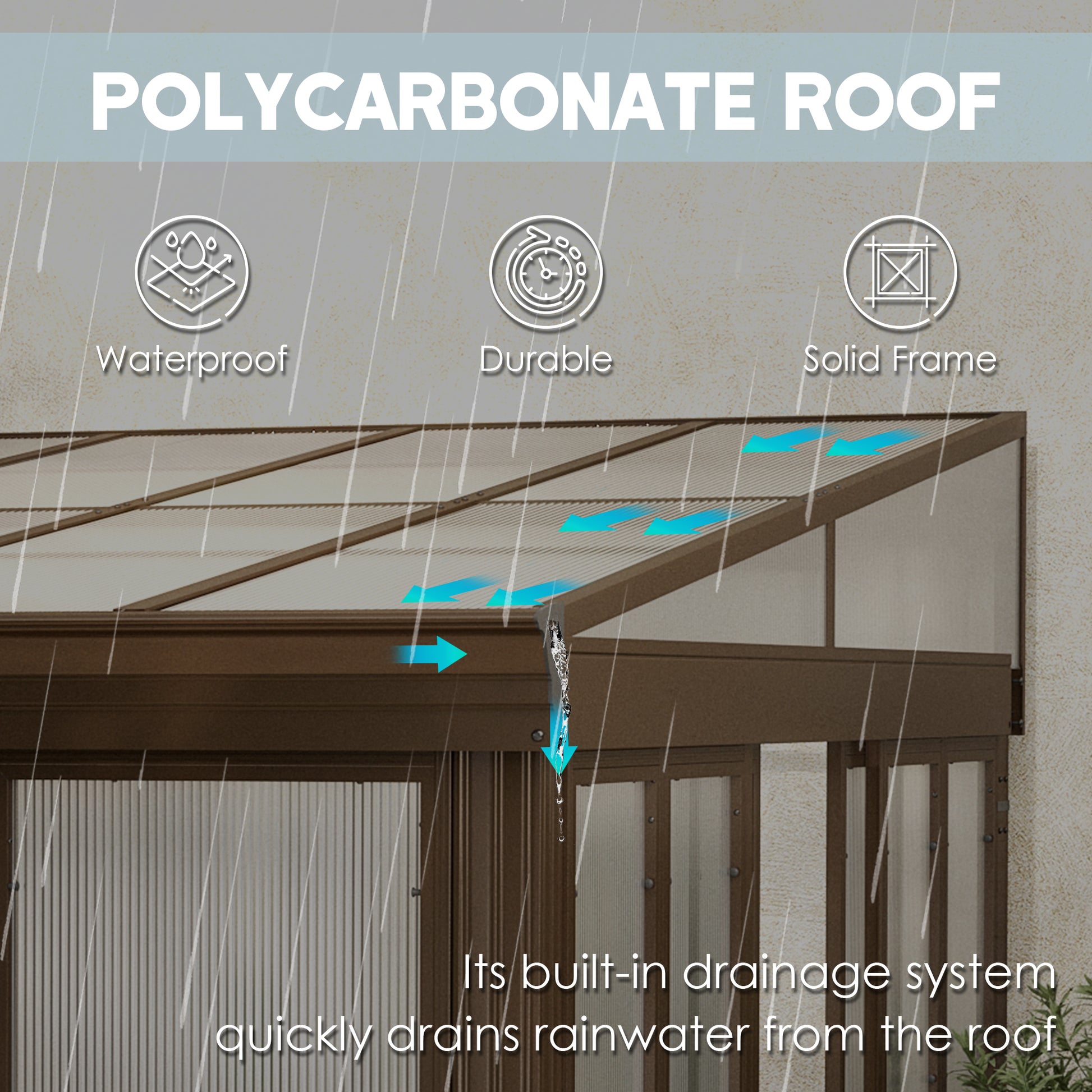 - 🌧️🏡Sloping Drainage System- against wall sunroom gazebo incorporates a thoughtful sloping drainage system, allows rainwater and snow to flow out fast into the gutters, prevent rainwater and snow from massing. To further safeguard your roof and maintain its longevity, regular snow clearing is recommended.