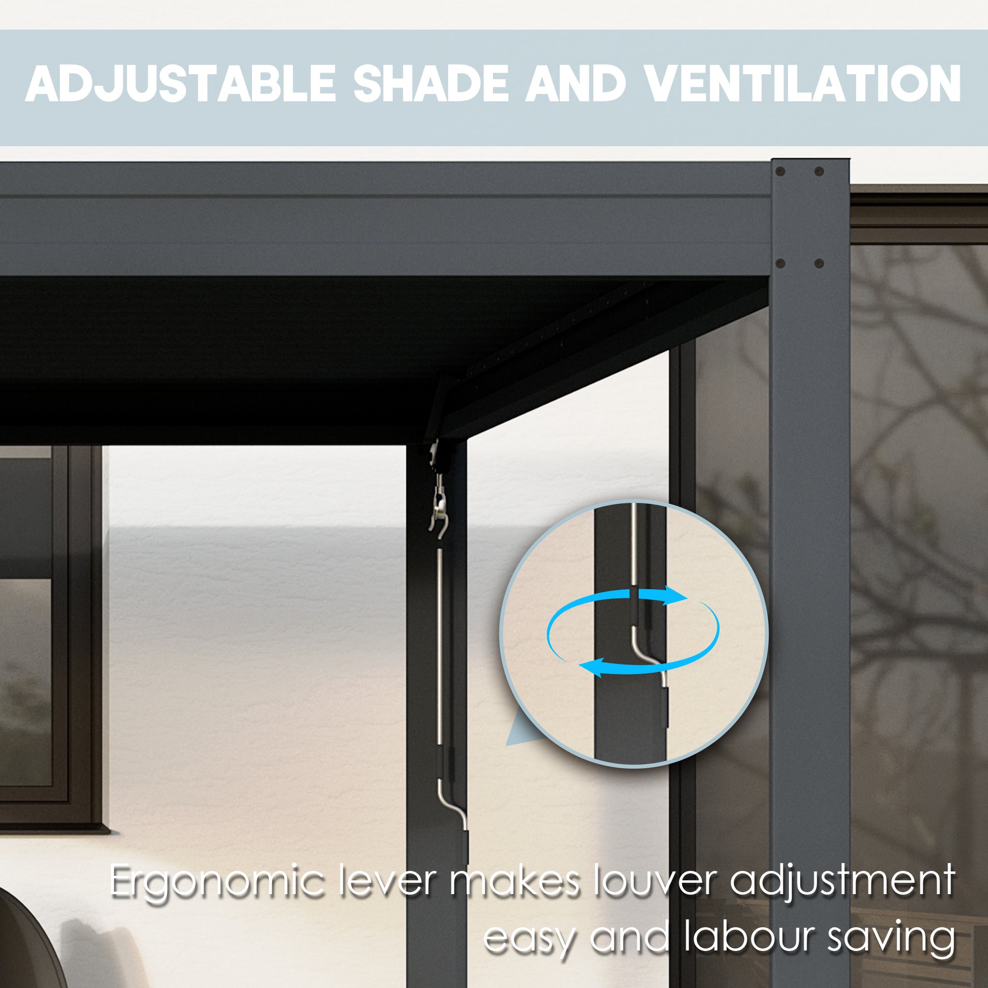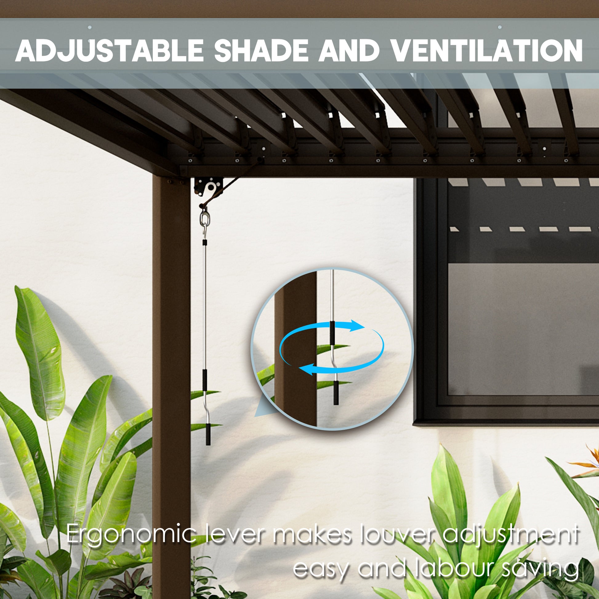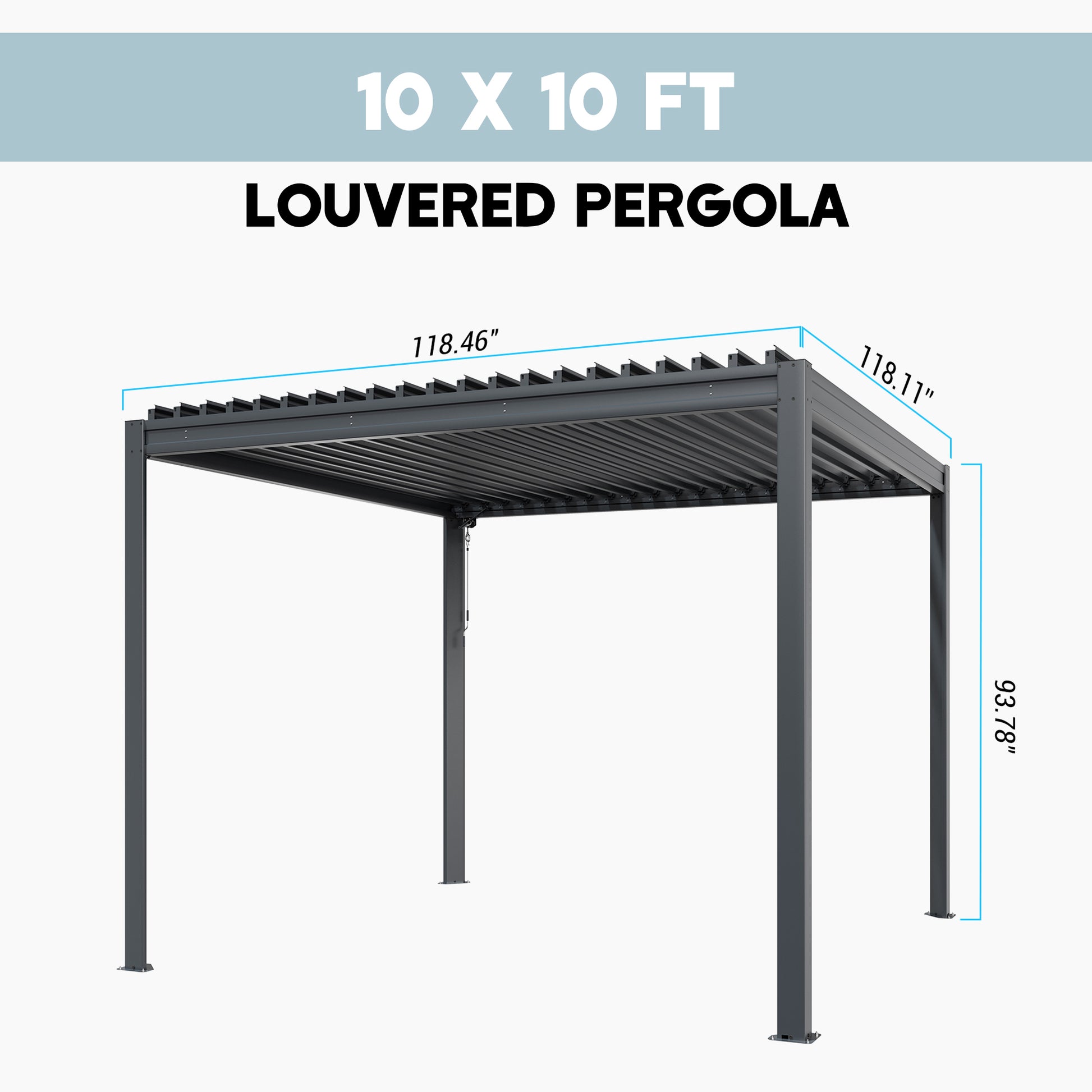 - 💙🌿Adjustable Shade and Ventilation- Experience customizable comfort with 10x10FT pergolas. Easily control sunlight and shade with our convenient louvers, simply twist the lever to your desired setting. Whether you crave a cool, shaded retreat or yearn to bask in the sun's warmth, our pergola effortlessly caters to your preferences.