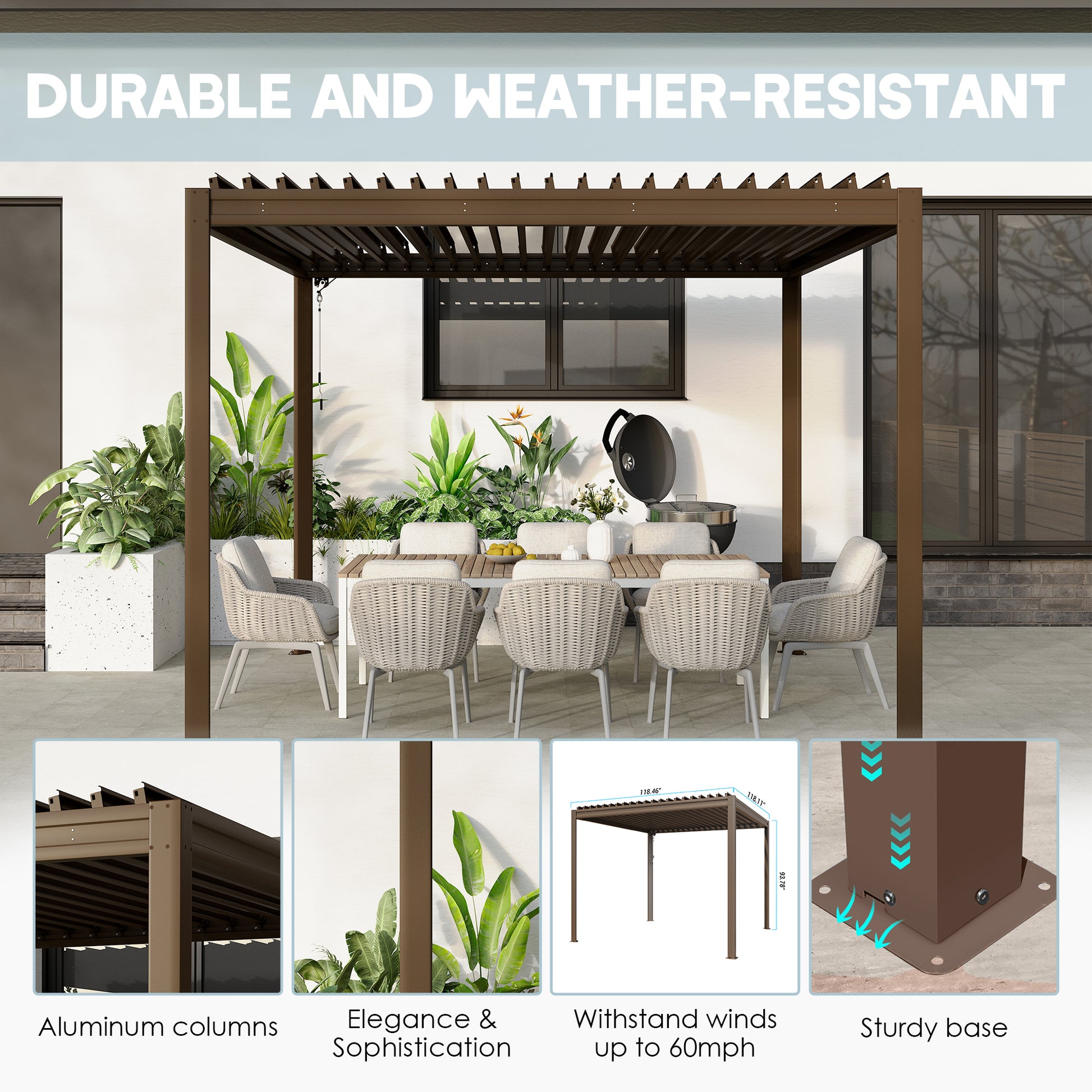 - 💙🏡Premium Materials- aluminum pergola crafted with premium materials, including aluminum columns and galvanized steel beams and louvers, all coated with a durable powder finish. Built to withstand any outdoor condition, it promises long-lasting and timeless elegance.