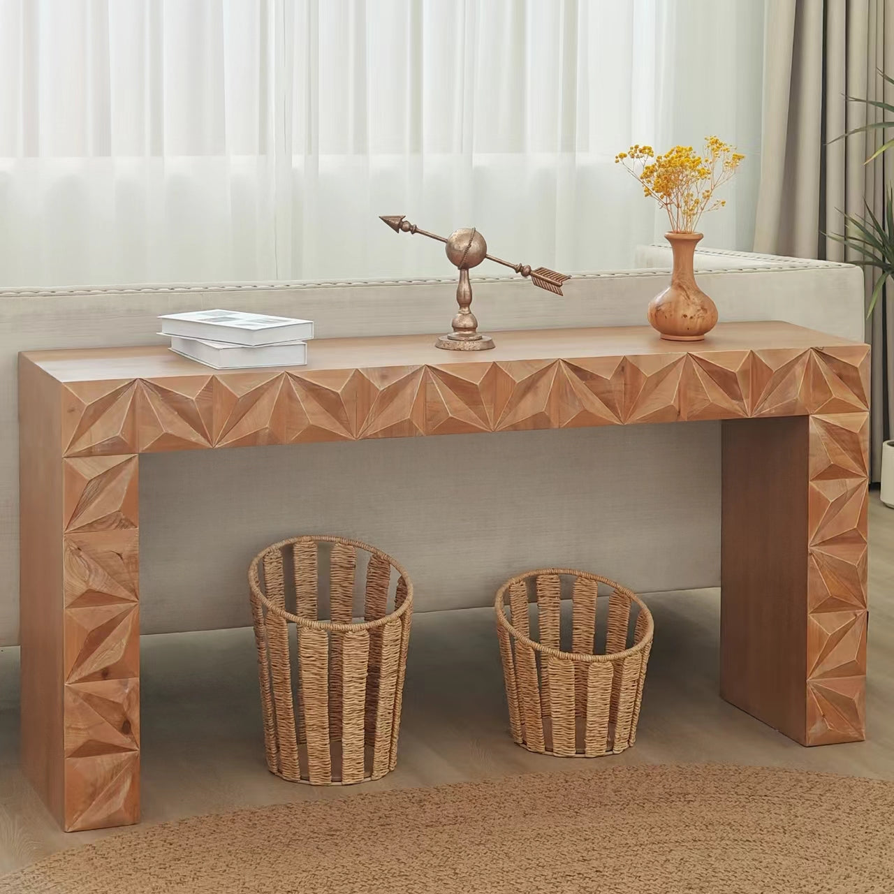 Modern Geometric Wooden Console Table - Handcrafted Design with Intricate Detailing
