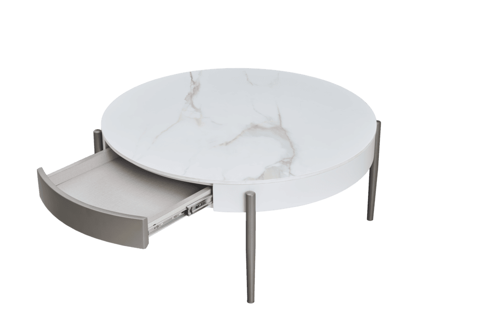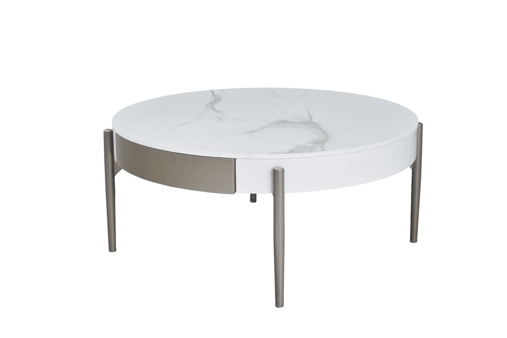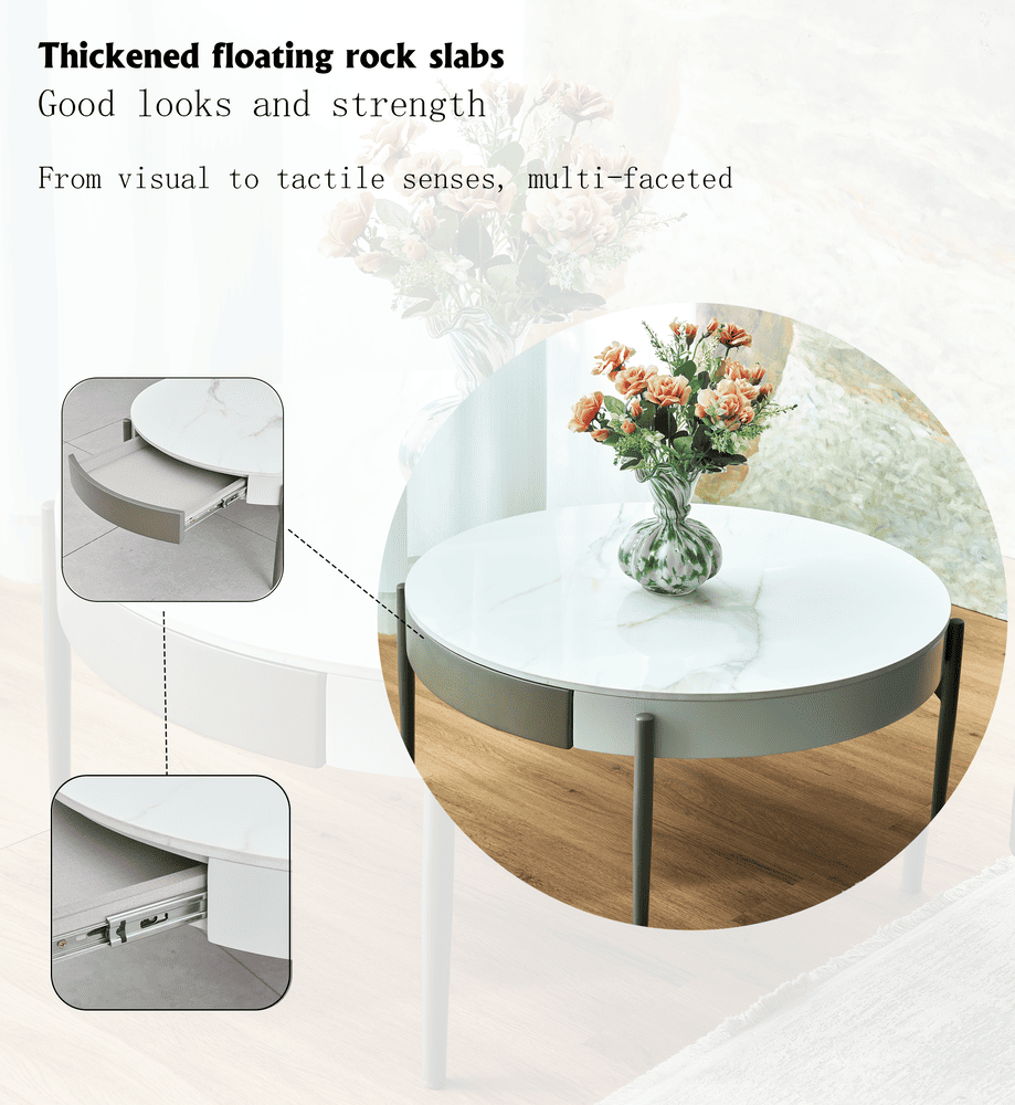 - Elegance & Fashionable:Features a sintered stone tabletop, the sleek silhouette is accentuated by a sophisticated smoked wood veneer, this round coffee table creating a harmonious blend of classic charm and modern allure.