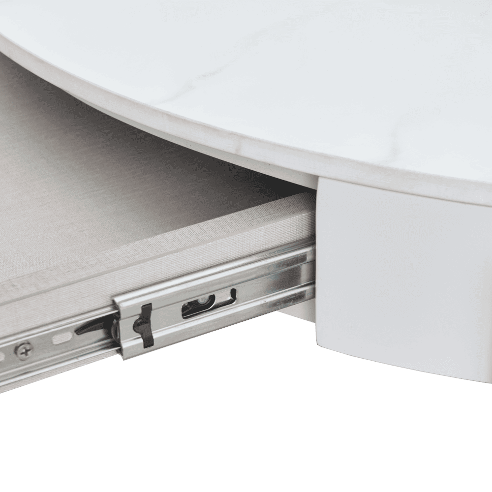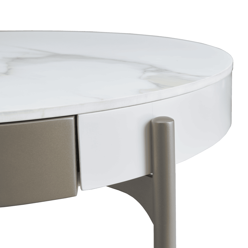 Modern Round White & reall wood color Coffee Table with Drawers and metal legs,Drum Coffee Table with Grey Legs Circular Center Table with ceramic Pattern Top for Living Room Apartment Office-White