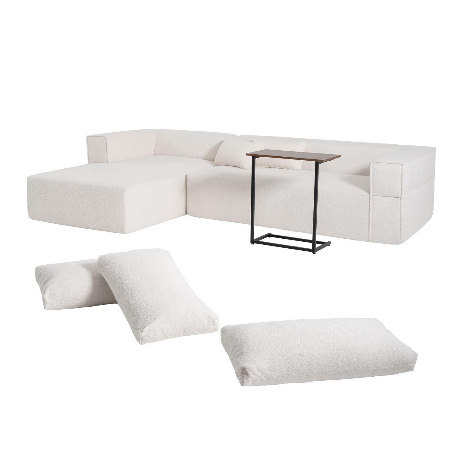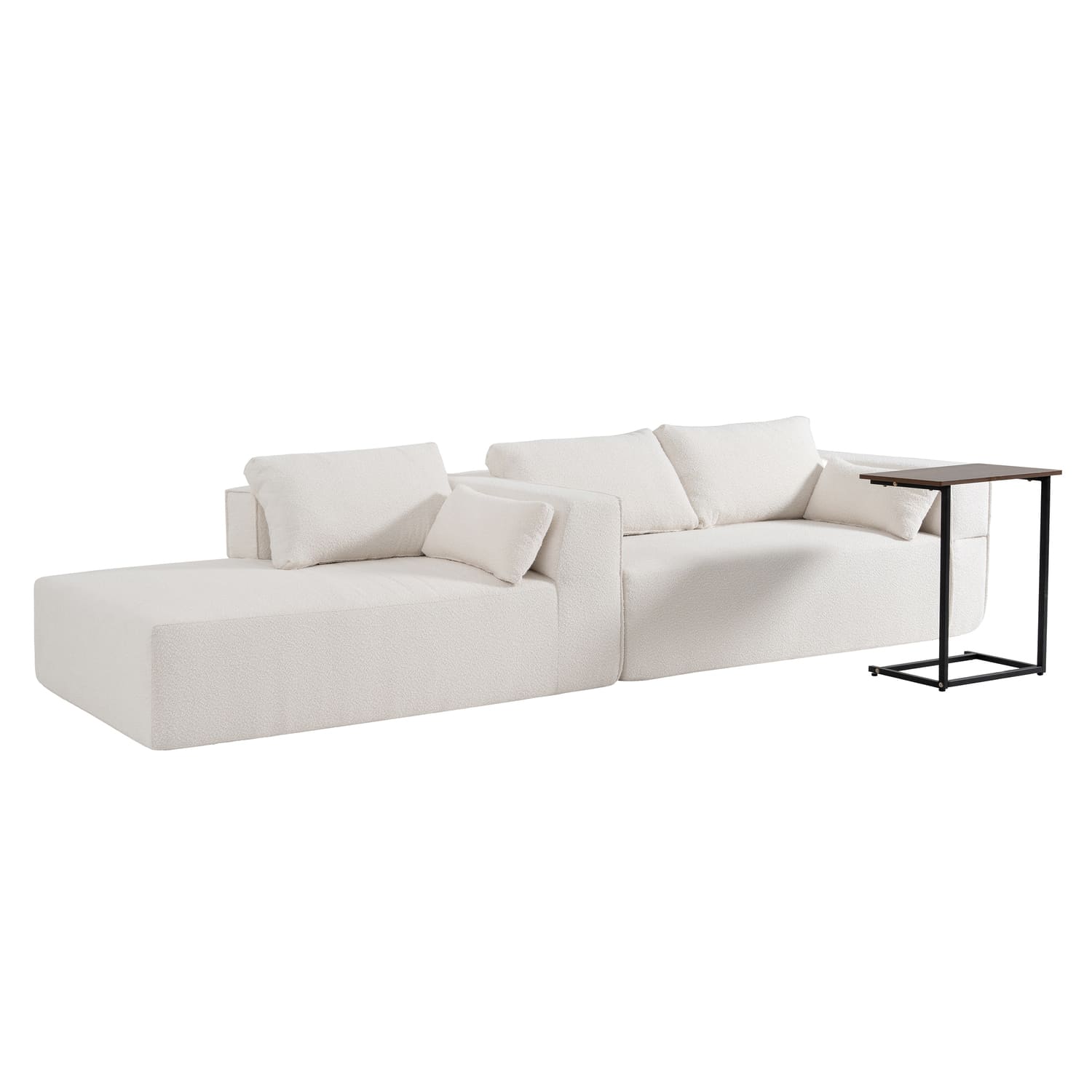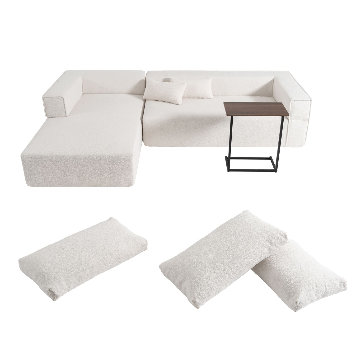 Modular Sectional Sofa with Free Side Table,Wide Seat,Fully Compressed,Wrinkle-resistant Boucle Fabric Couch with Chaise,Free Combination,L-Shaped Sofa for Living Room,No Assembly Required