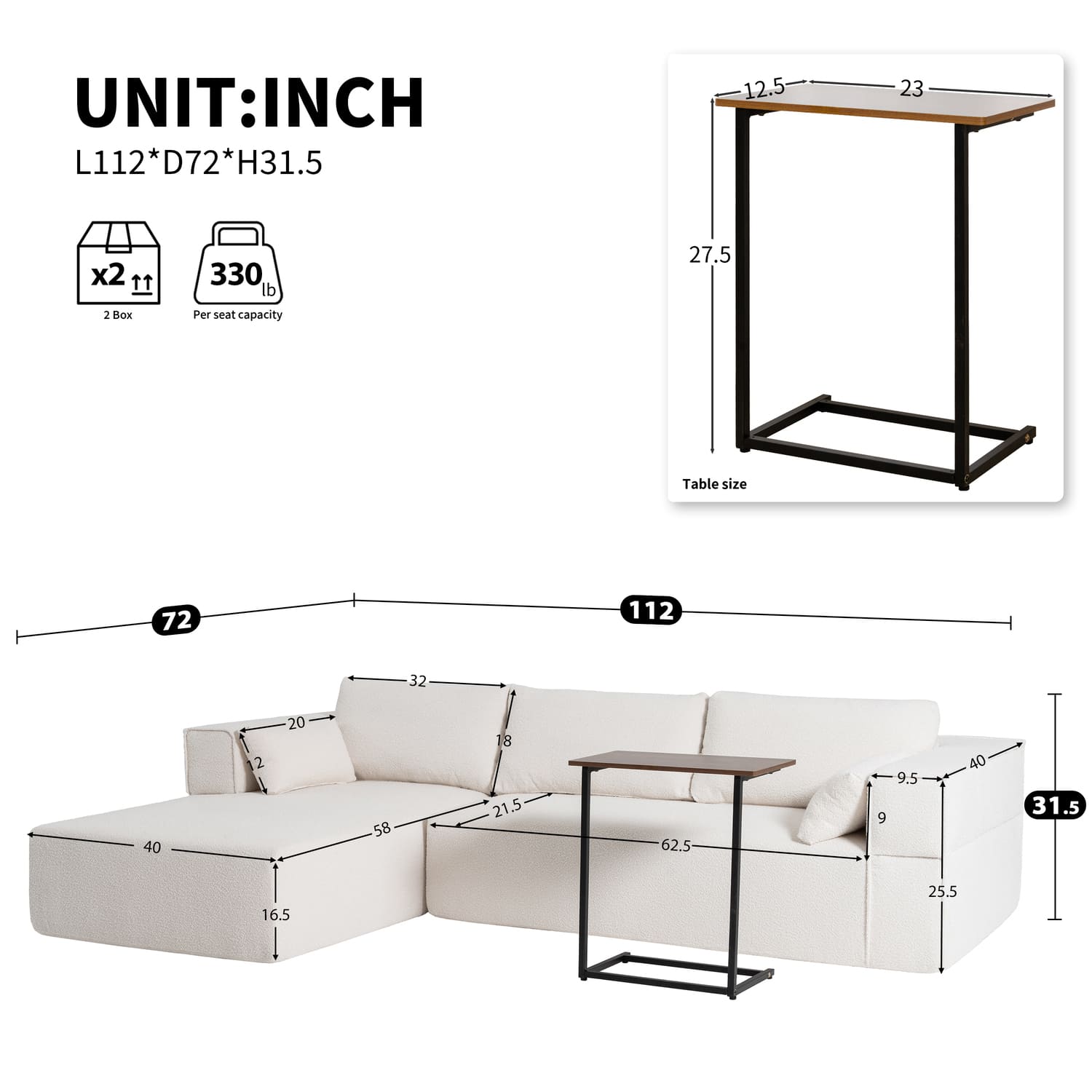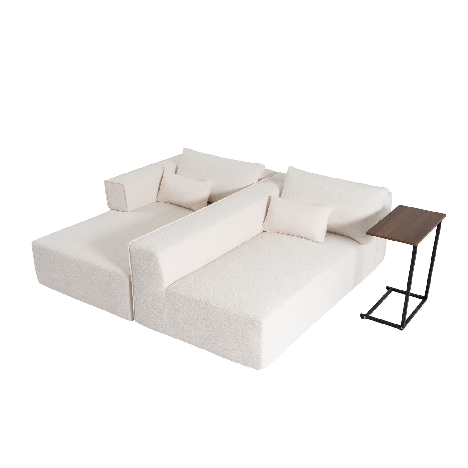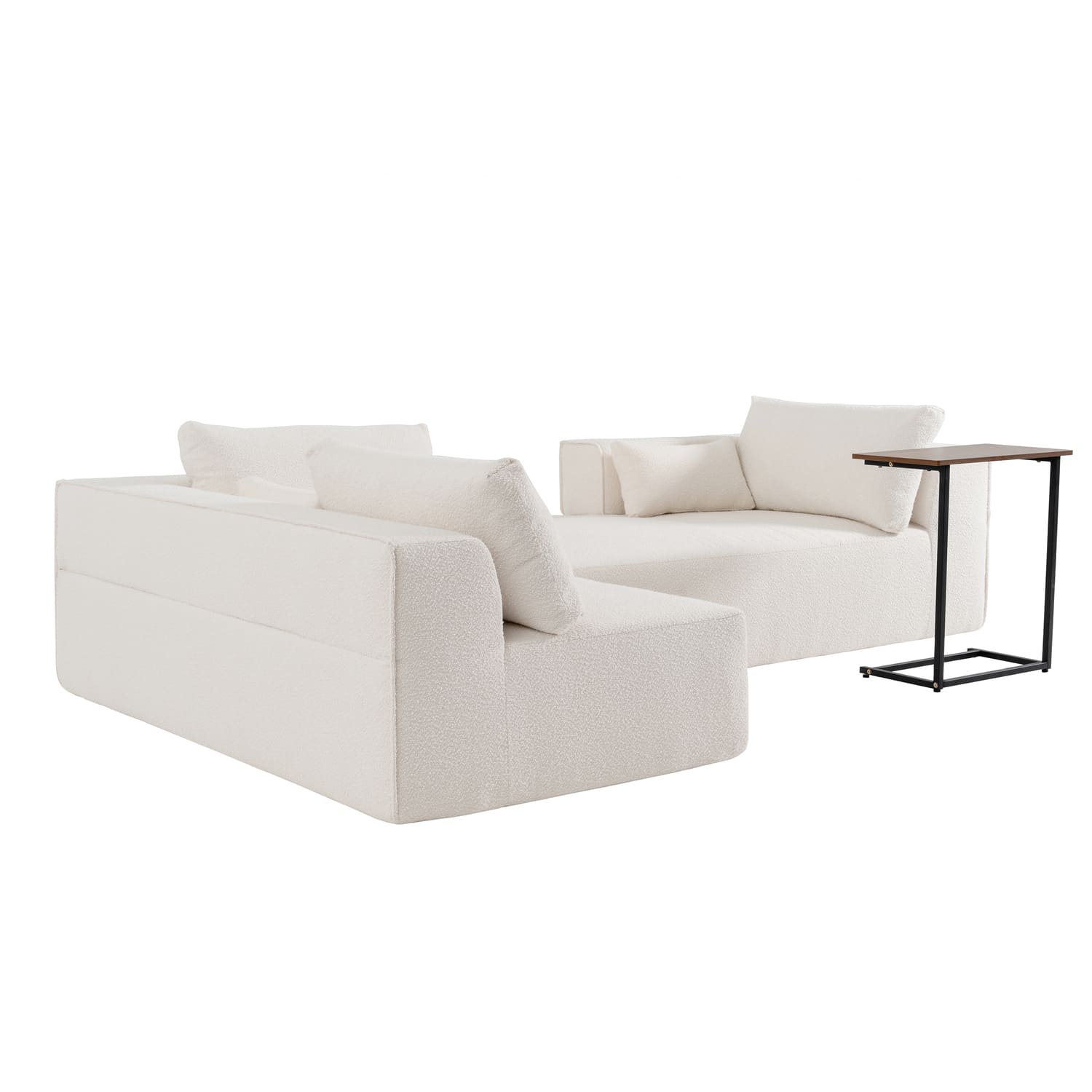 This sofa offers unbeatable convenience and style with its key features. It comes fully compressed, making it easy to transport and fit into any space. With no assembly required, it’s ready to use right out of the box, saving you time and effort. The two modular pieces can be freely rearranged to suit your space and preference, offering flexibility in design. Plus, a complimentary side table is included, enhancing functionality and providing a perfect spot for drinks, snacks, or decor. It’s the perfect blend of practicality, comfort, and modern design.