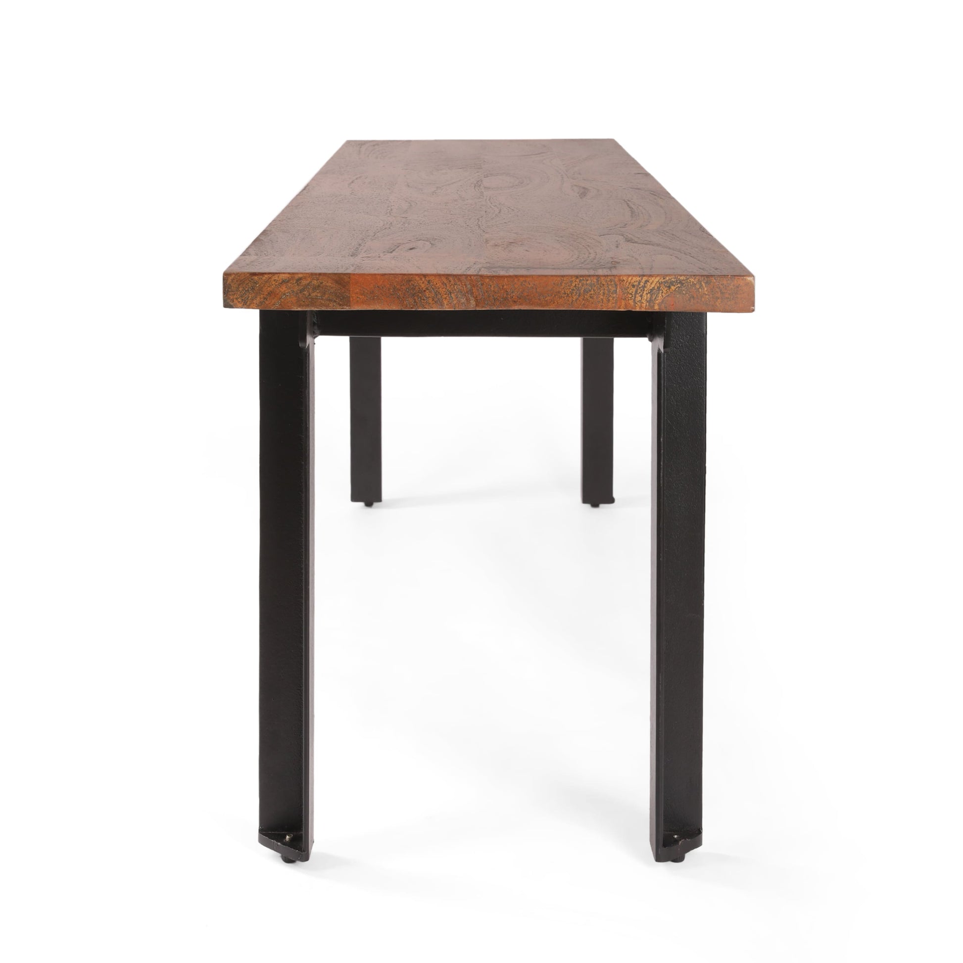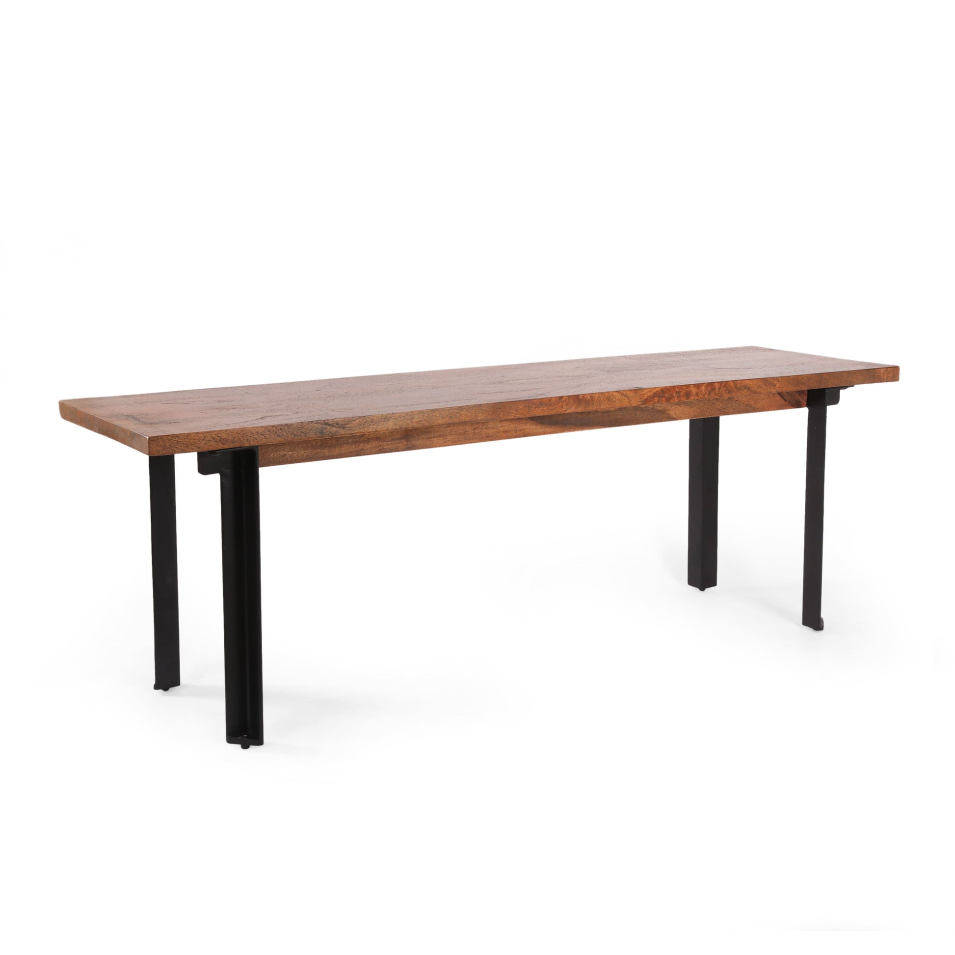 - MODERN INDUSTRIAL: Our dining bench incorporates a powder-coated frame with a sleek wood top to create an understated modern industrial design. Featuring smooth metal contrasted by natural wood, this bench offers a chic aesthetic to any home.