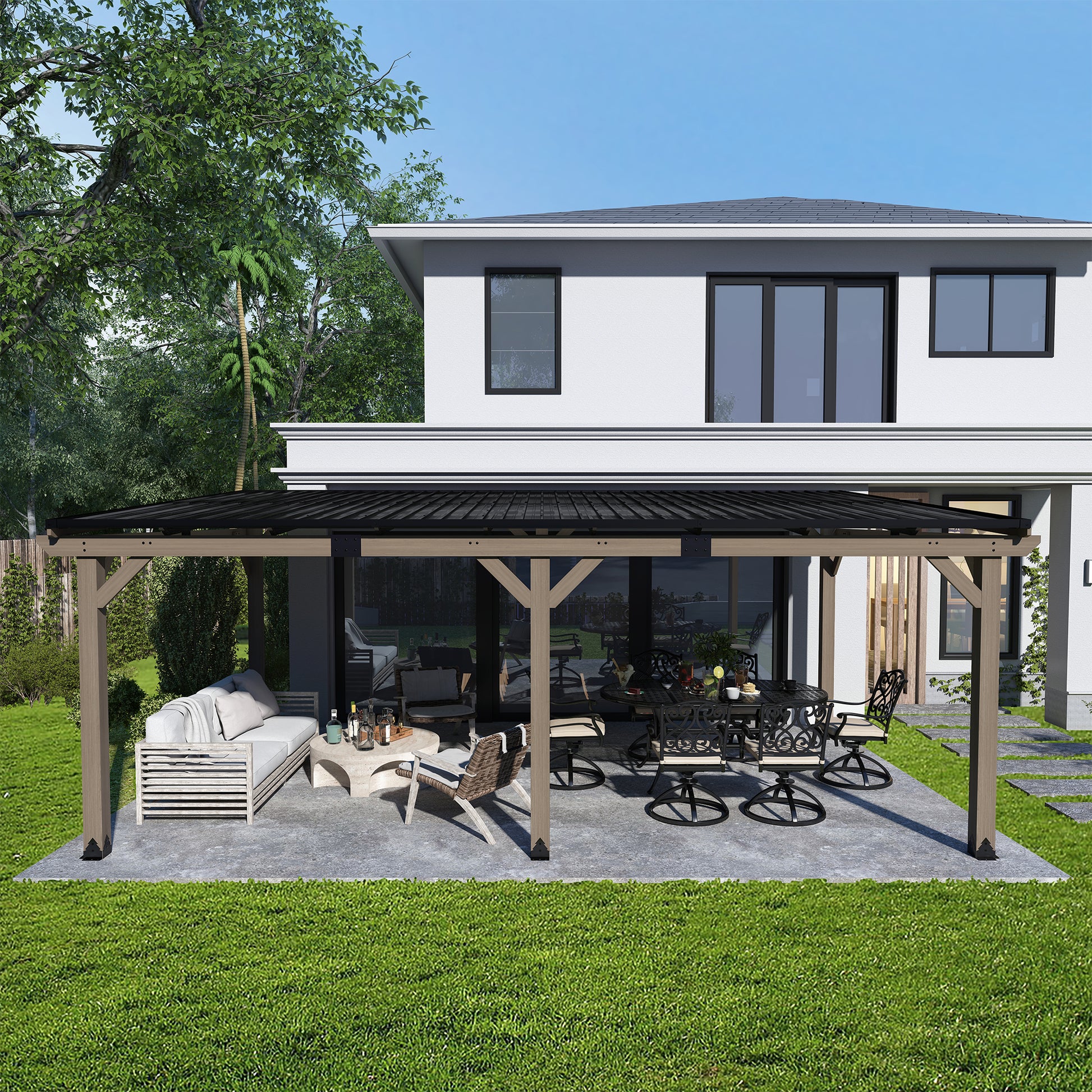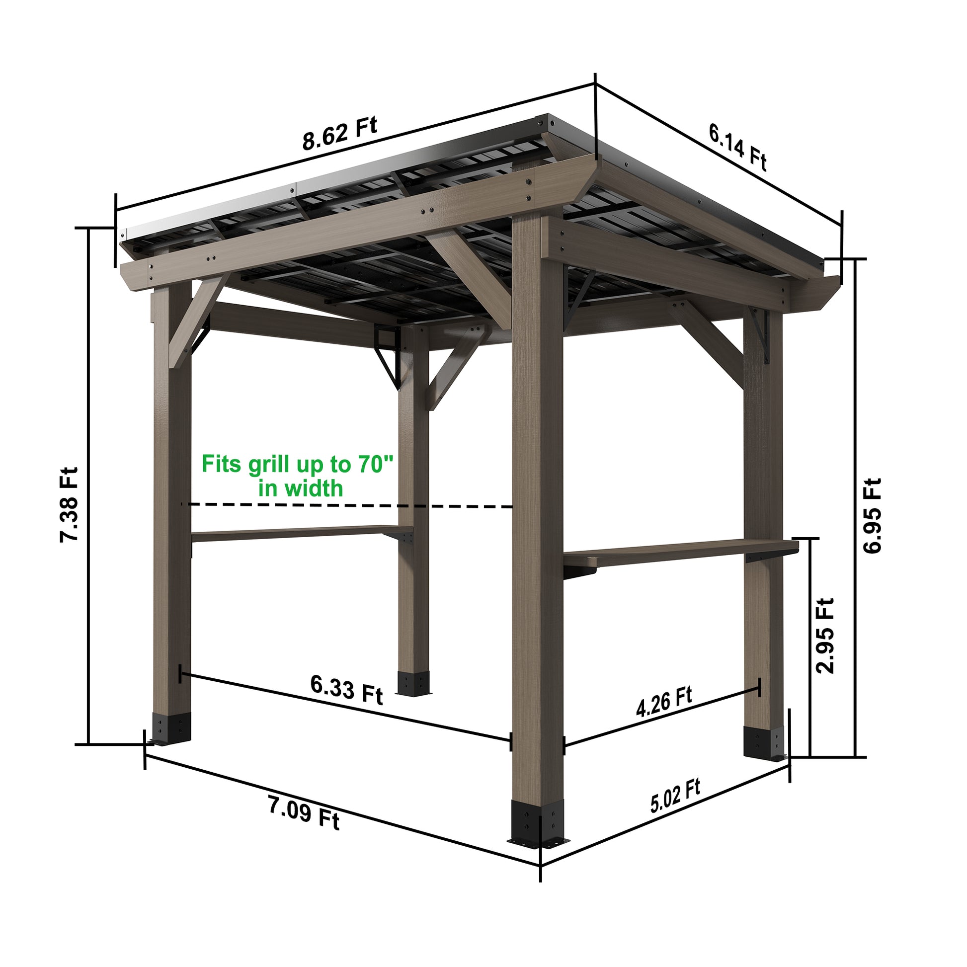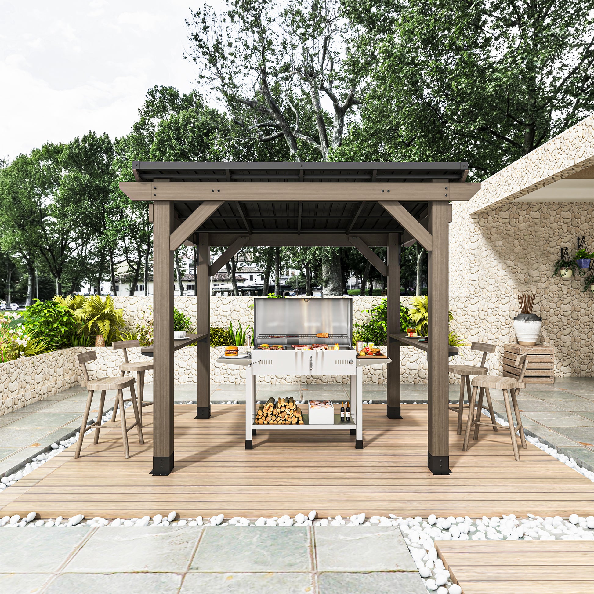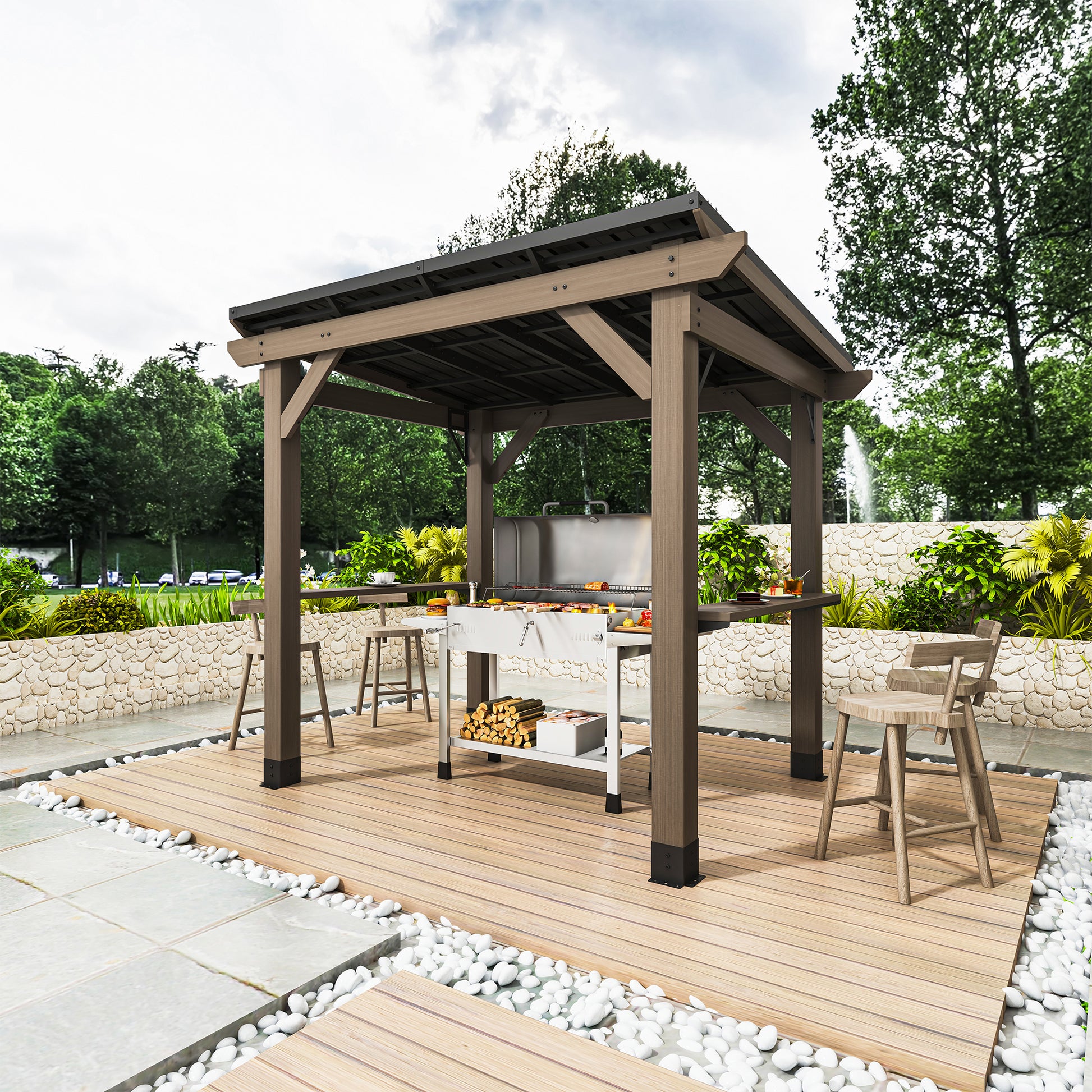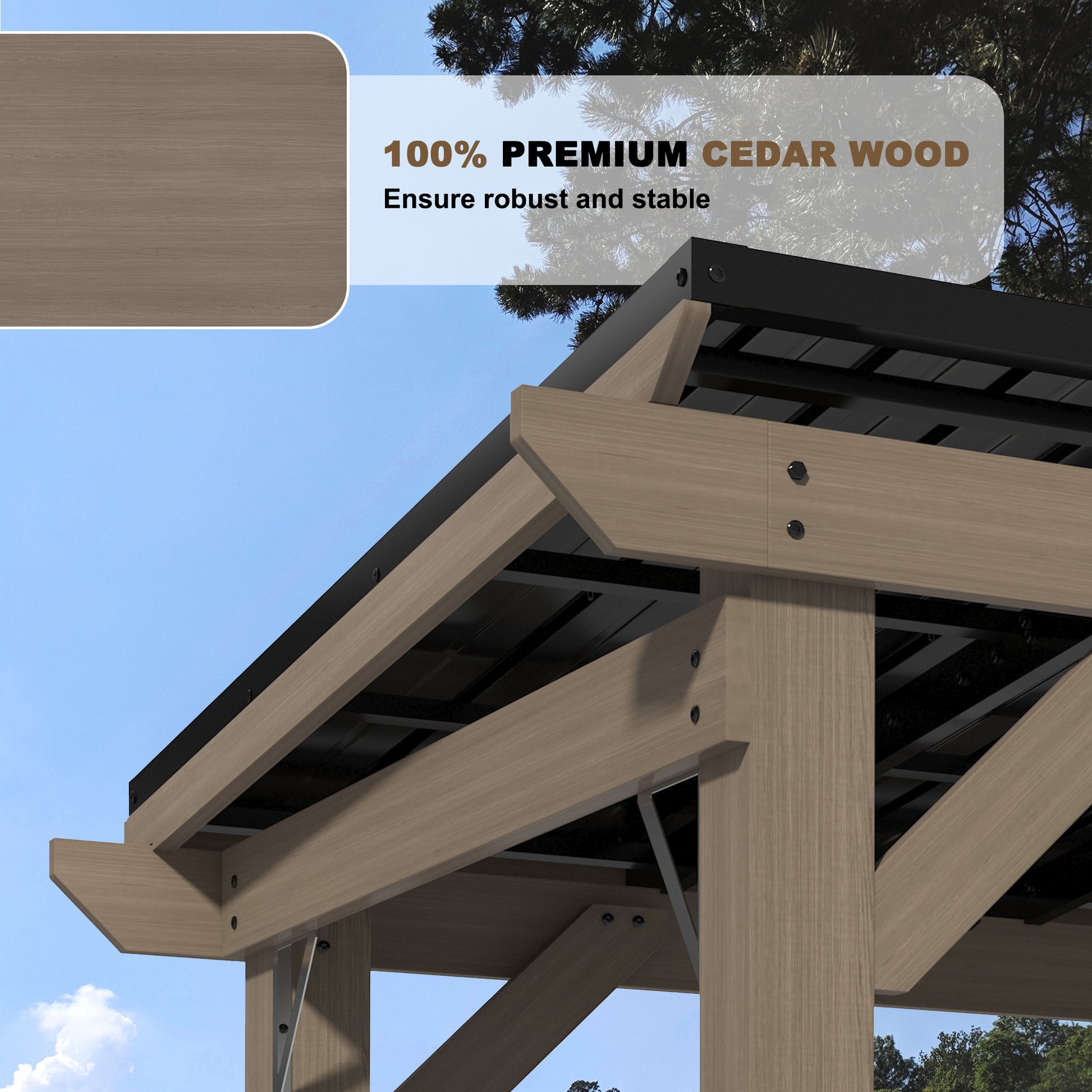 Outdoor Cedar Wooden Hardtop Gazebo with Pitched Galvanized Steel Roof