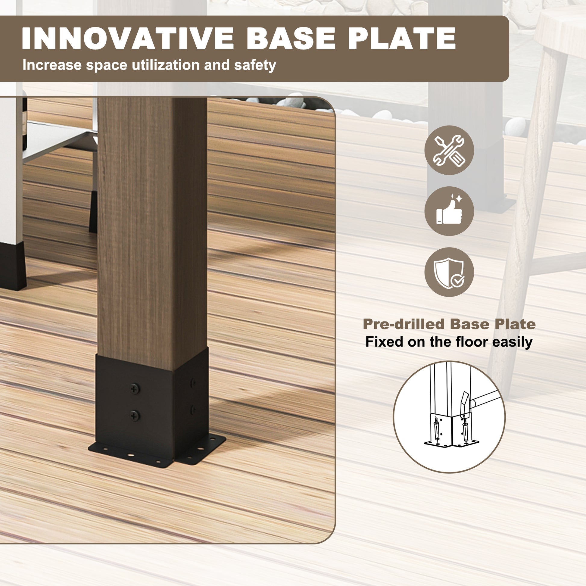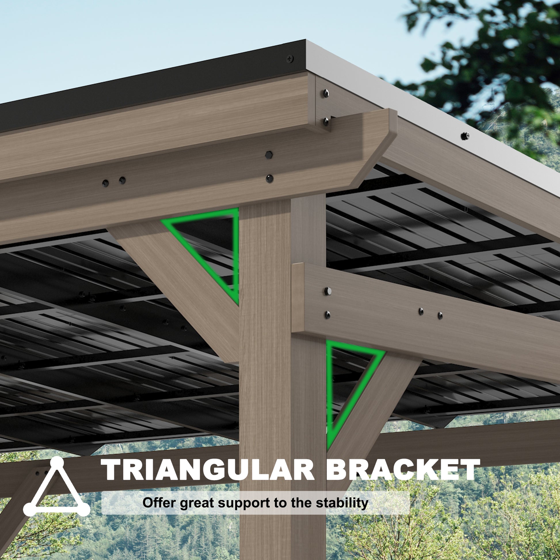 The four corners use a triangular bracket design to provide better support for the top and provide stability in windy conditions.