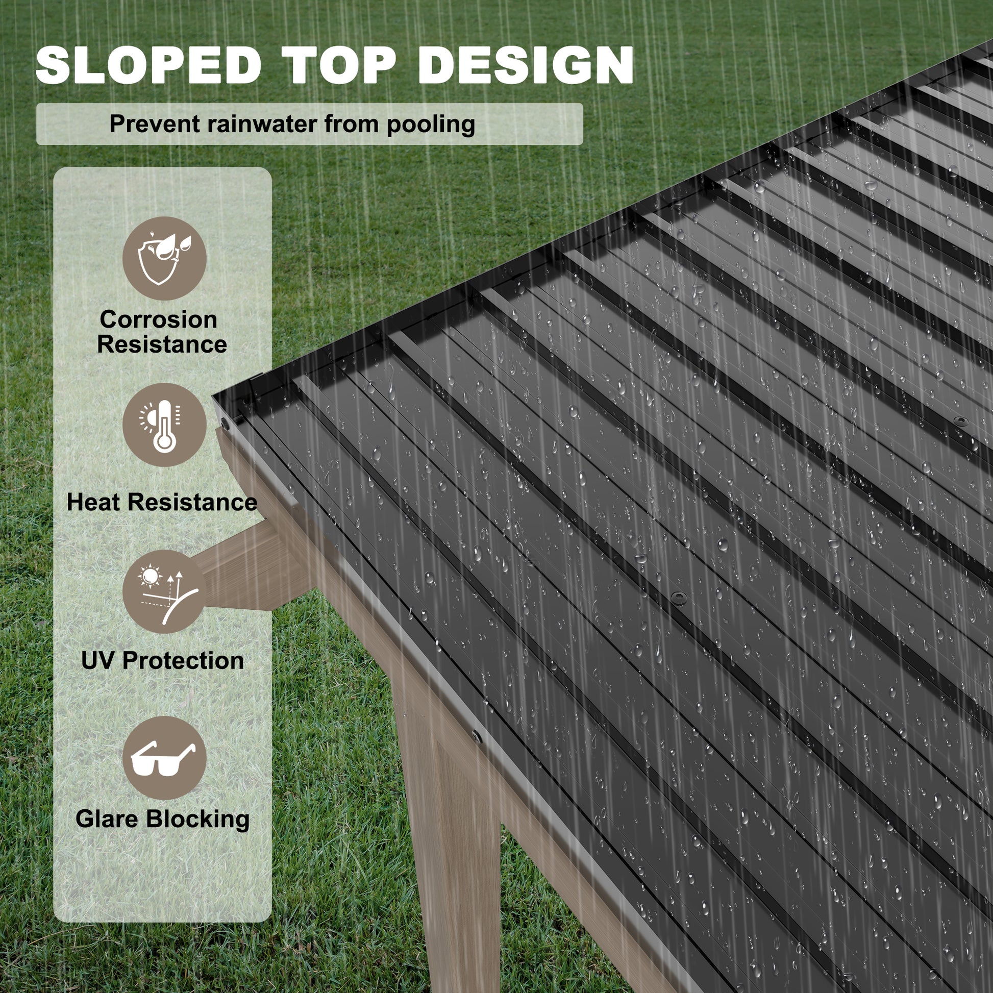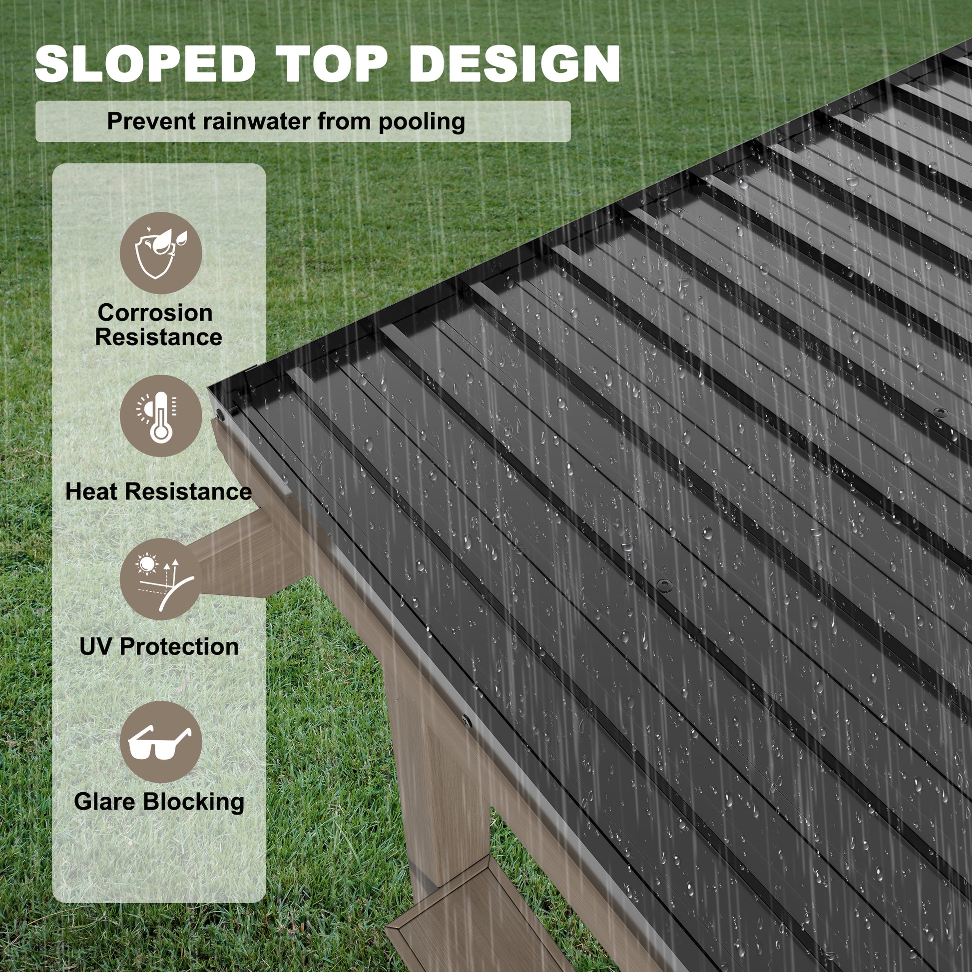 The fade-resistant and rust-resistant black galvanized steel roof is rainproof and insulated, blocking bright light and harmful UV rays, and can be used in sunny, rainy, and snowy weather.