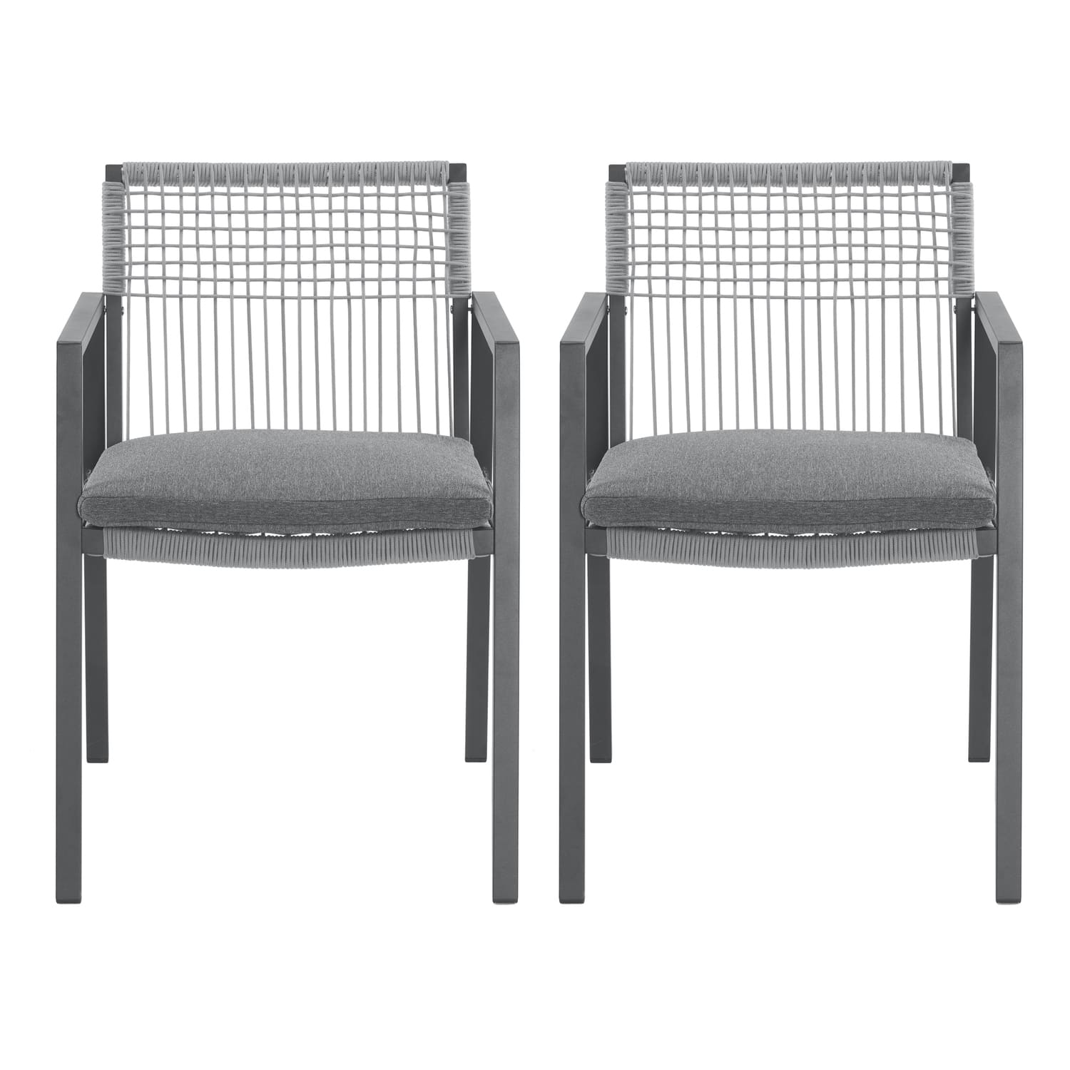 Outdoor Dining Chair Set of 2, Aluminum + Rope , Outdoor Armchair Seating for Patio Backyard Poolside Balcony, Cushion included