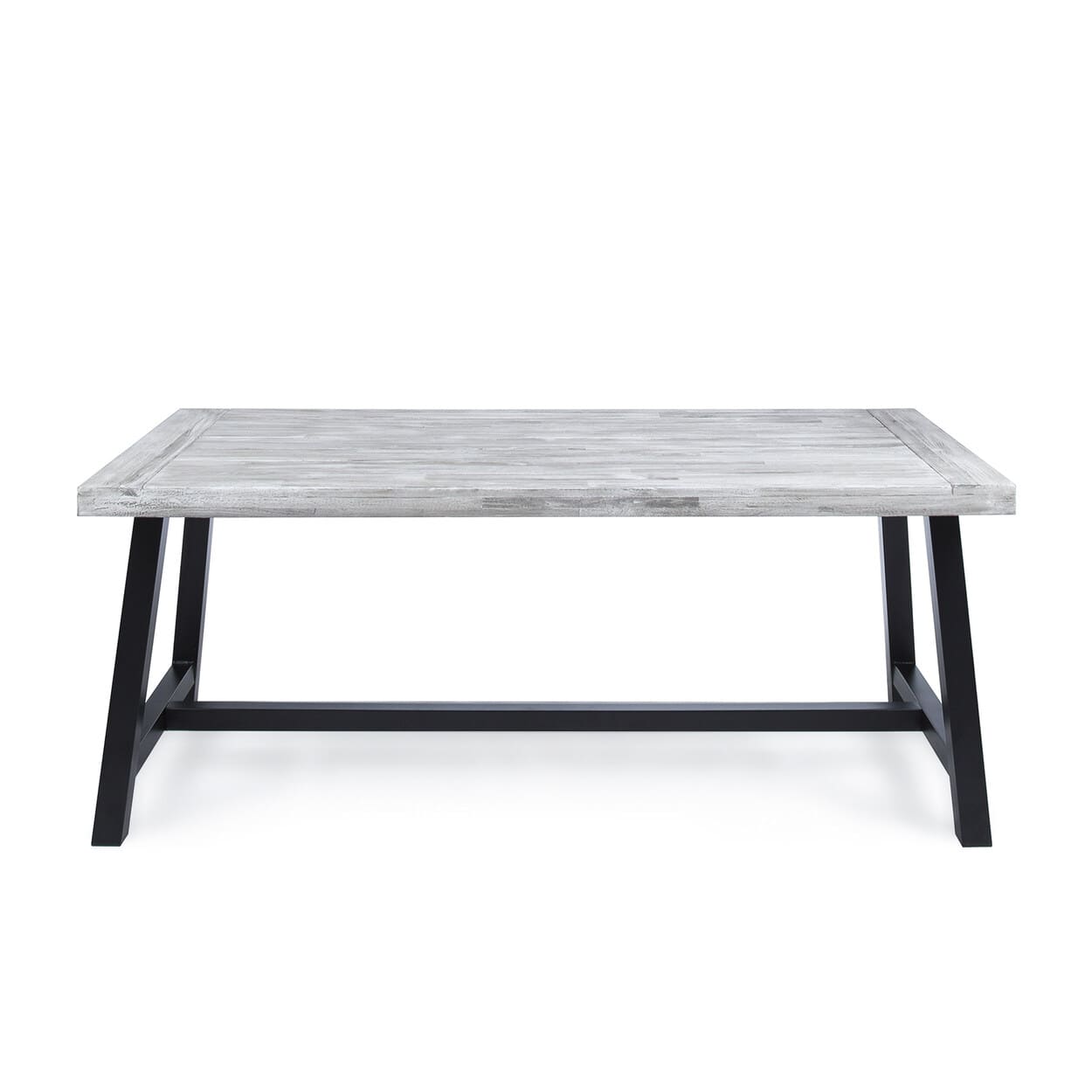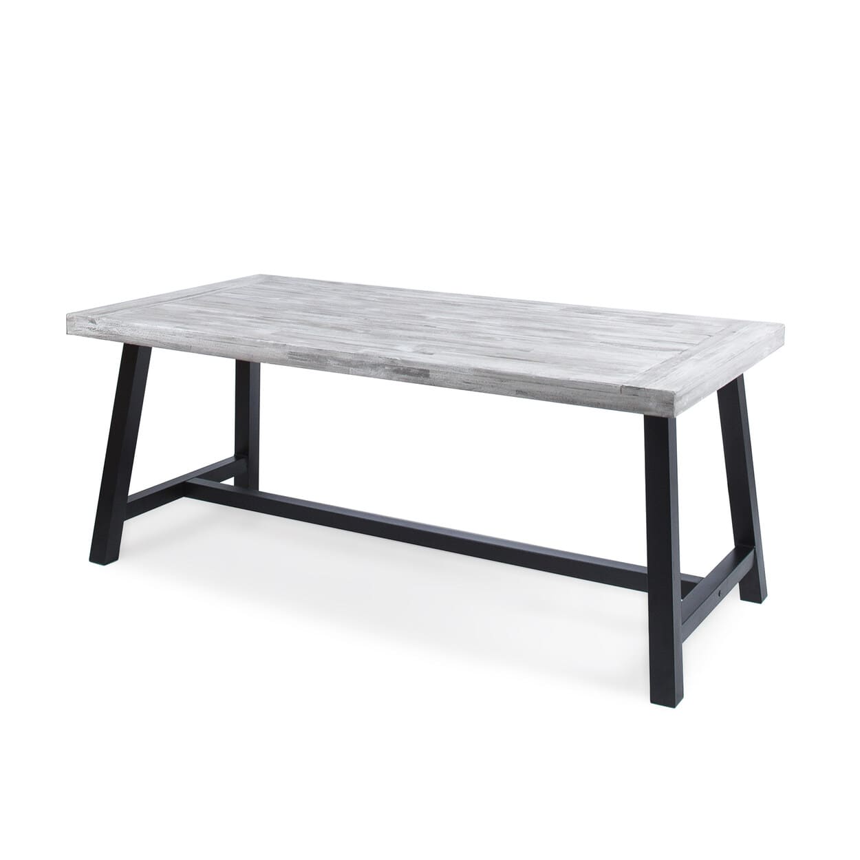 Outdoor Light Grey Sandblast Finish Acacia Wood Dining Table with Black Rustic Metal Finish Frame