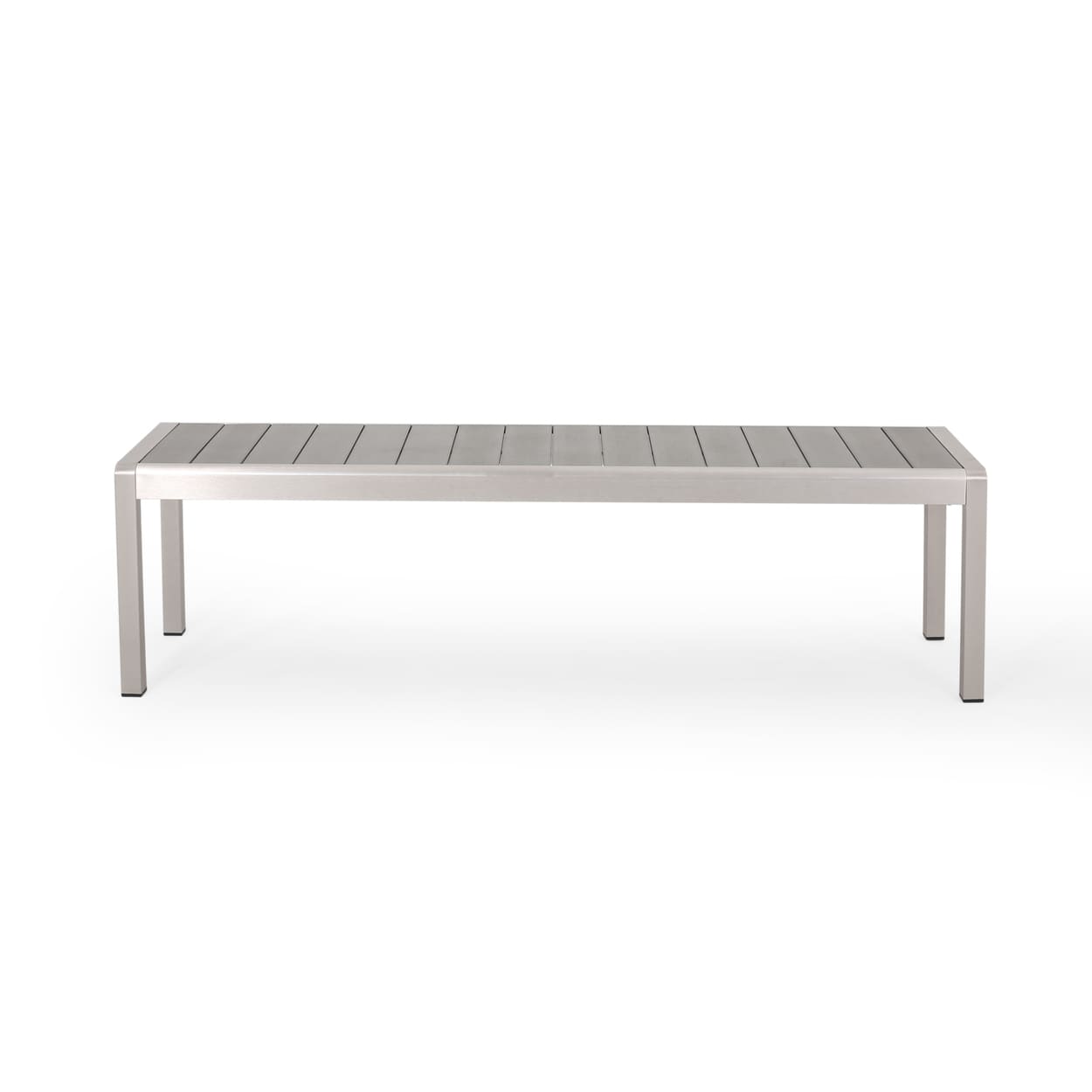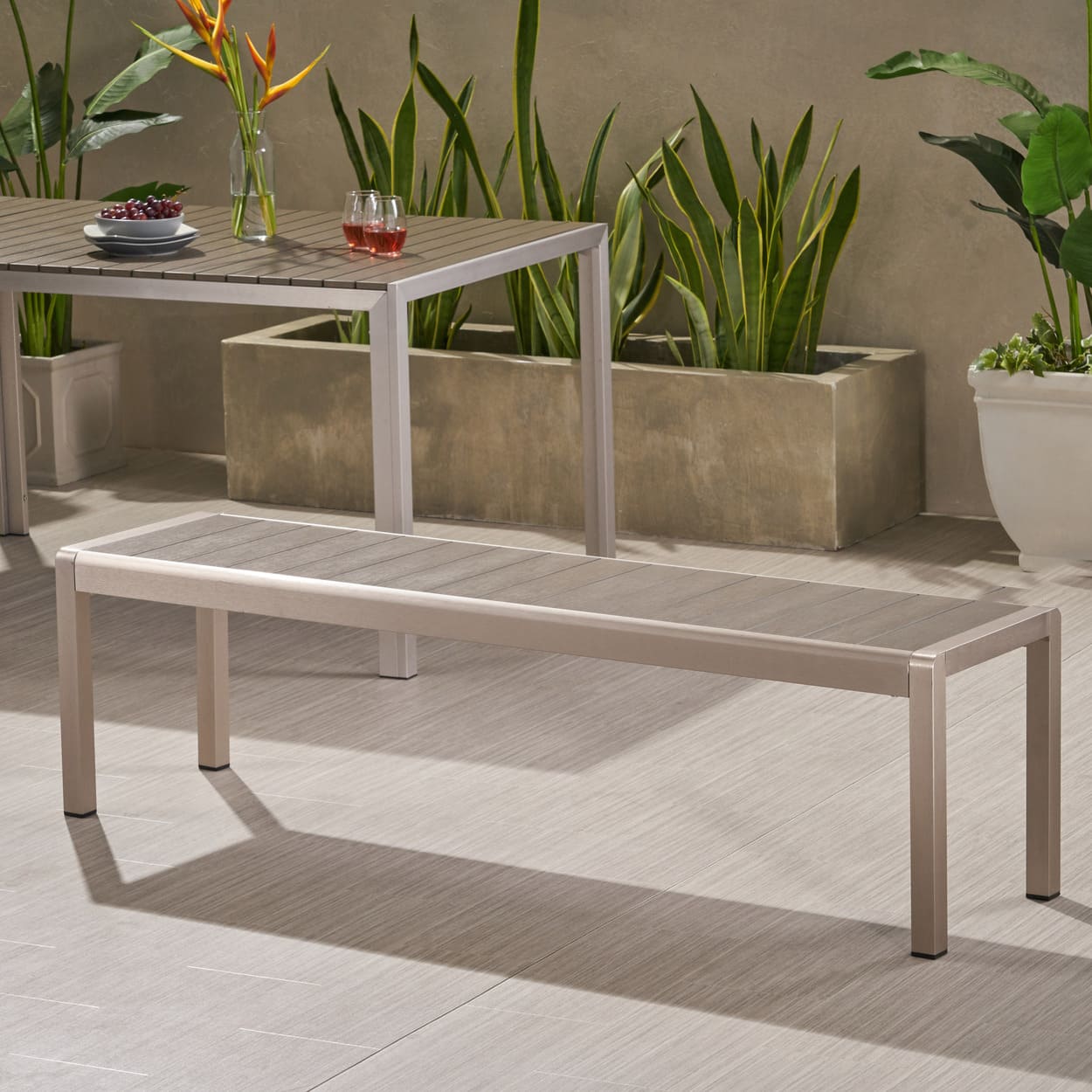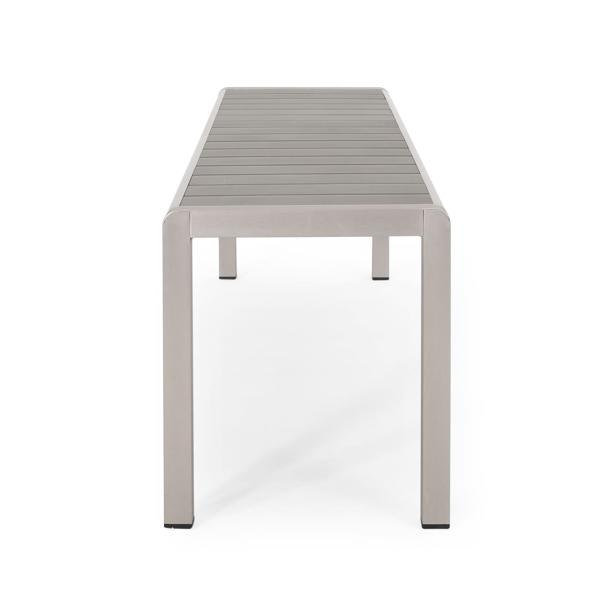 Outdoor Modern Aluminum Dining Bench with Faux Wood Seat, Gray
