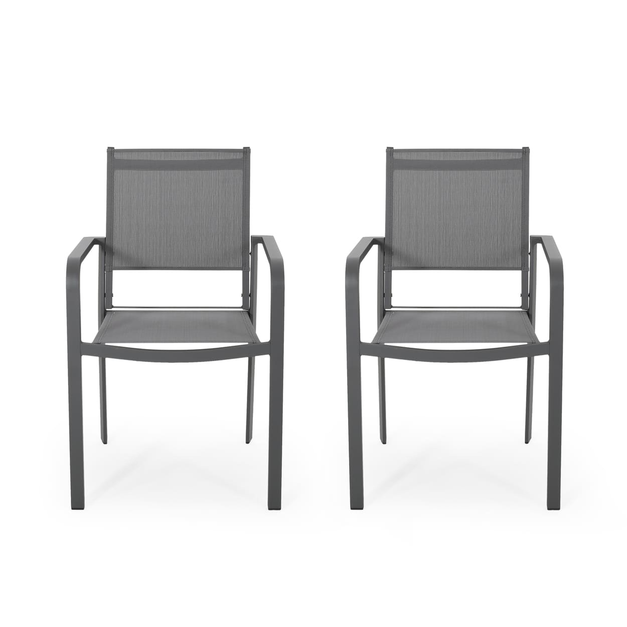 Outdoor Modern Aluminum Dining Chair with Mesh Seat (Set of 2)