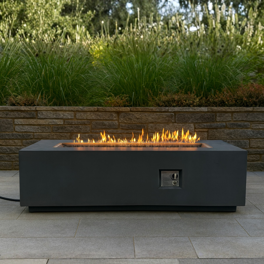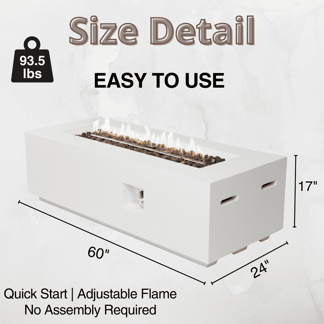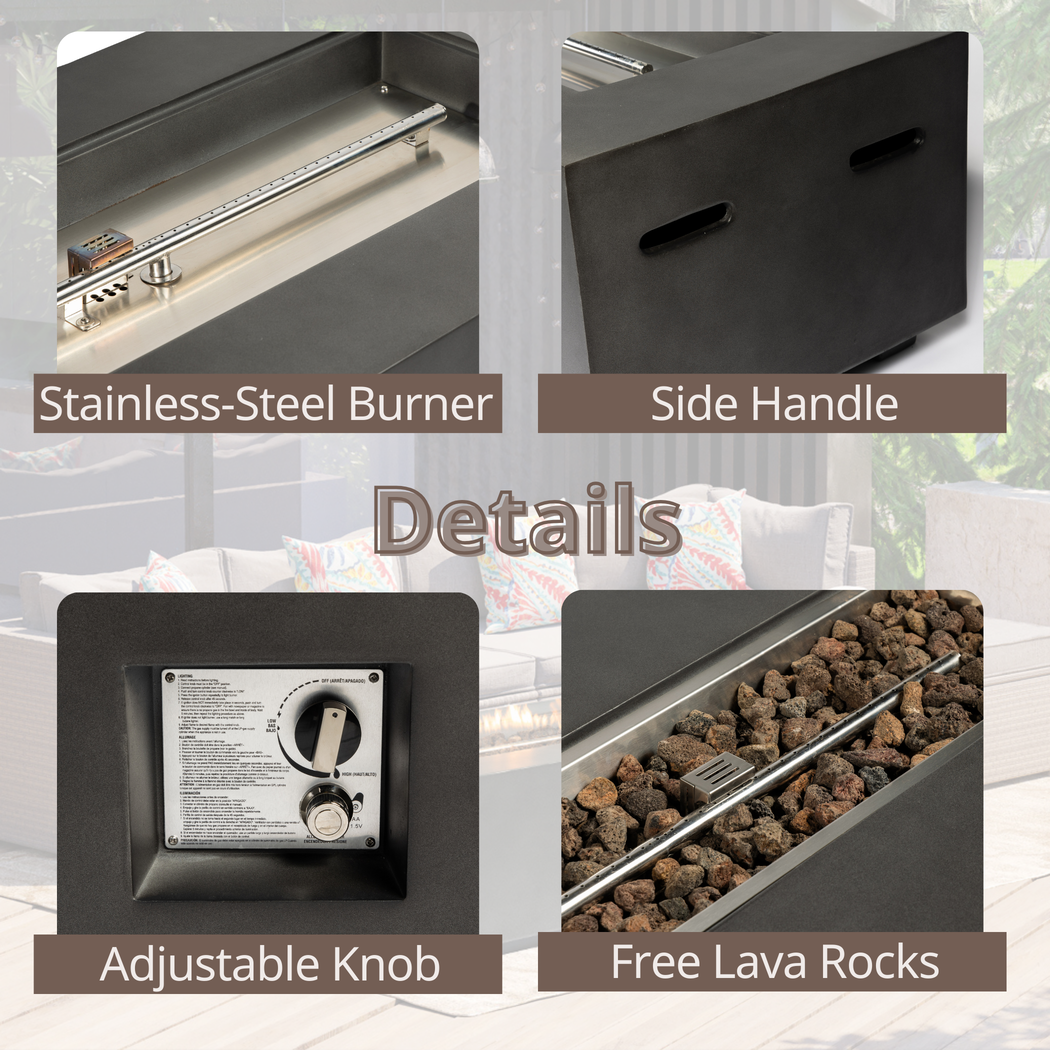 - 【Product Size and Design】This 60-inch outdoor fire pit table features a modern classic rectangular design, measuring 59.84 "L x24.02" W x16.73"H,weighs 90 lbs. Its sleek, contemporary look in a sophisticated dark gray finish enhances your patio or garden, making it a stylish centerpiece for gatherings.