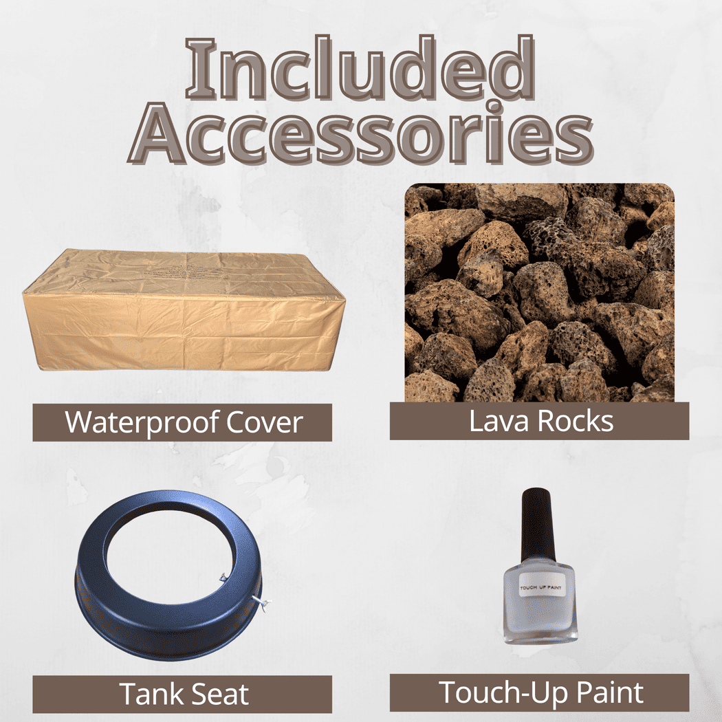 - 【Included Accessories & Customer Support】This outdoor fire table comes with 10 lbs of decorative lava rocks and a waterproof cover to protect it from harsh weather conditions like rain, wind, and snow, extending its lifespan. Additionally, it includes a bottle of touch-up paint in the same color for minor maintenance, along with a product instruction manual for proper use and care. Our dedicated customer support team is always ready to assist you with any questions or concerns.