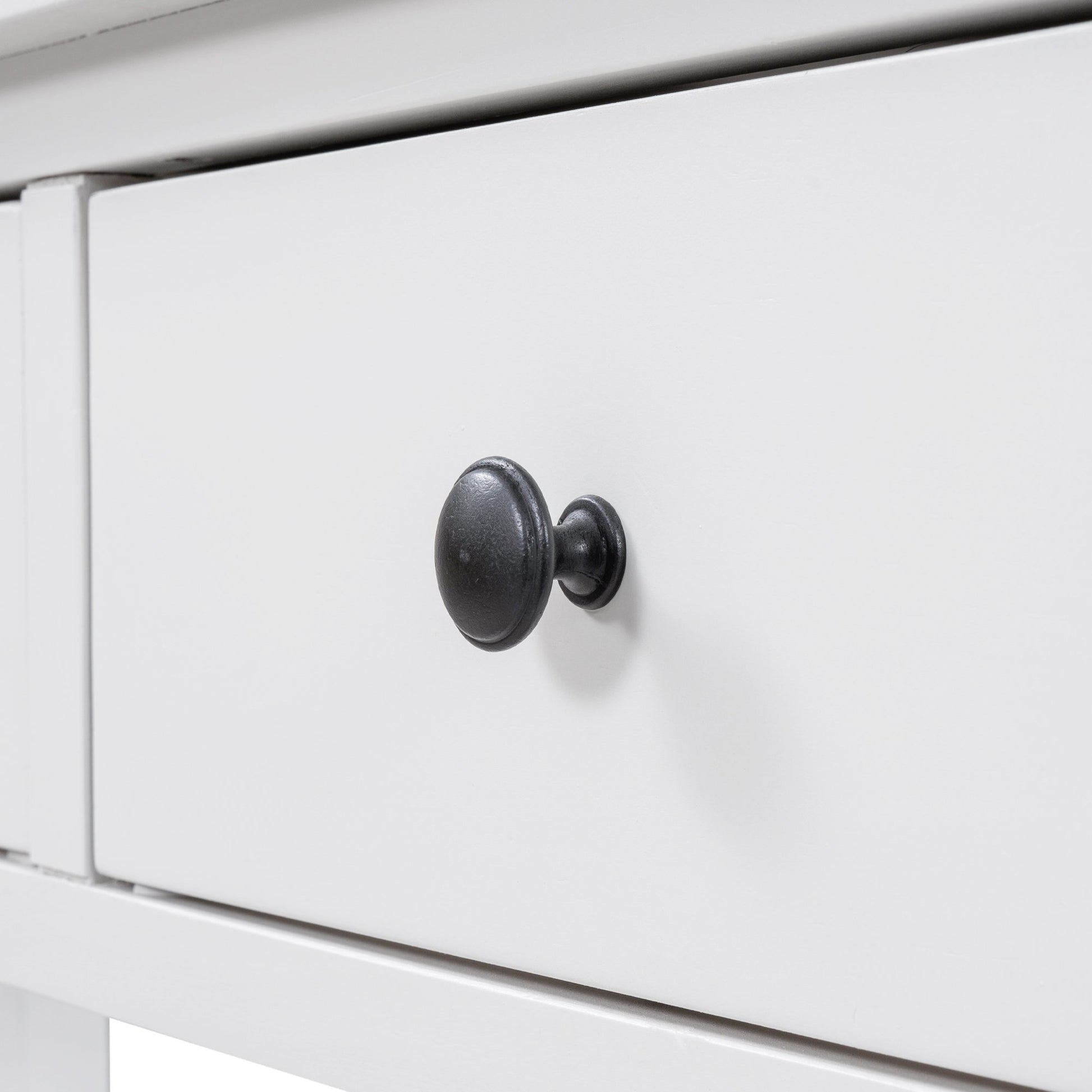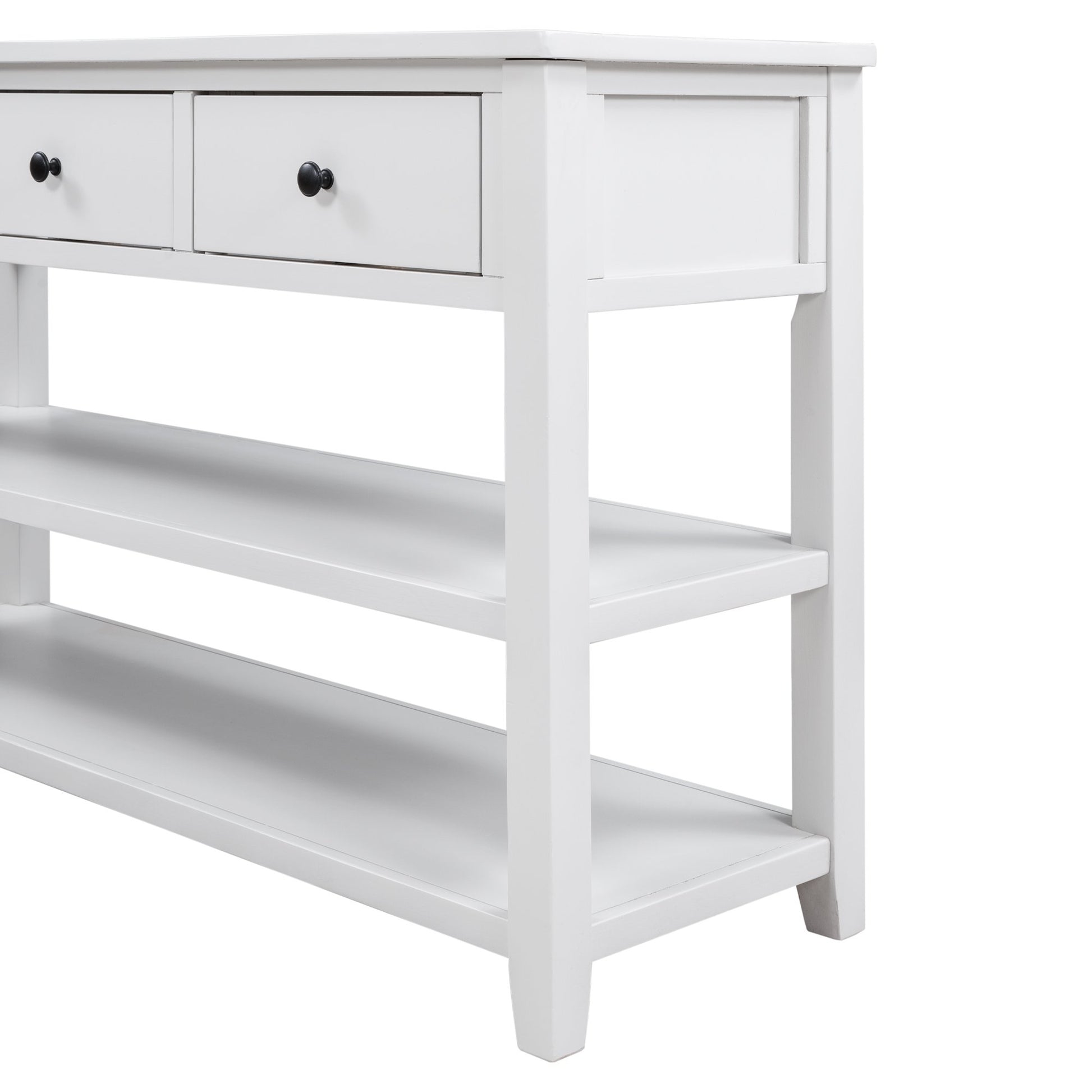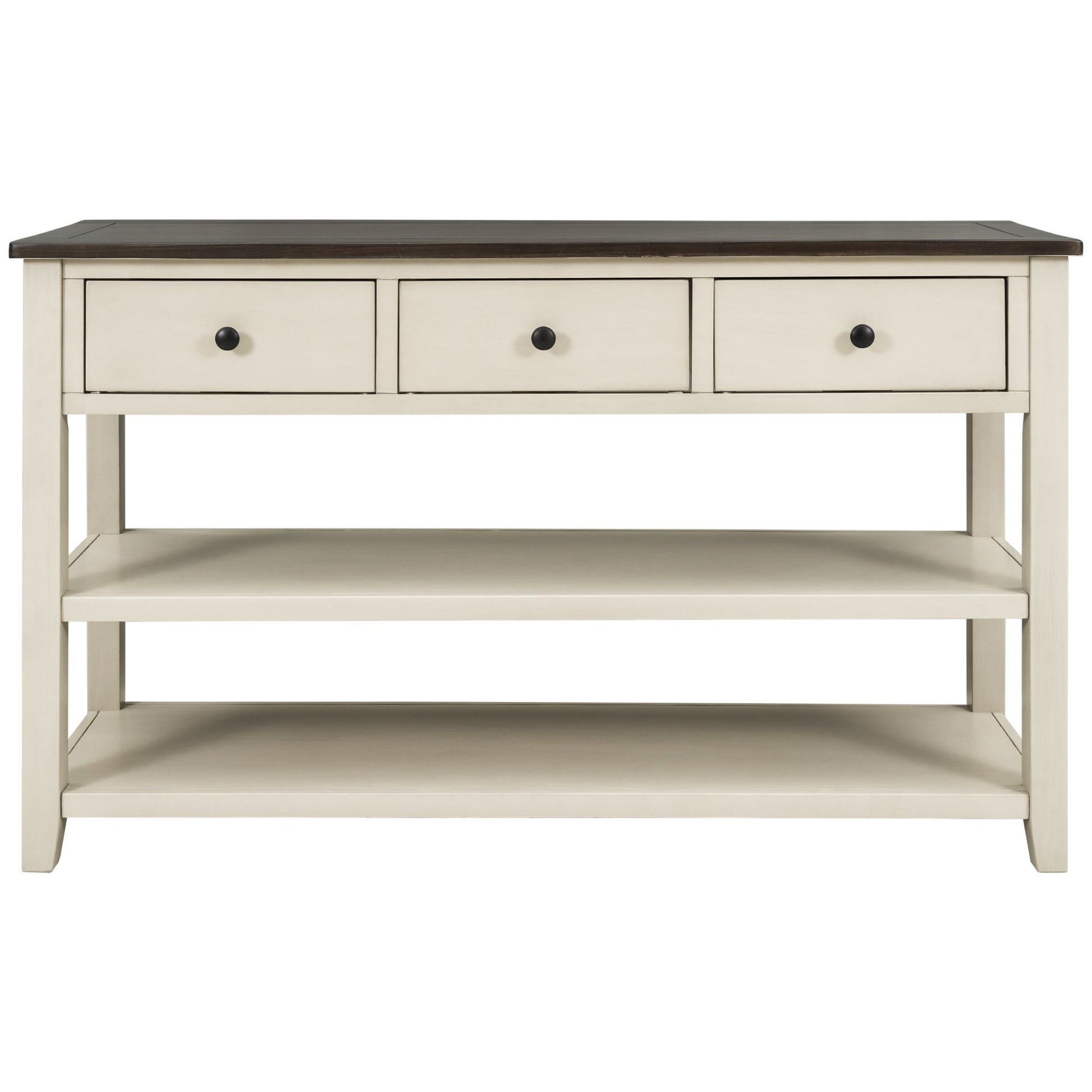 - 3 Drawers & 2 Layers Shelves: There are 3 drawers set under the tabletop to offer large room for storing daily necessities or files, and so on. You can keep daily sundries out of your sight to ensure your home clean and tidy. Round retro handles with fine craftsmanship shows a delicate and elegant life attitude. As a practical console table, the open style shelf is a vital element. The setting of 2 open shelves meet the requirements of placing storage basket, books, pot culture, etc.