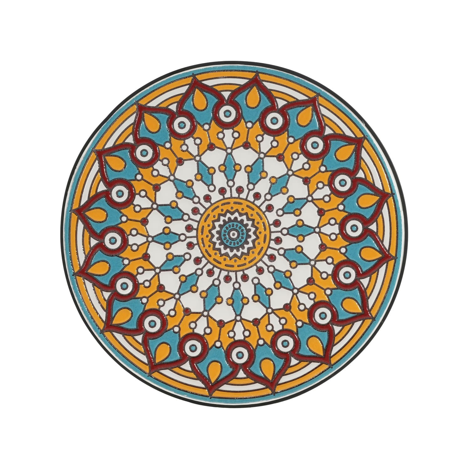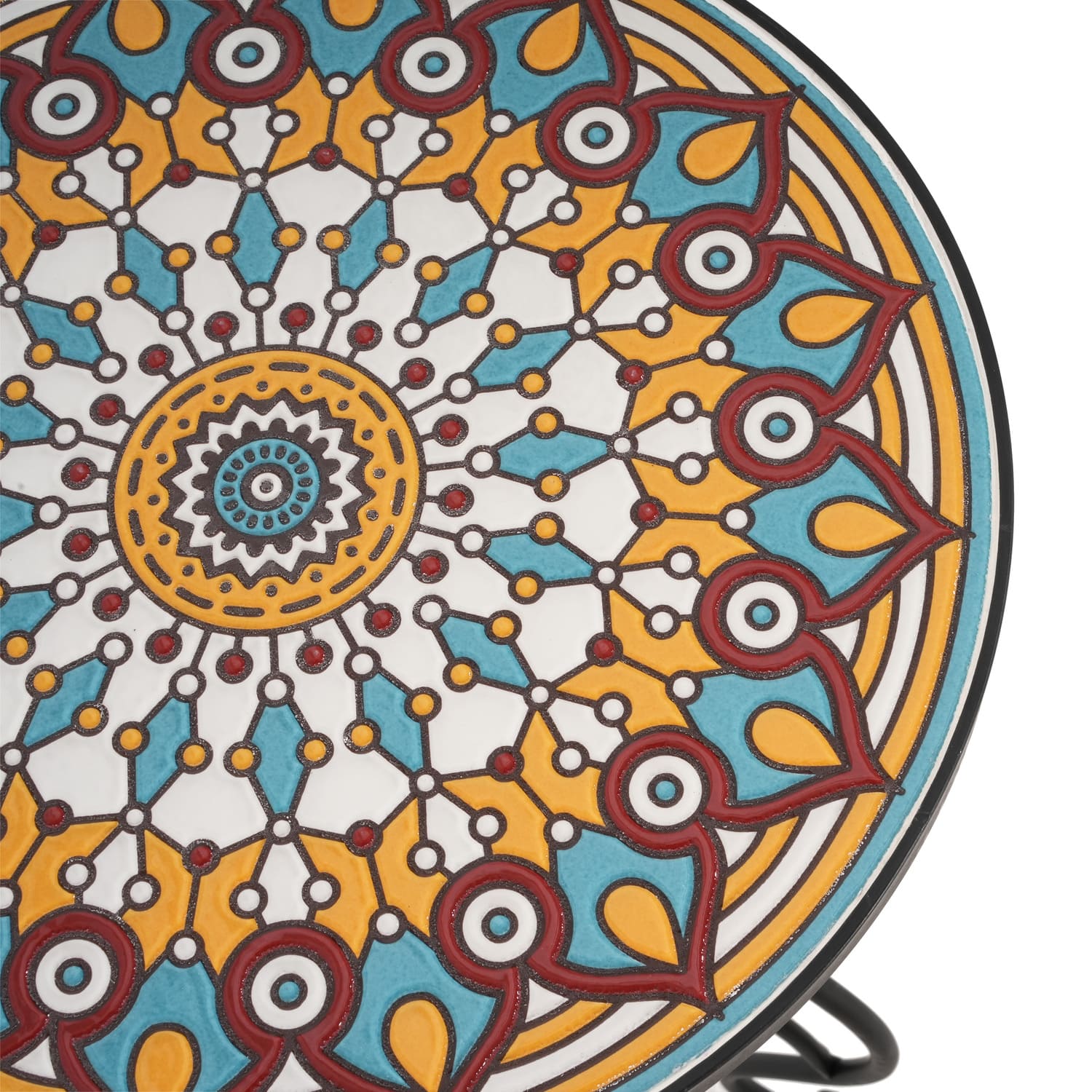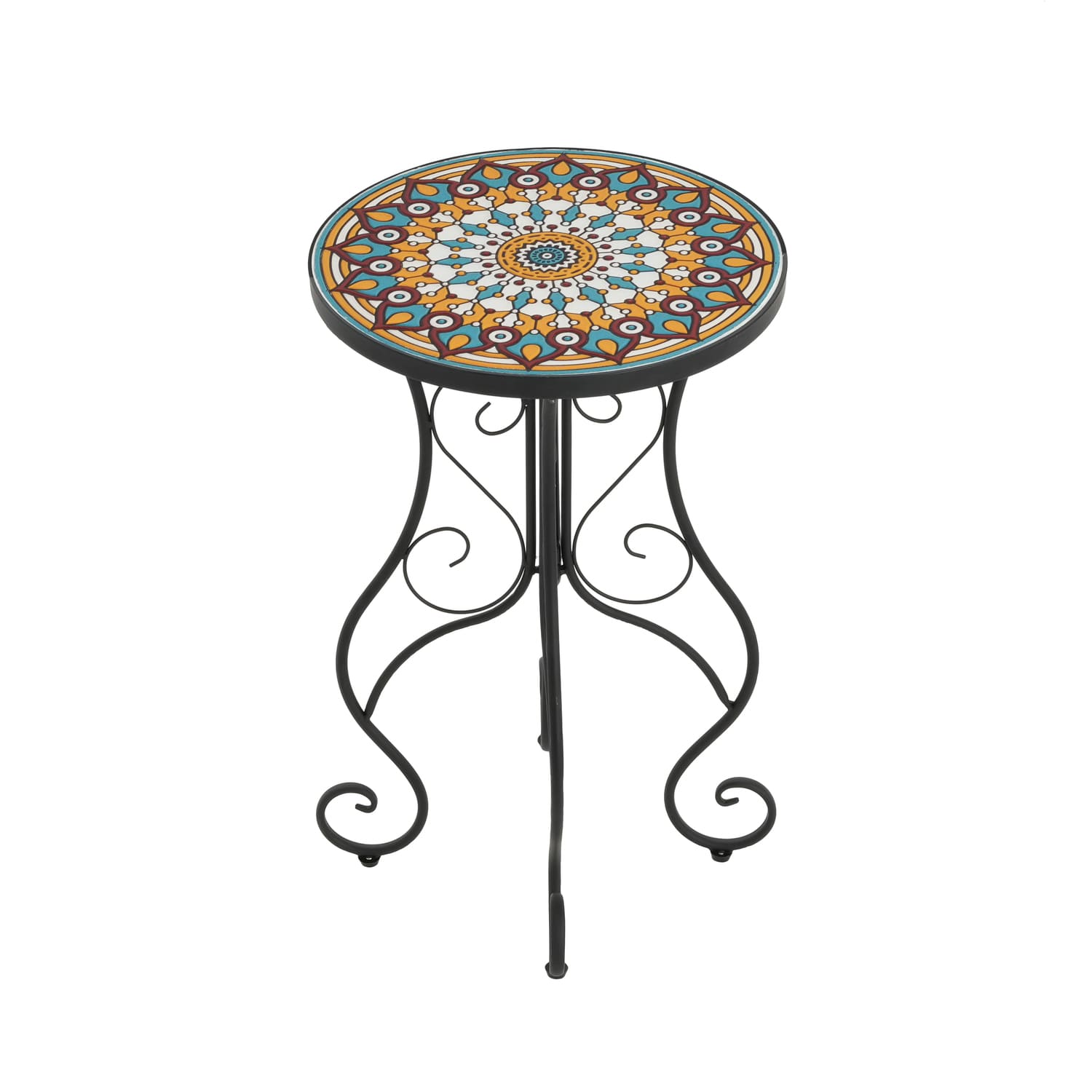 Round Ceramic Outdoor Side Table,Colorful+Black