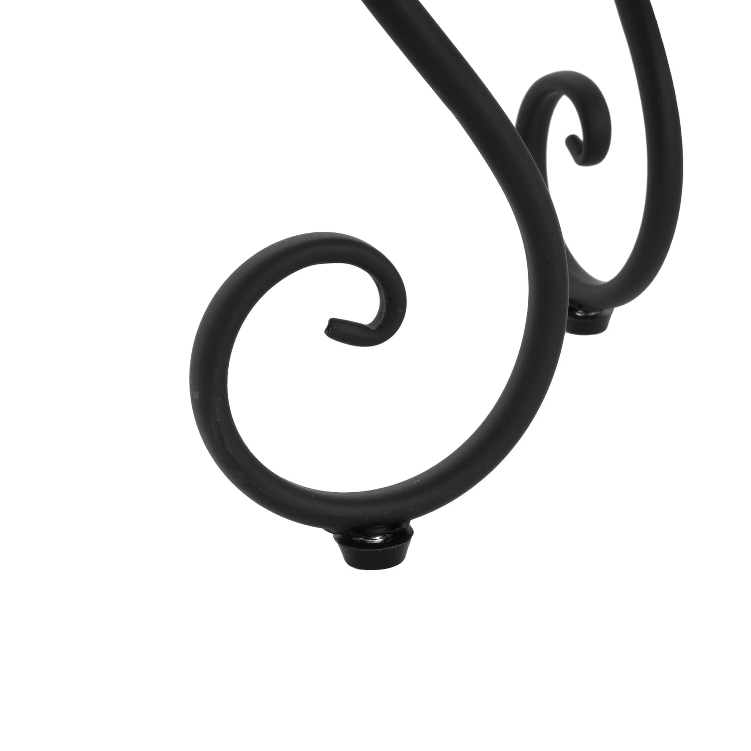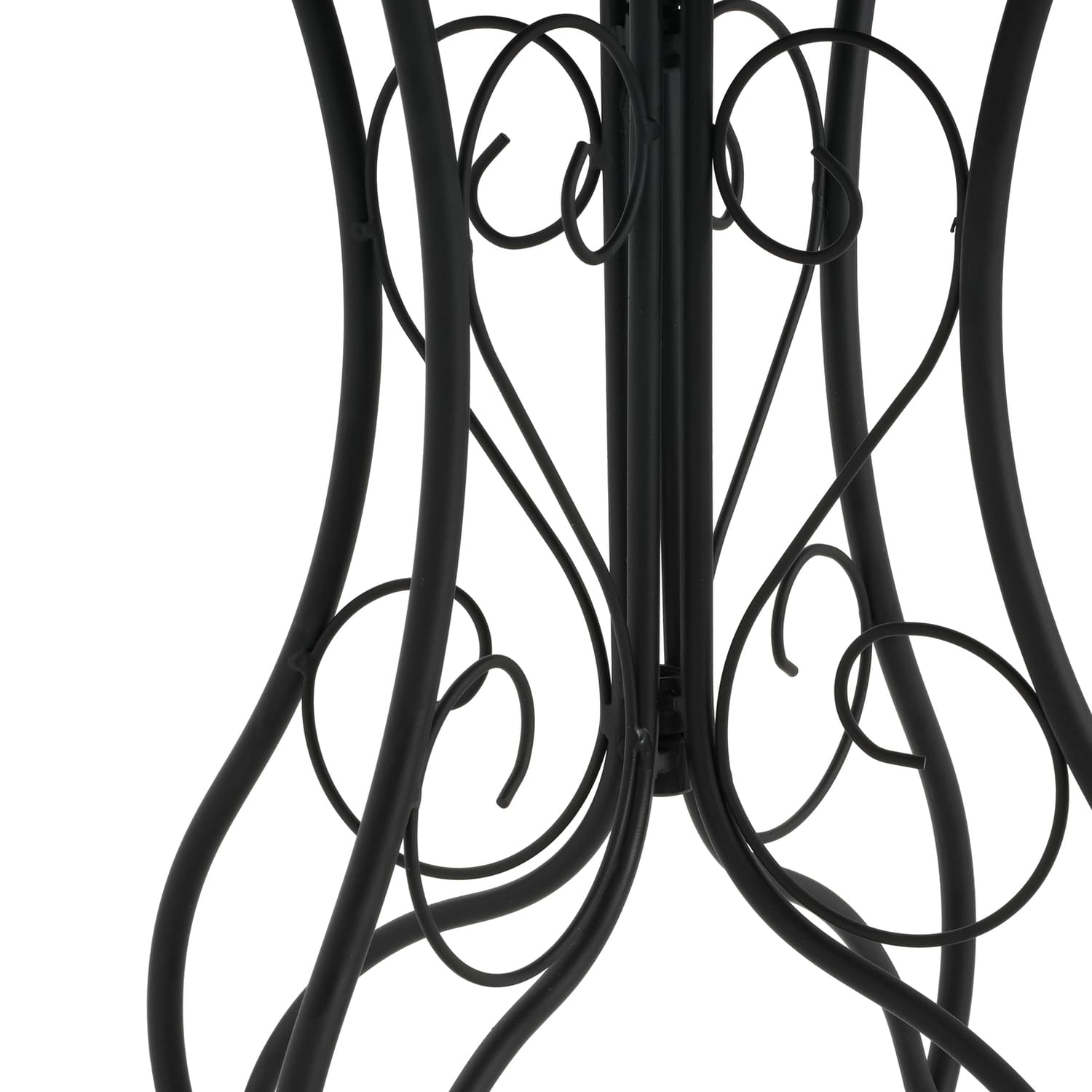 - With its vibrant tile top and scrolling,this outdoor side table brings plenty of French country character to your porch or deck. Its sleek, curved frame is crafted from powder-coated steel with a matte black finish, and it has a weather-resistant design that stands up to UV rays and the occasional rainstorm. The ceramic surface showcases a charming floral design in distressed hues of your choice. We love that the leveling legs keep it from shaking on uneven ground.