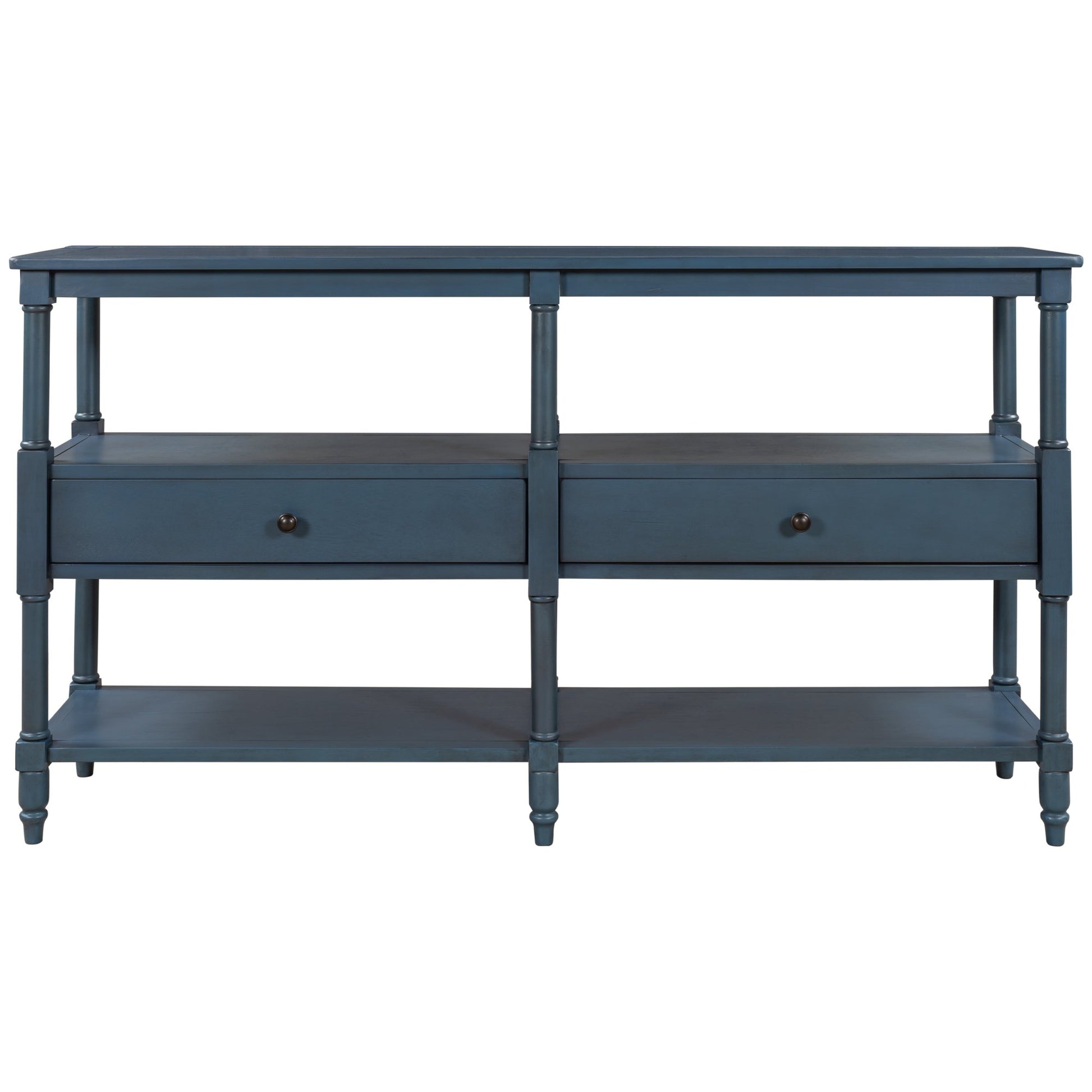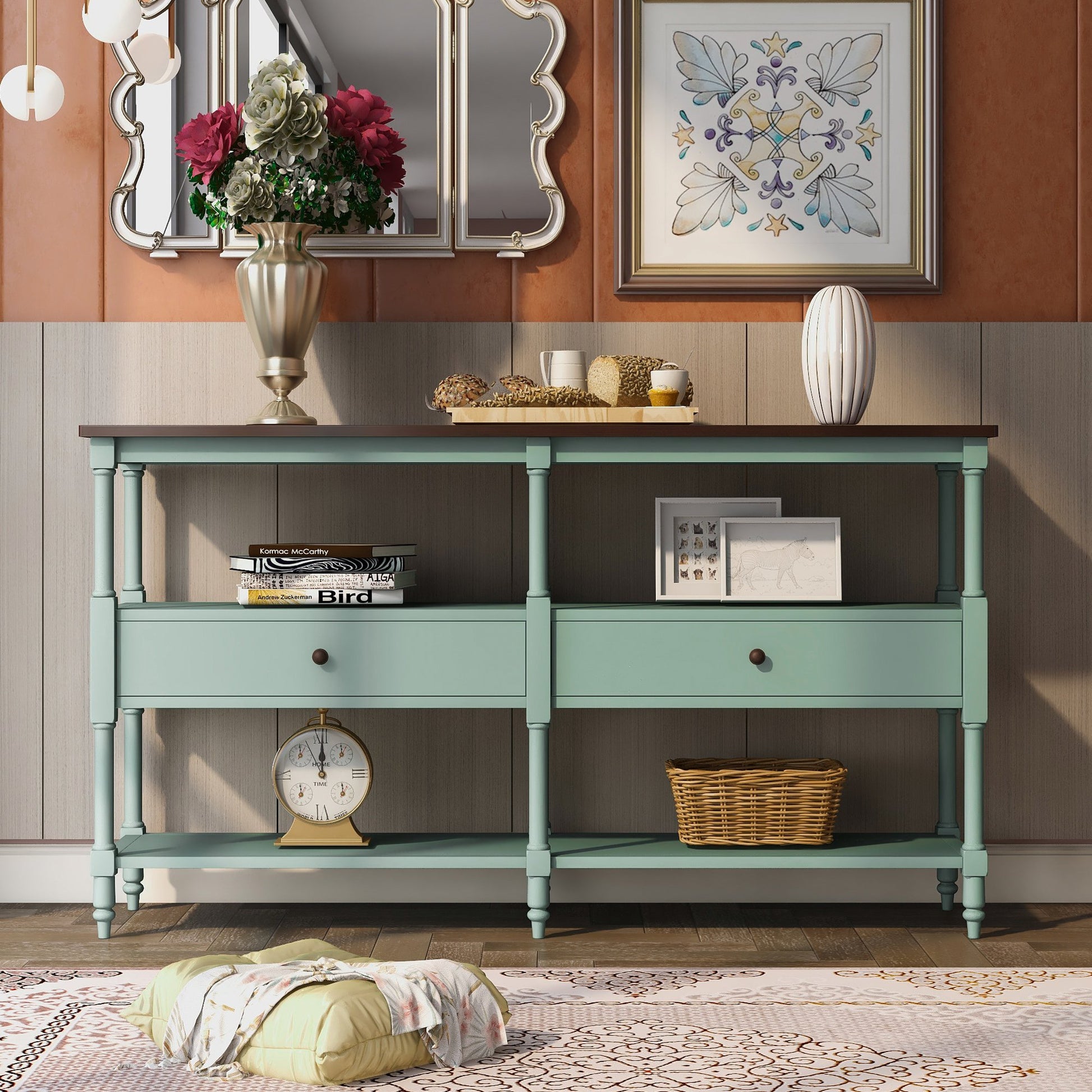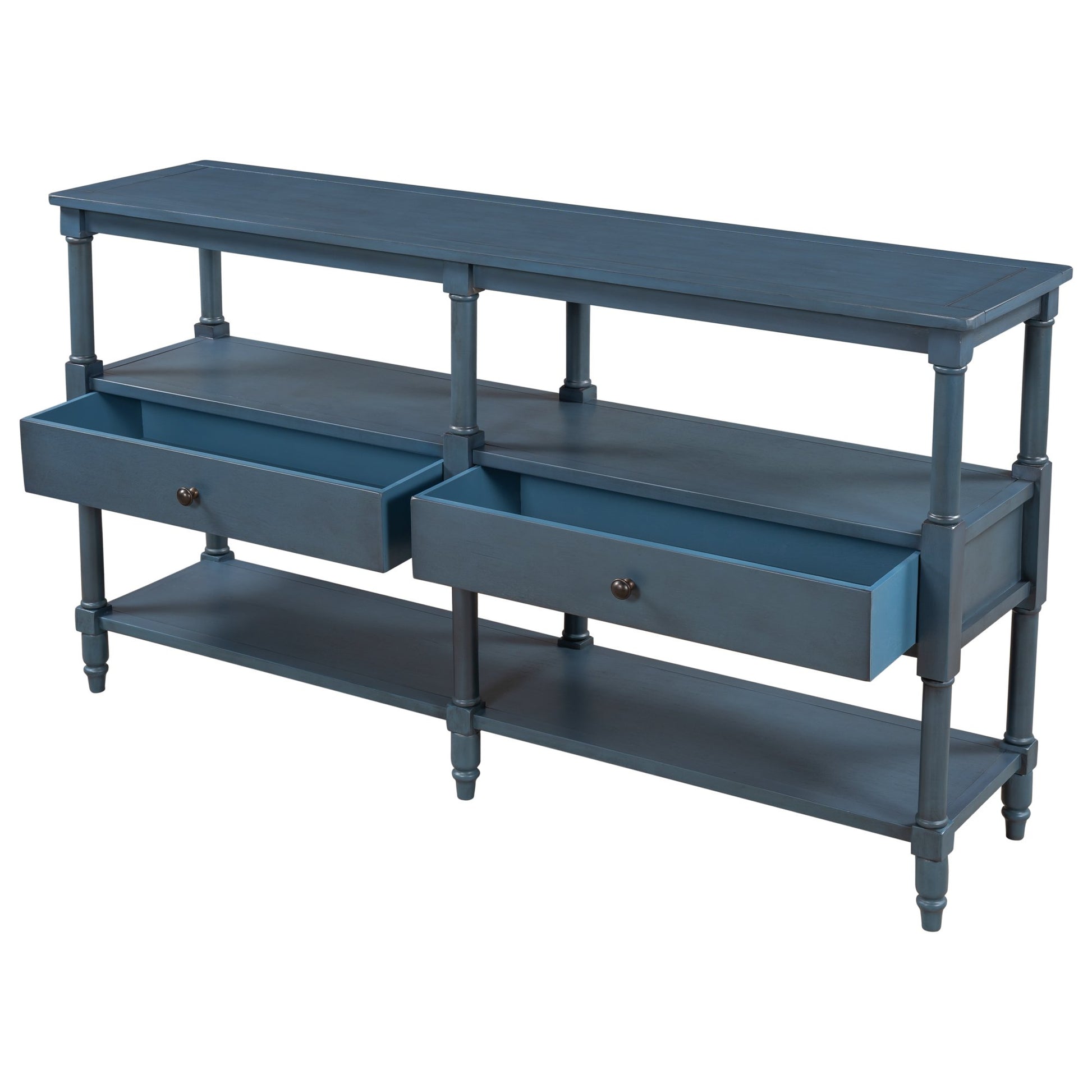 Rustic Console Table Sofa Table with 3-Tier Open Storage Shelf and Two Drawers