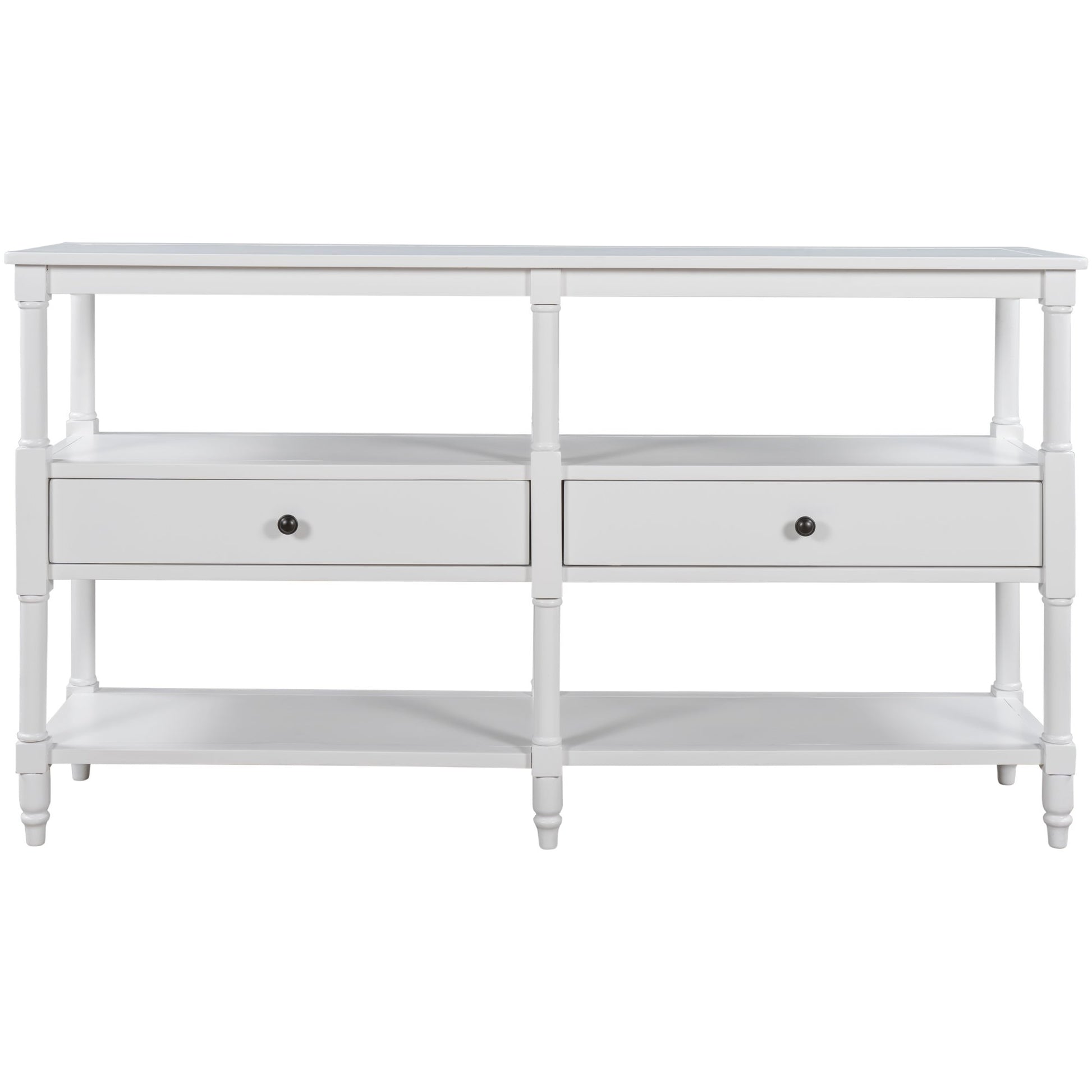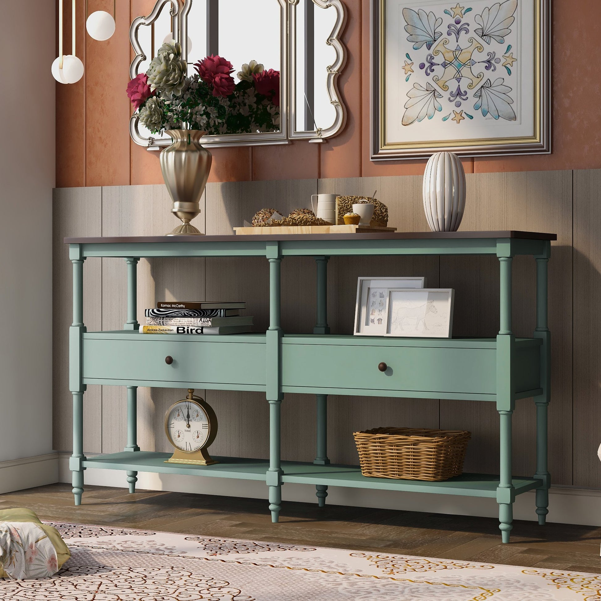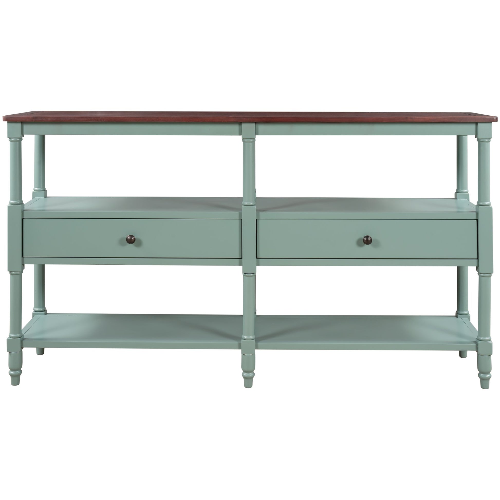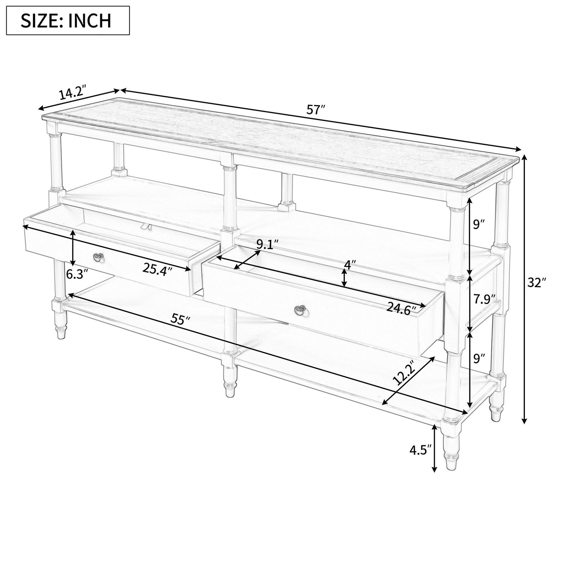 Rustic Console Table Sofa Table with 3-Tier Open Storage Shelf and Two Drawers