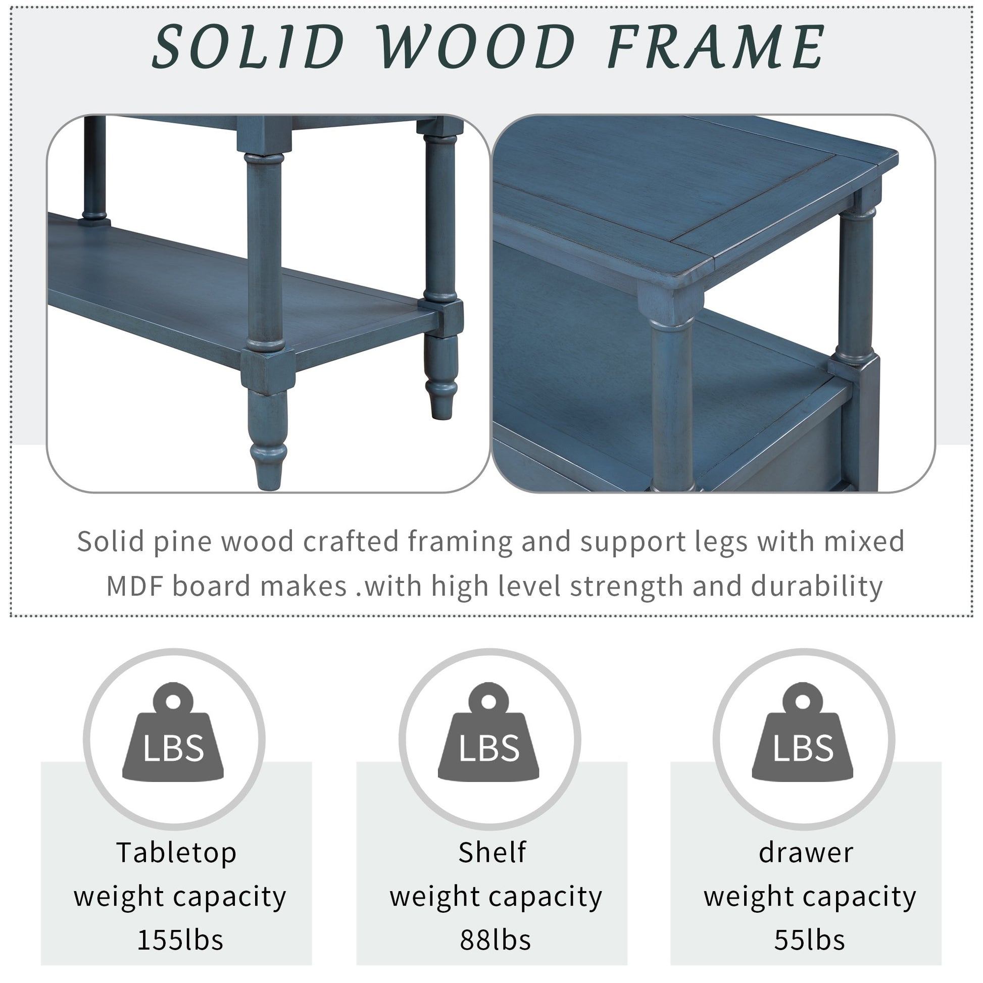 - Solid Wood Frame: Solid pine wood crafted framing and support legs with mixed MDF board makes this console built to last with high level strength and durability. Tabletop weight capacity: 155lbs; Shelf weight capacity: 88lbs; Single drawer weight capacity: 55lbs