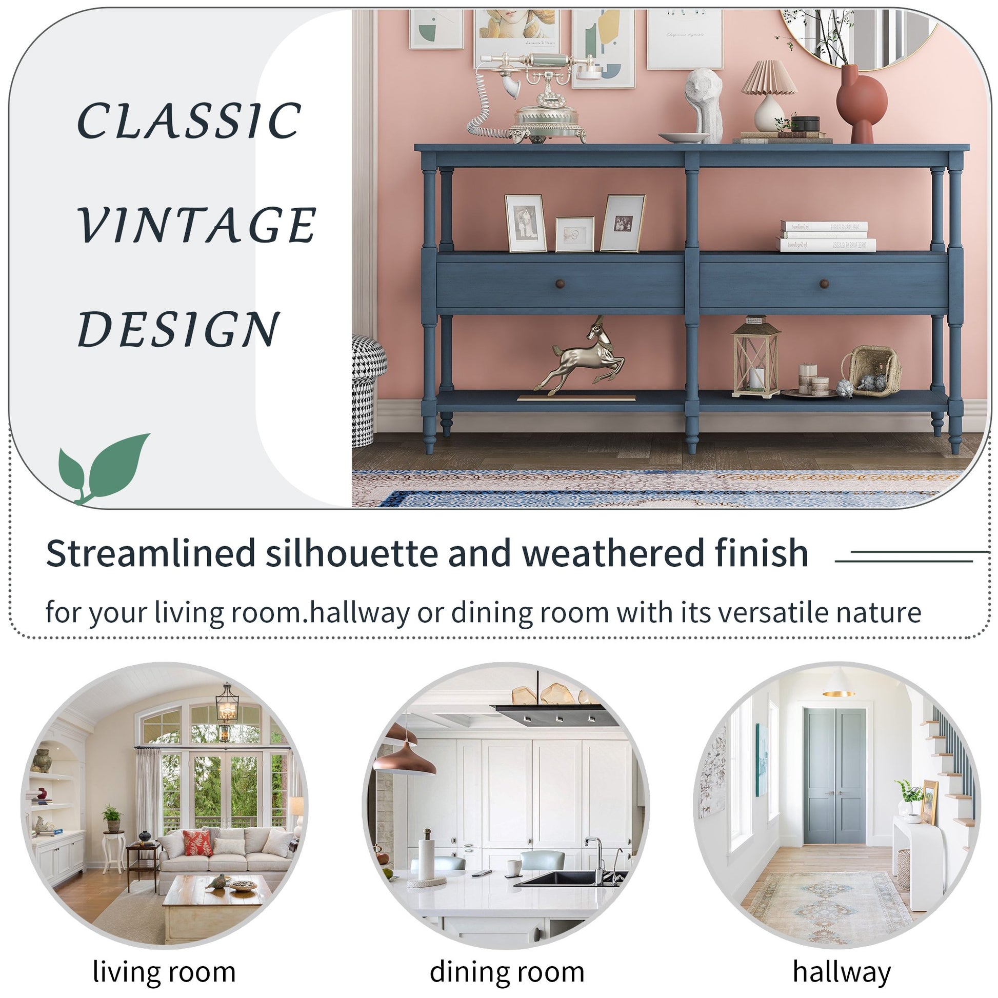 - Classic Vintage Design: A hallmark antique style, streamlined silhouette and weathered finish make this elegant console a must-have piece for your living room, hallway or dining room with its versatile nature.