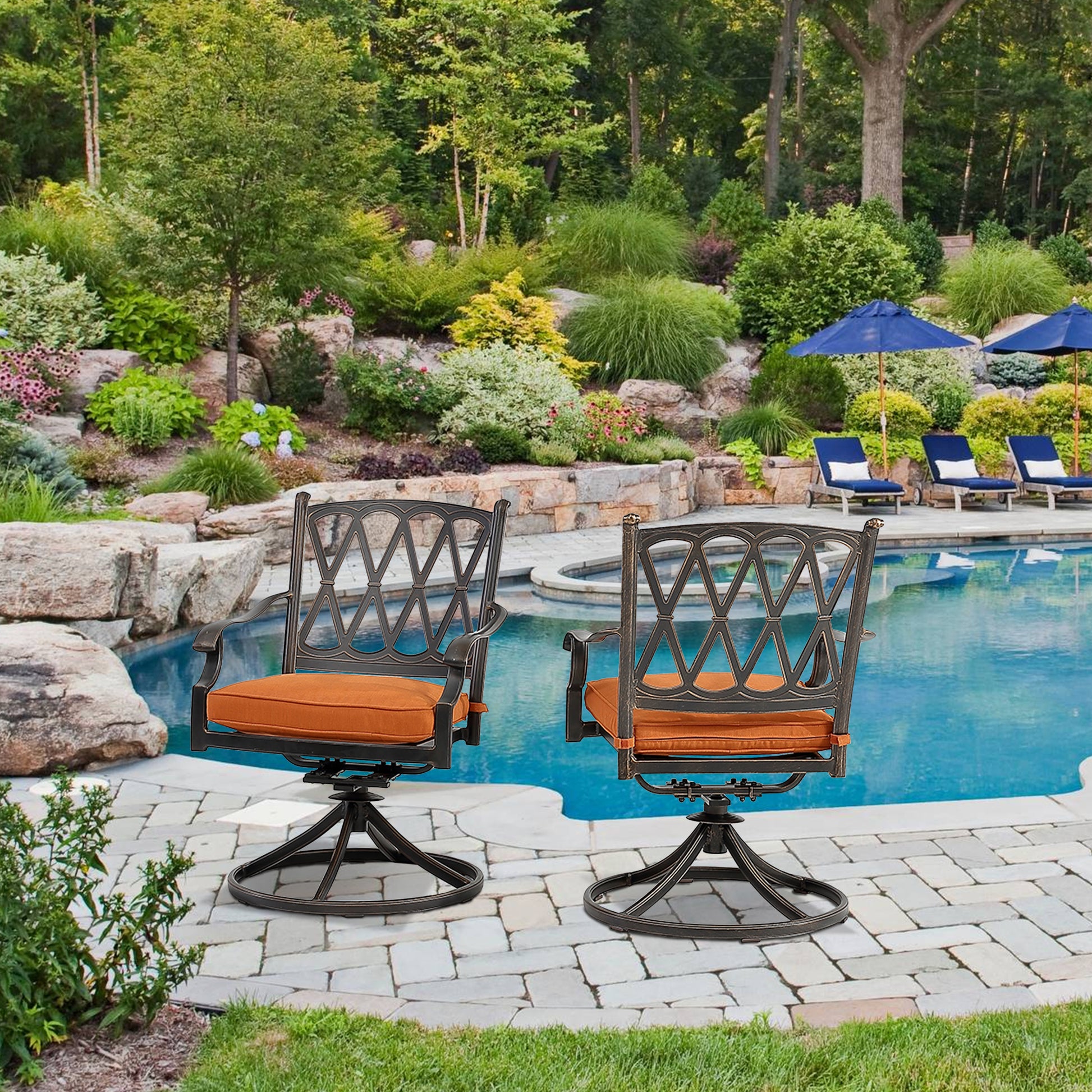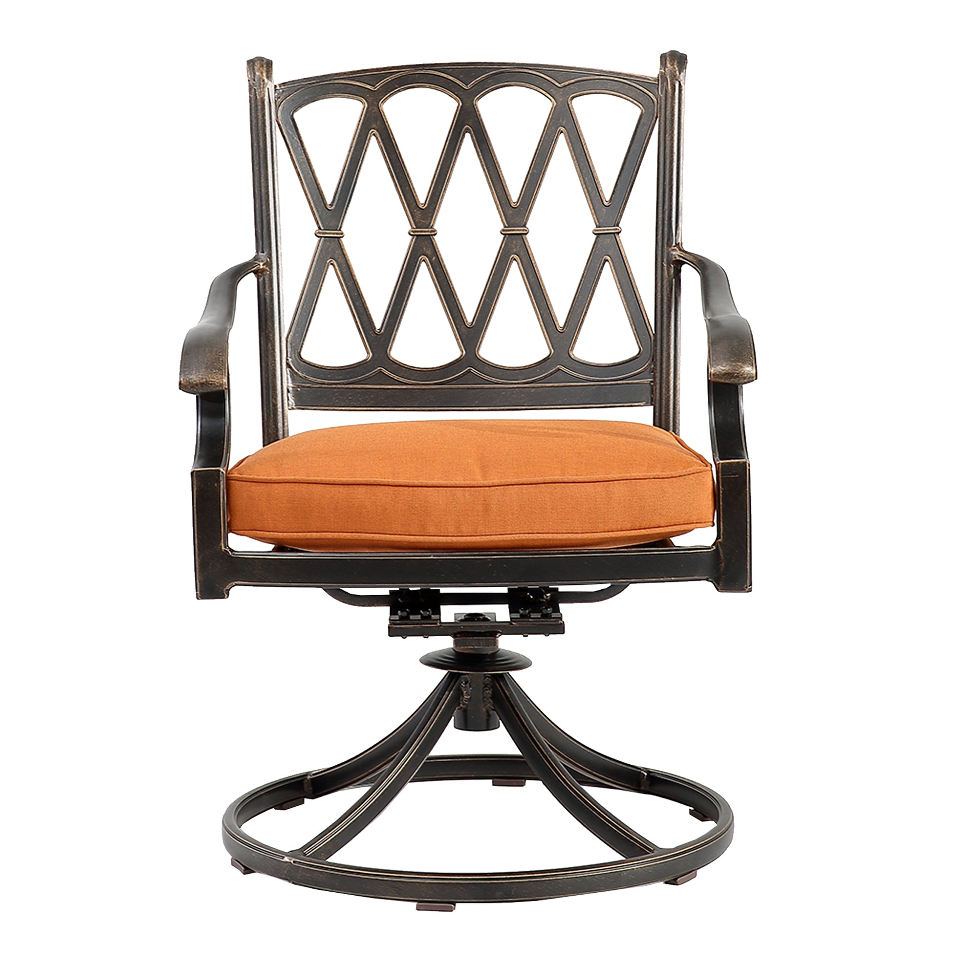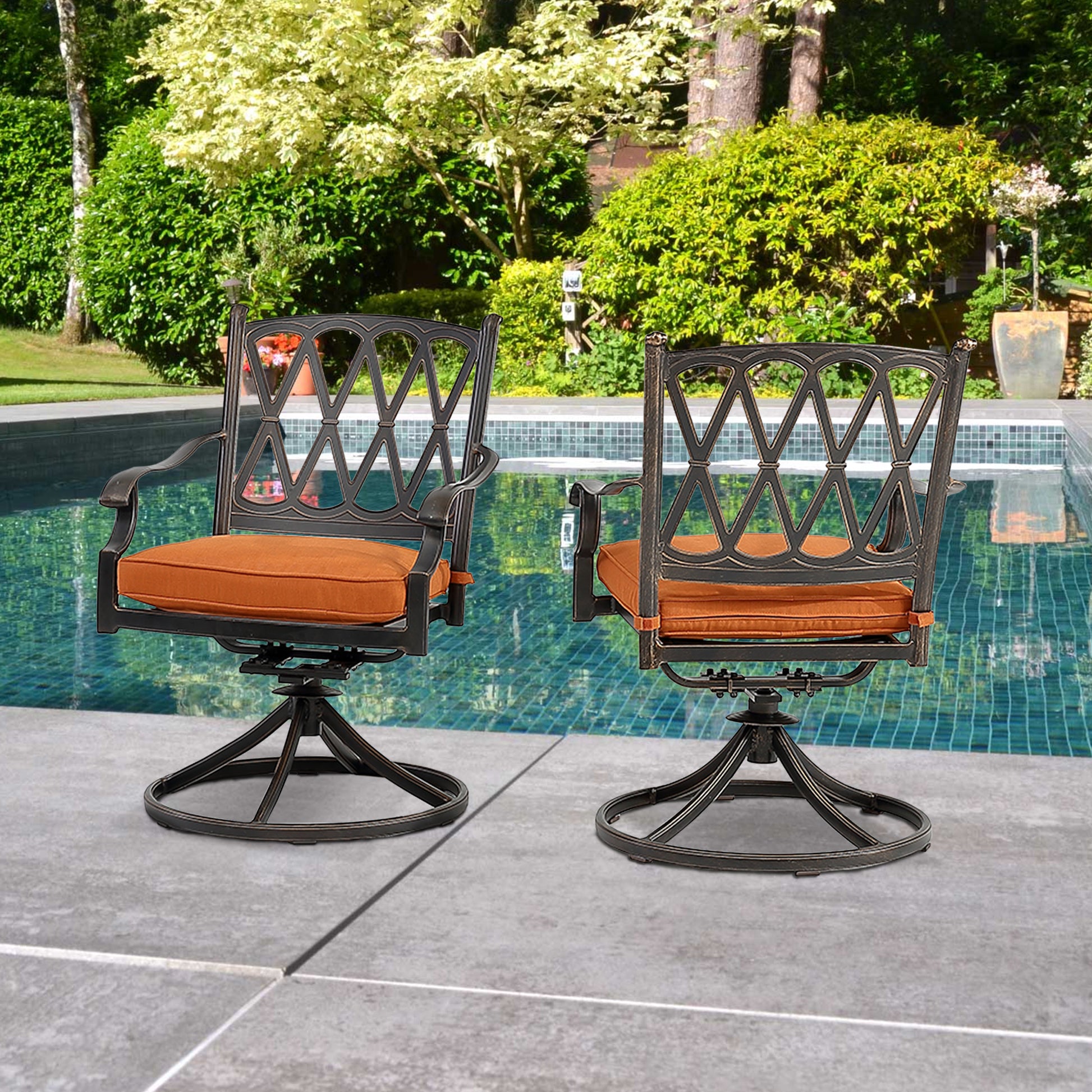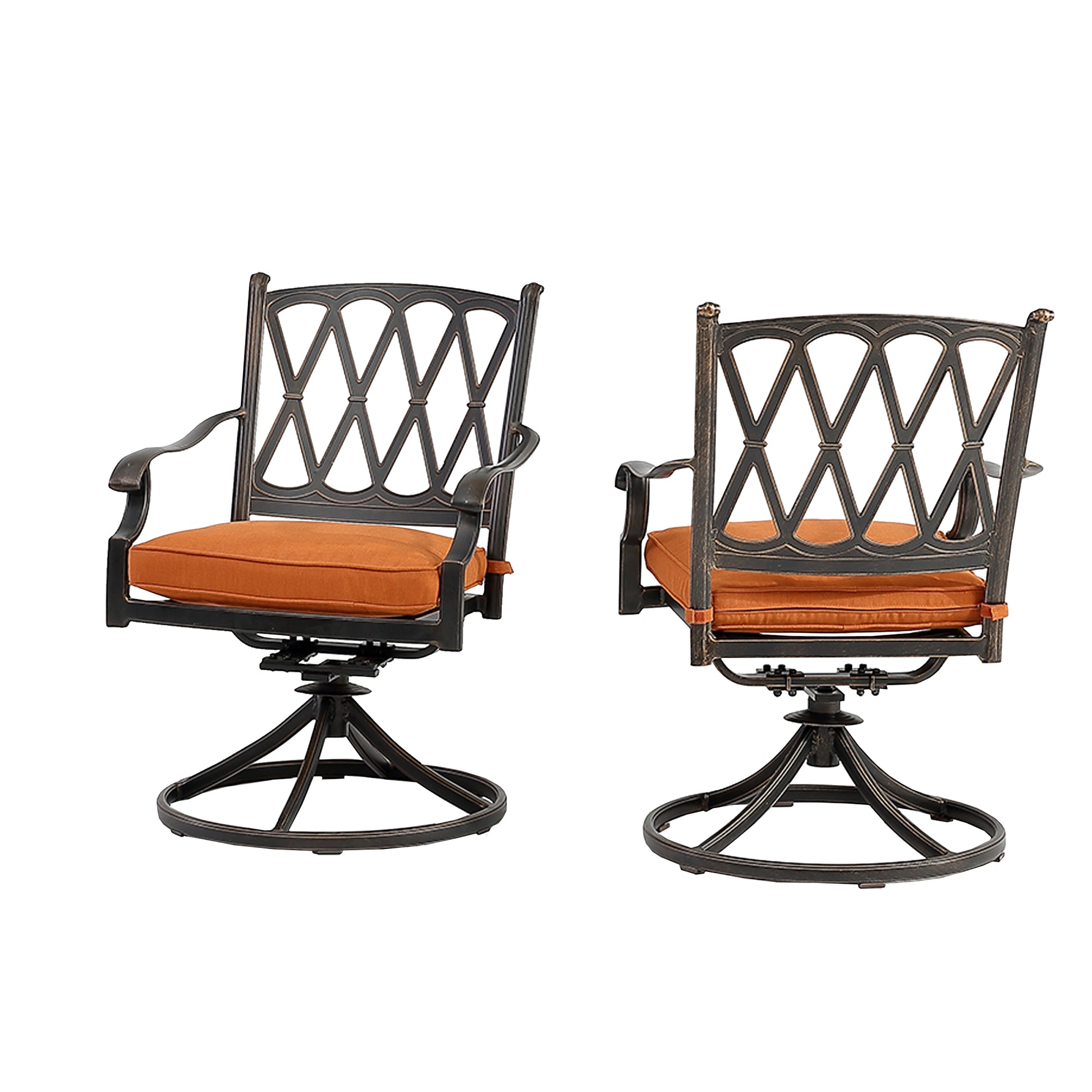 Set of 2 Cast Aluminum Direct-Net Backrest Swivel Chairs Orange