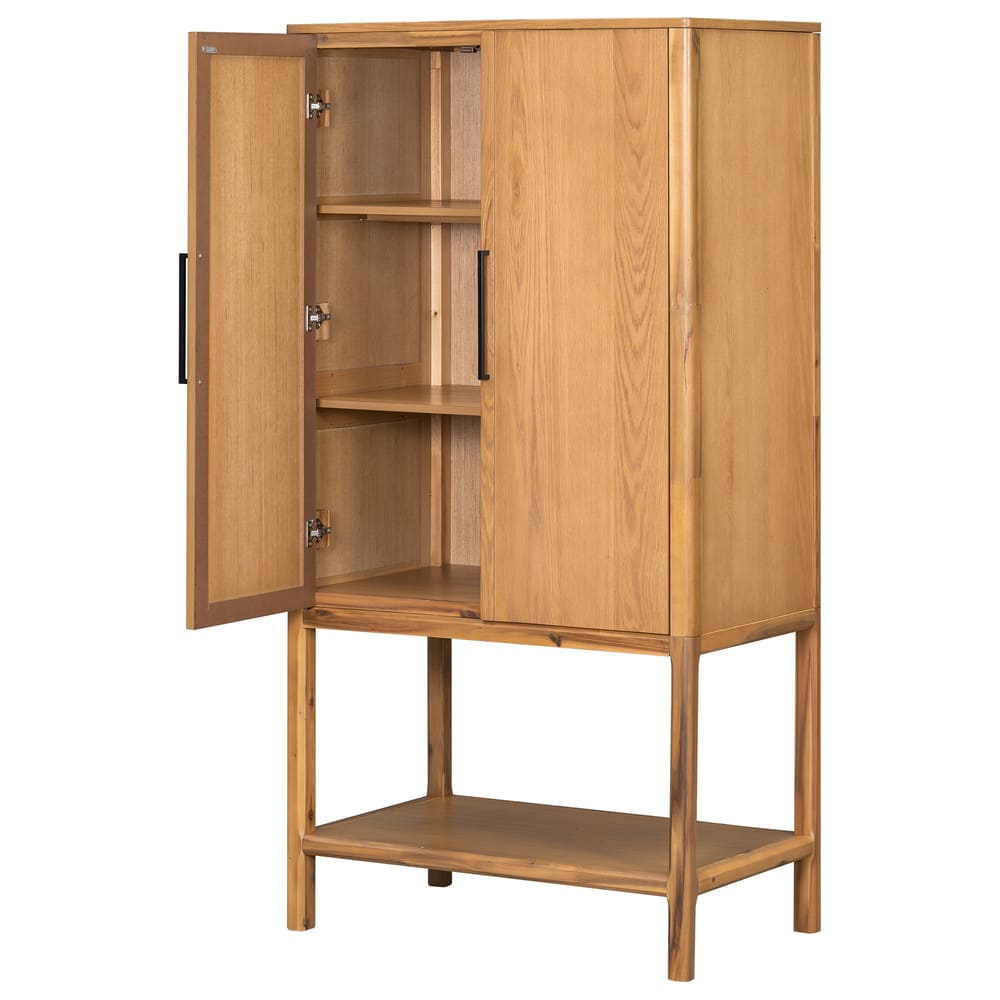 - [Bottom Shelf for Extra Storage]:A bottom open shelf provides additional space for larger items or decor pieces. This practical design element adds functionality, offering easy access while enhancing the cabinet's overall visual appeal.