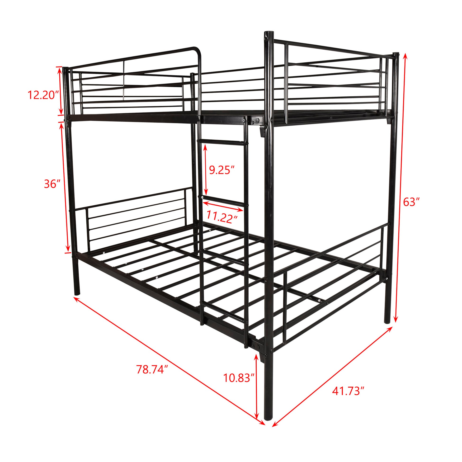 SAFETY PRACTICAL DESIGNThis metal bunk bed is full guardrail design keep you safe from falling, bringing you comfort and full sense of security.