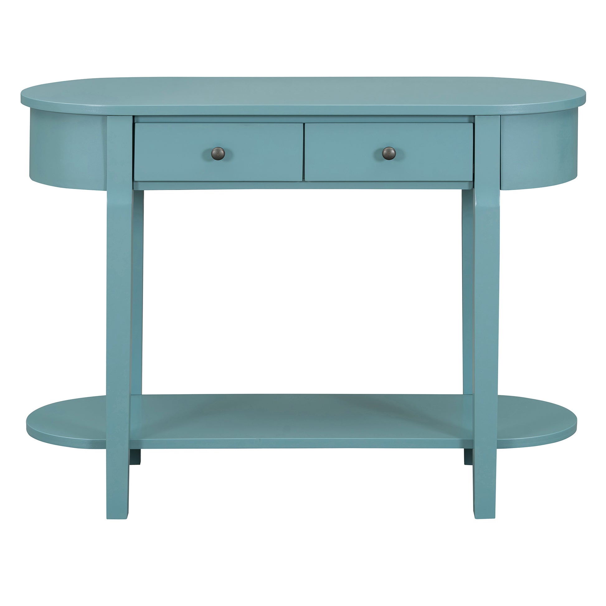 Clihome Elegant Retro Console Table with Curved Design and Smooth Glaze for Entryways, Living Rooms and hallways (Turquoise Green)