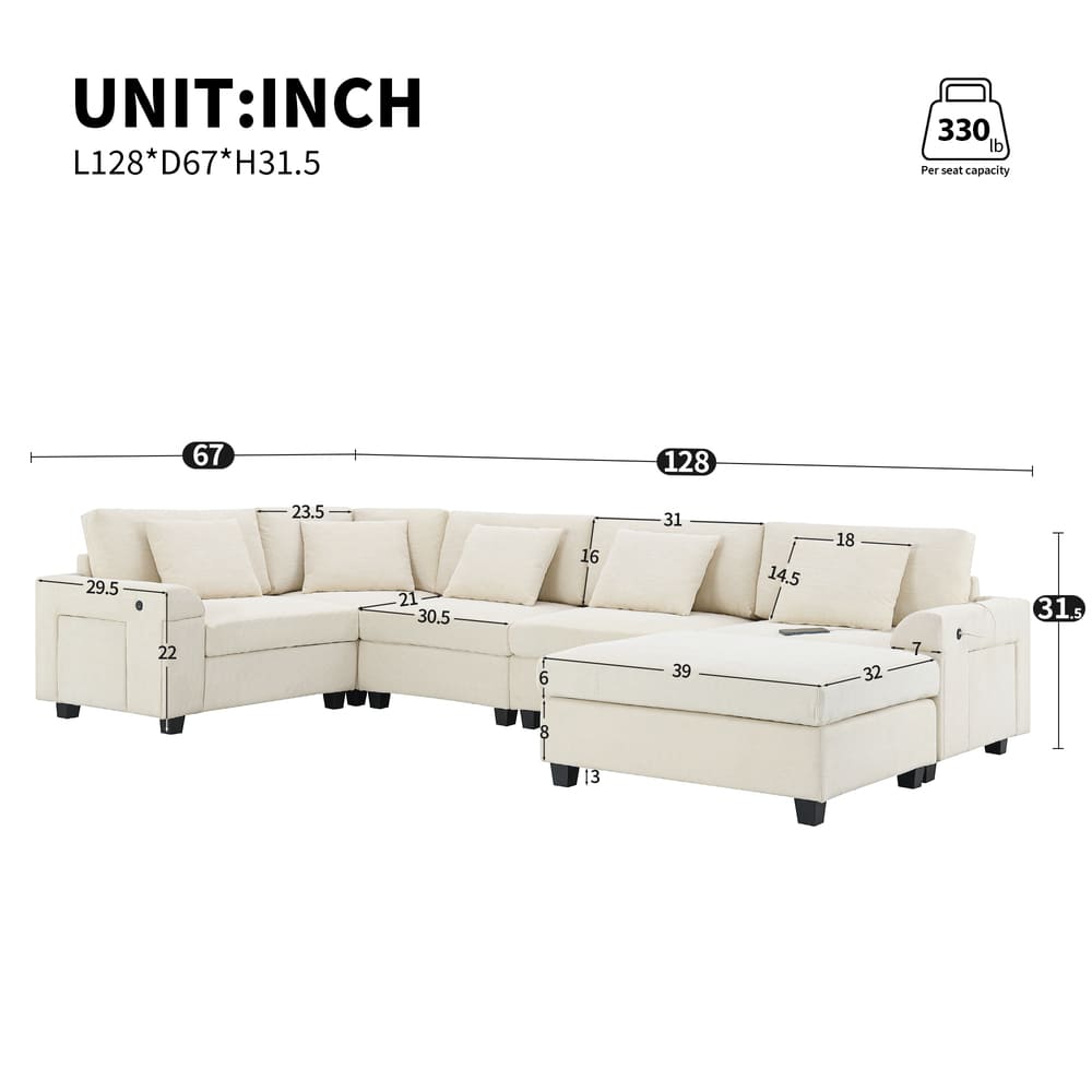 This sofa features multiple combination options, allowing you to customize your layout to fit any room. Enjoy the comfort of a movable ottoman, perfect for relaxing after a long day. Both armrests are equipped with hidden storage compartments to keep your essentials organized and out of sight. With built-in cup holders and convenient charging ports, you'll have everything you need right at your fingertips. Elevate your home with this perfect blend of elegance and practicality!