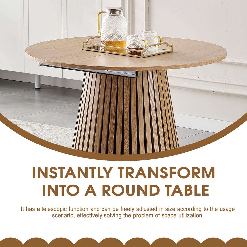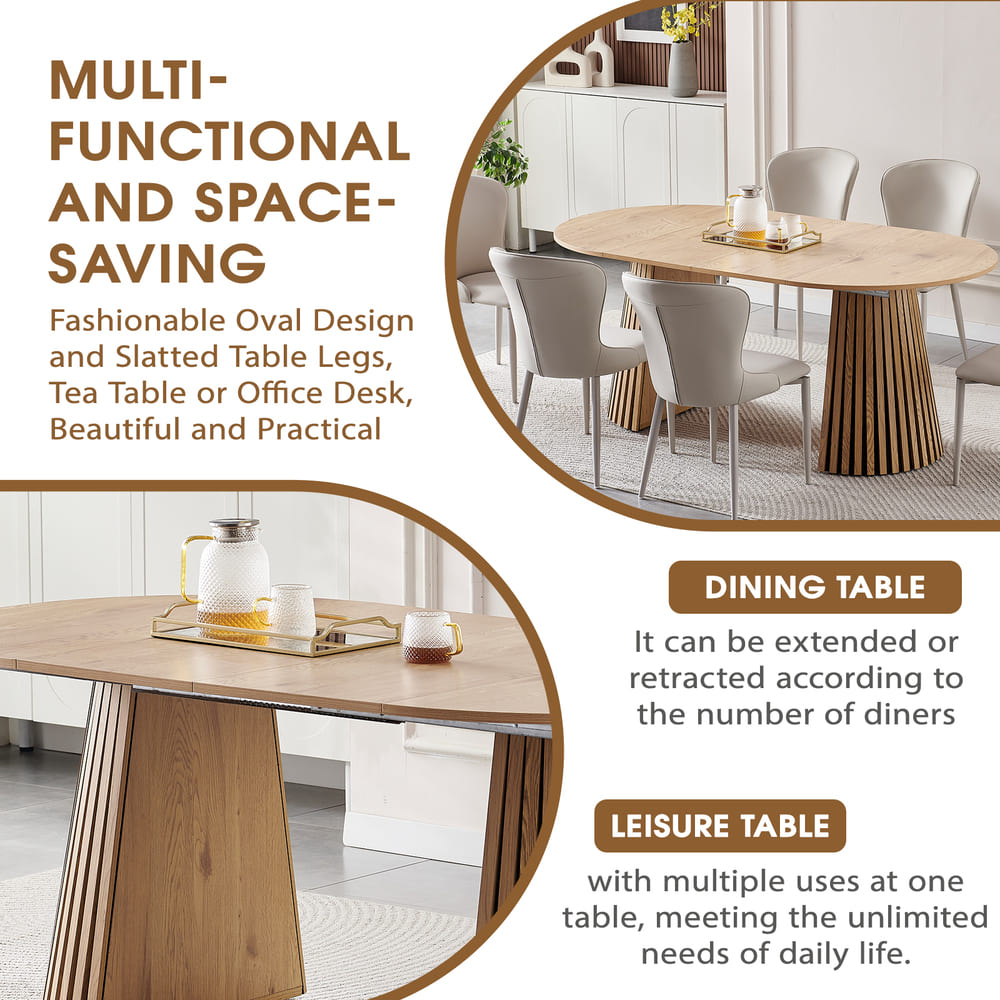 Wooden Dining Table, Flexible and Extendable, Multi-functional and Space-saving, Fashionable Oval Design and Slatted Table Legs, Tea Table or Office Desk