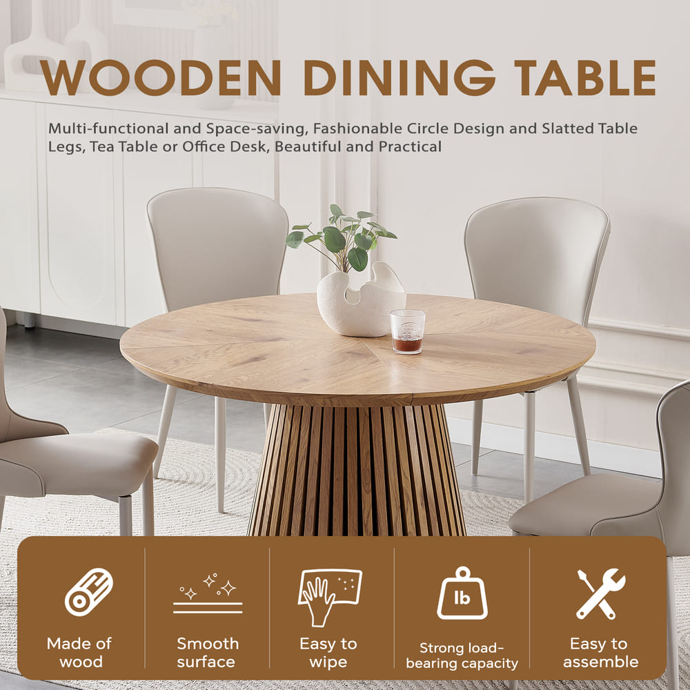 Wooden dining table, modern round kitchen dining table, fashionable design, suitable for family gatherings, multi-functional and space-saving, suitable for living room and dining room